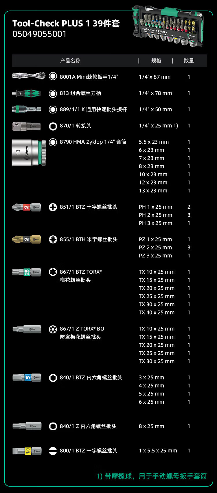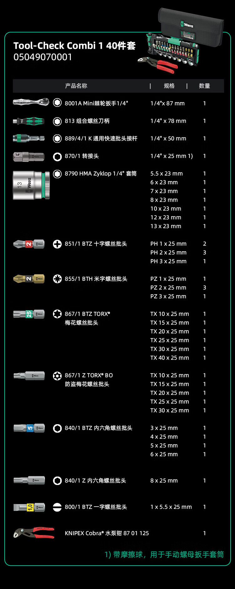 WERA imported mini ratchet wrench set toolcheck new German Kenipak joint water pump pliers tool new Tool-Check (05049055001)