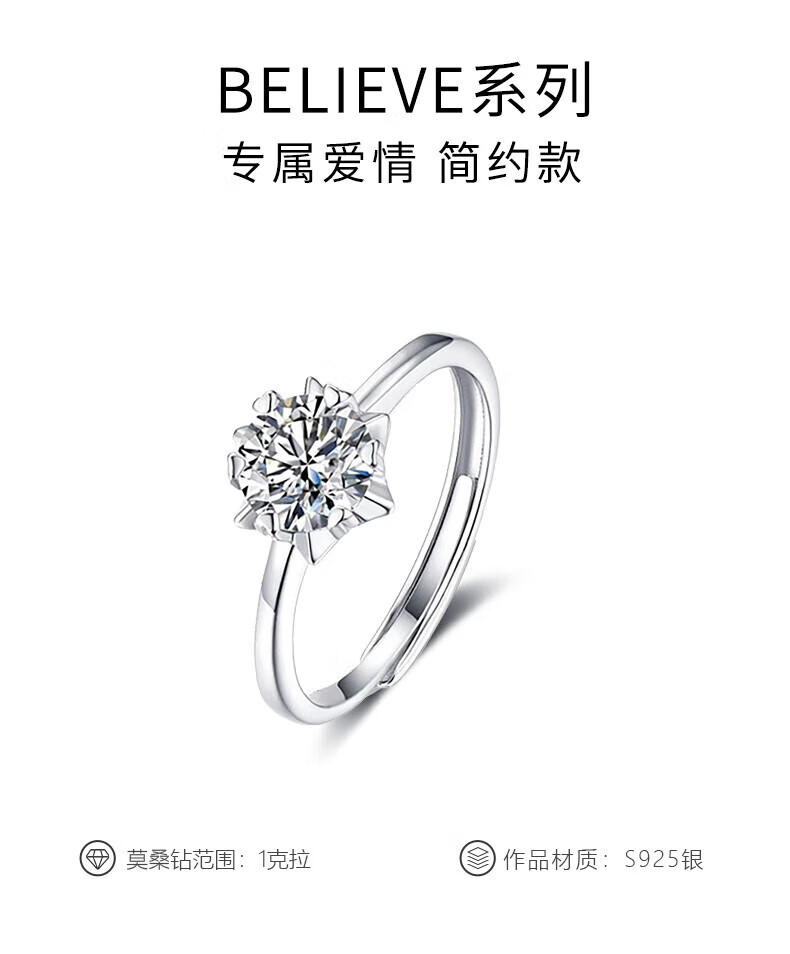 DR Classic Wedding Diamond Ring Snowflake Moissanite Ring Engagement Women 925 Silver 1 Carat Gift for Girlfriend or Wife