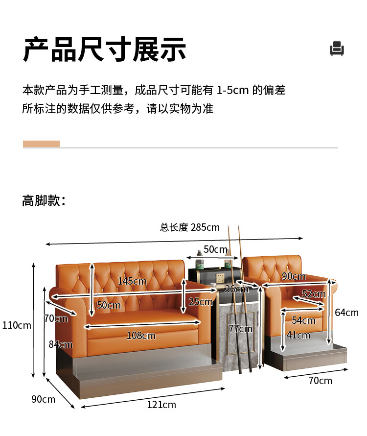 New model of billiard table and chair, billiard sofa chair, billiard chair, billiard hall special chair, ball viewing chair, leisure table and chair manufacturer, orange starry 4-person footrest model