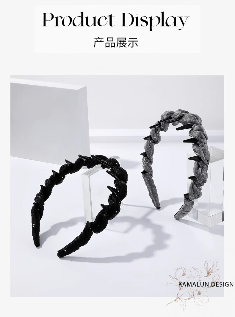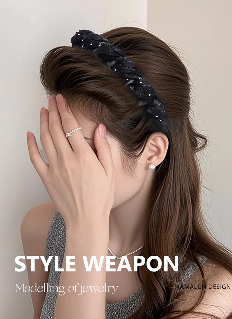 Kamalun (KAMALUN) hair hoop for women's daily wear 2025 new style high-end, western style and fashionable high skull headband with hair clip to send to girlfriend Hepburn style hair hoop versatile black + brand gift box