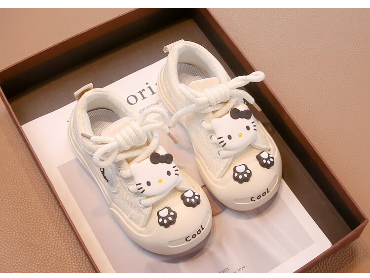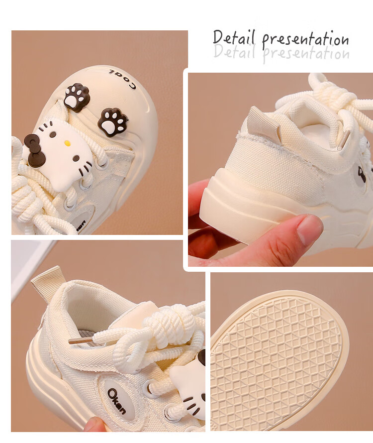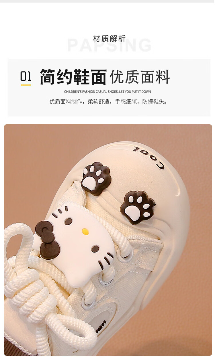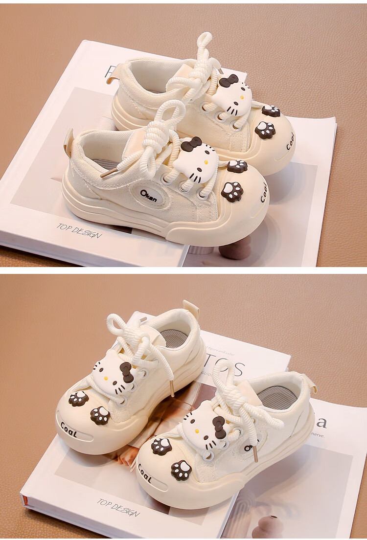 G.duck Girls' Shoes 2025 New Spring and Autumn Children's Cartoon Cute KT Cat Canvas Shoes for Middle and Large Children Versatile Soft Sole Trendy Shoes White Upgraded 31