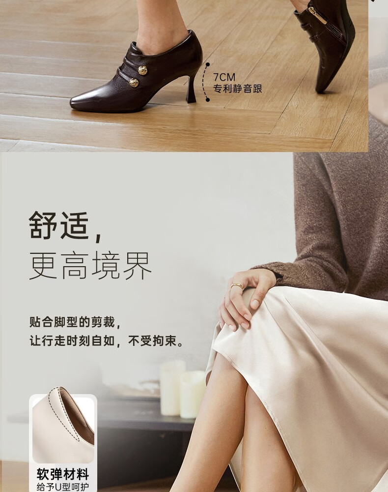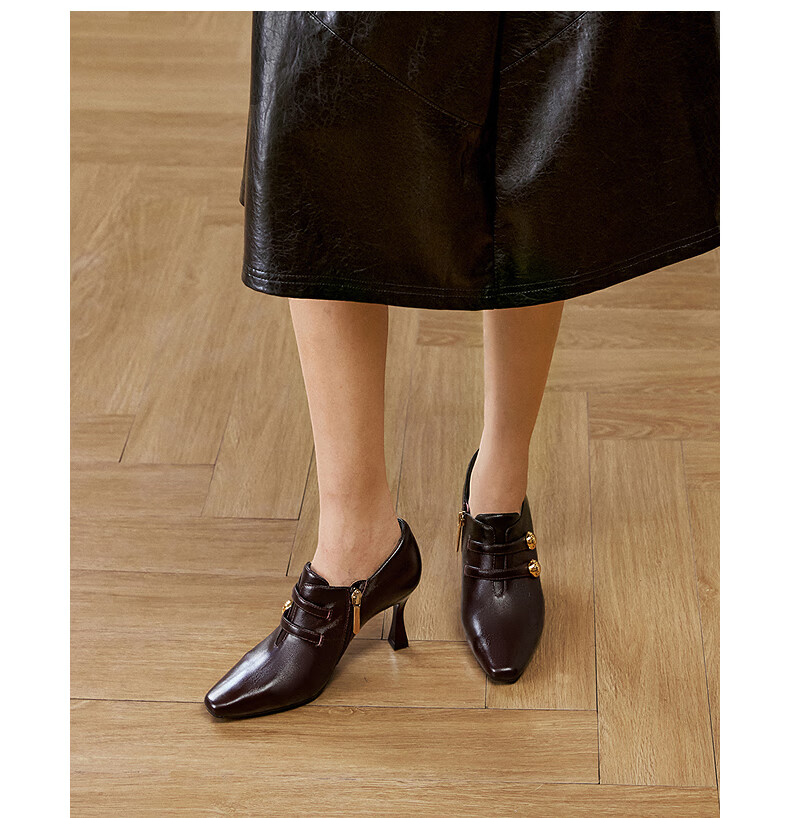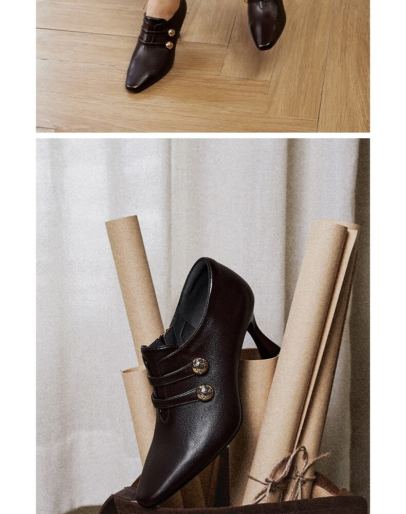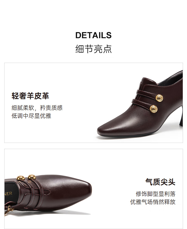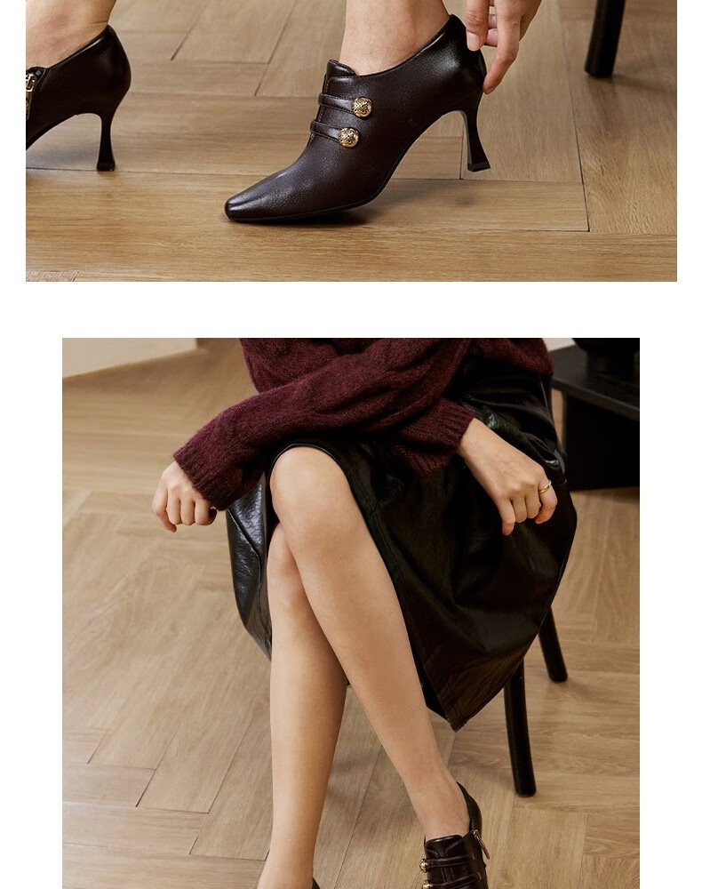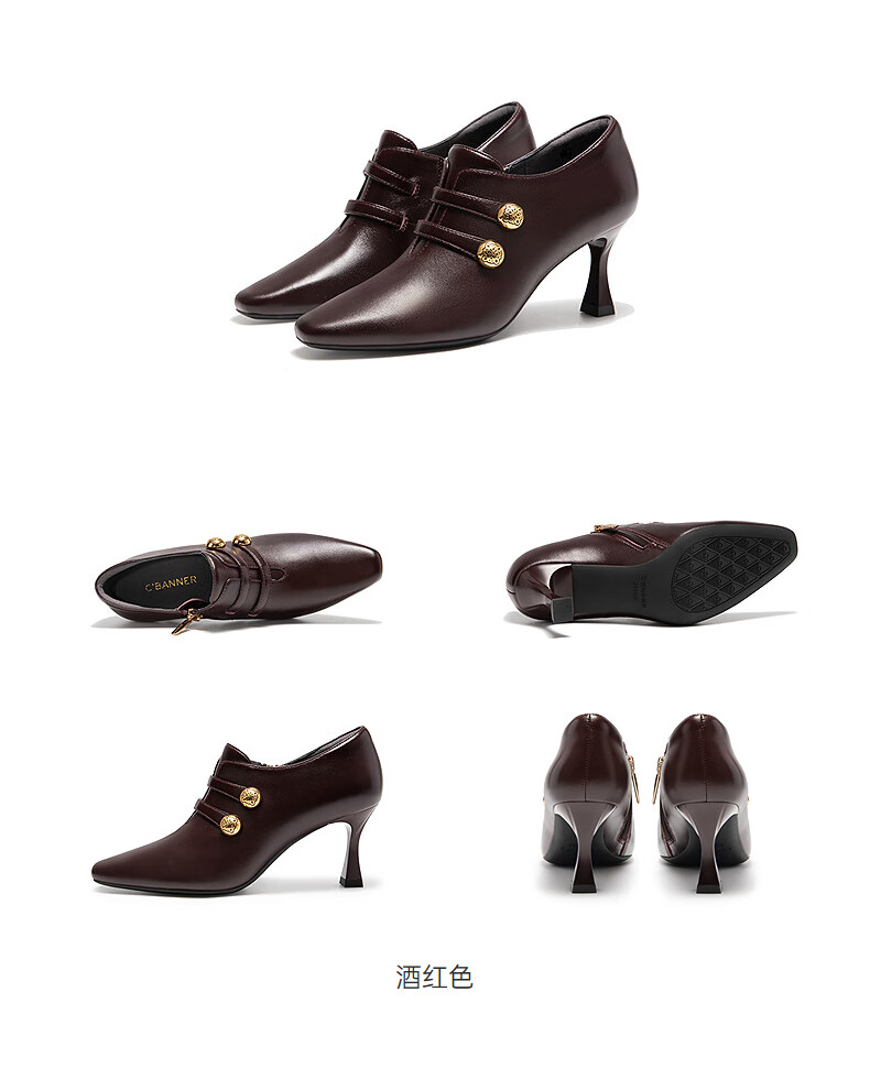 Qianbaidu sheepskin stiletto ankle boots for women autumn and winter new commuter short boots fashion boots burgundy 37 (235mm)