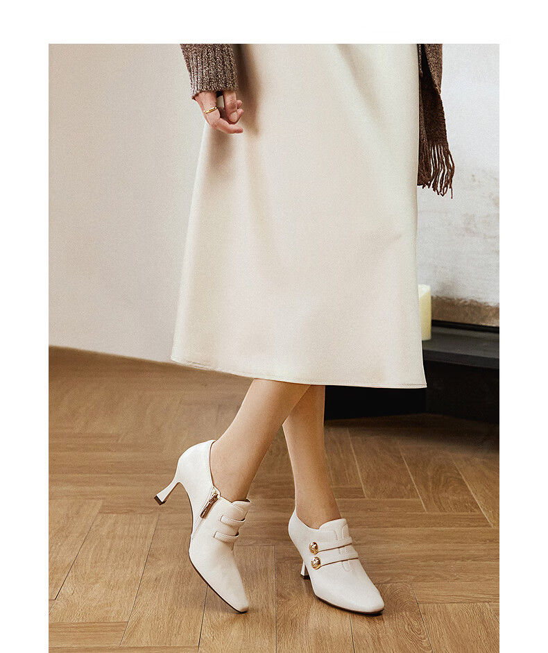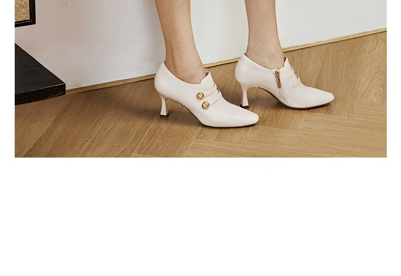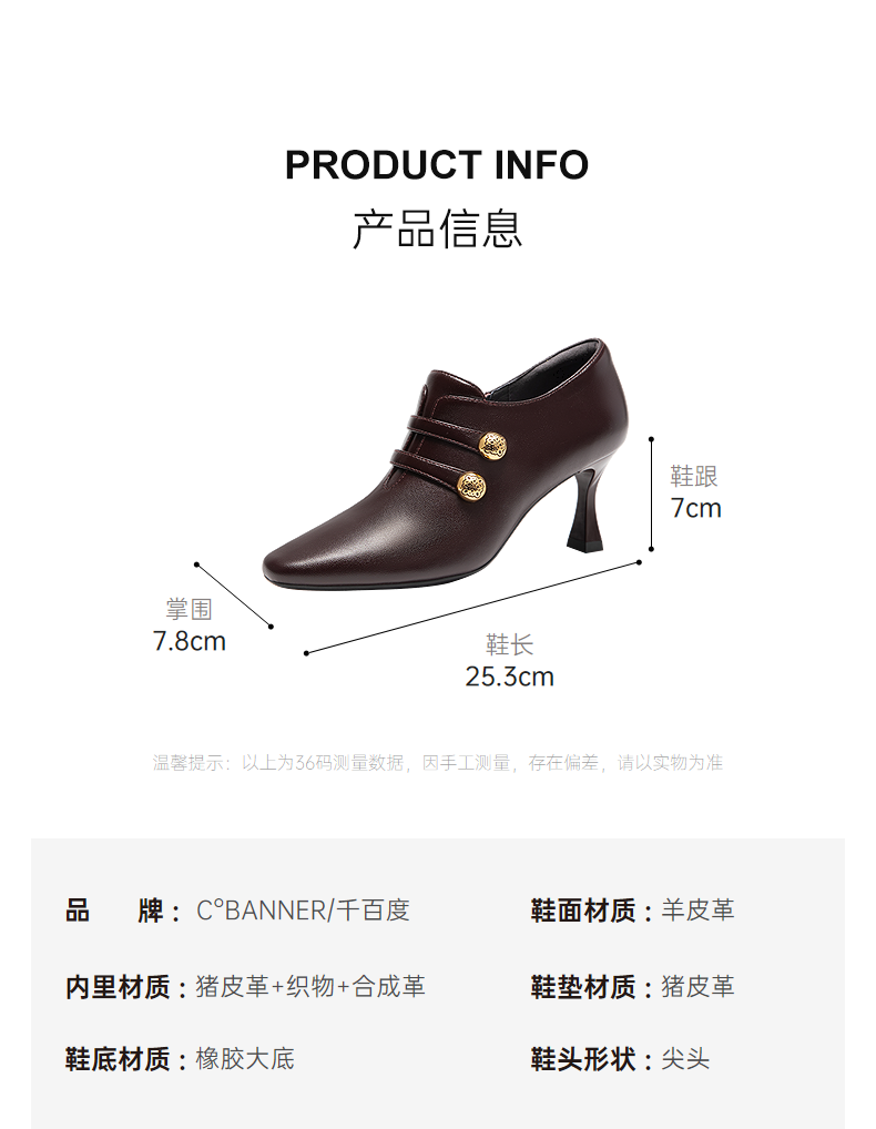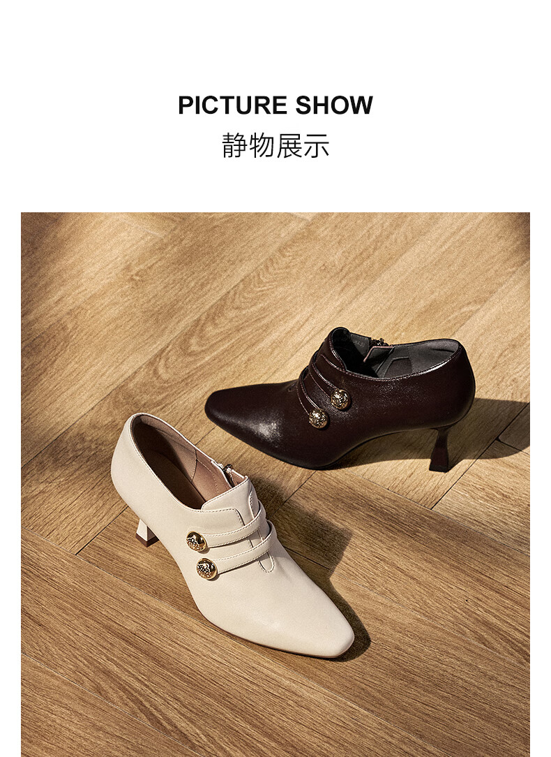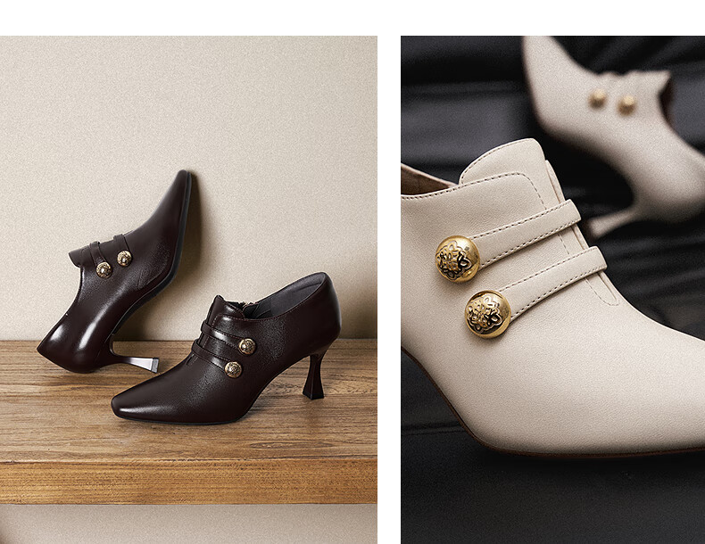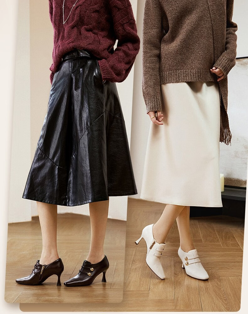 Qianbaidu sheepskin stiletto ankle boots for women autumn and winter new commuter short boots fashion boots burgundy 37 (235mm)