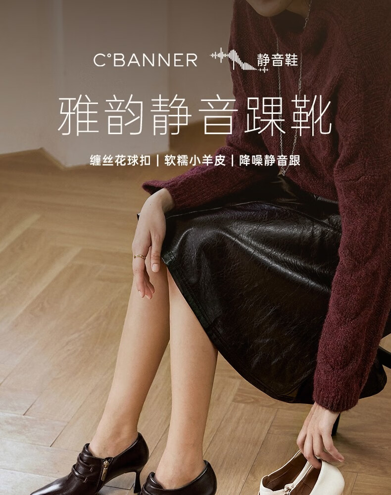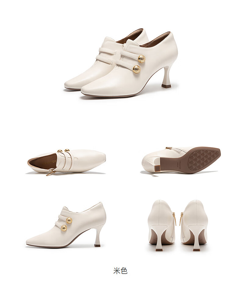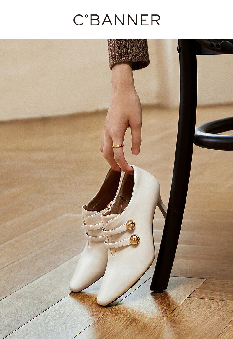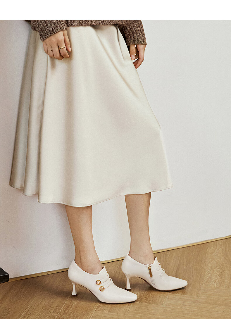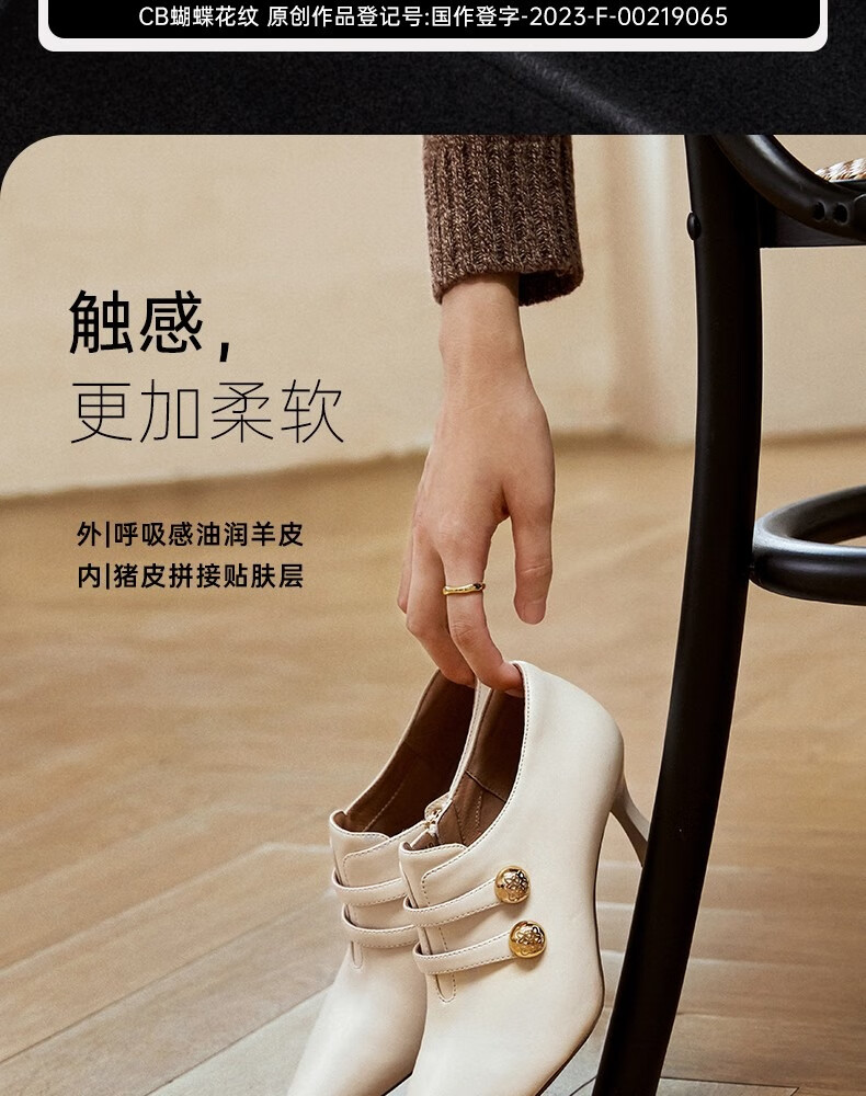 Qianbaidu sheepskin stiletto ankle boots for women autumn and winter new commuter short boots fashion boots burgundy 37 (235mm)