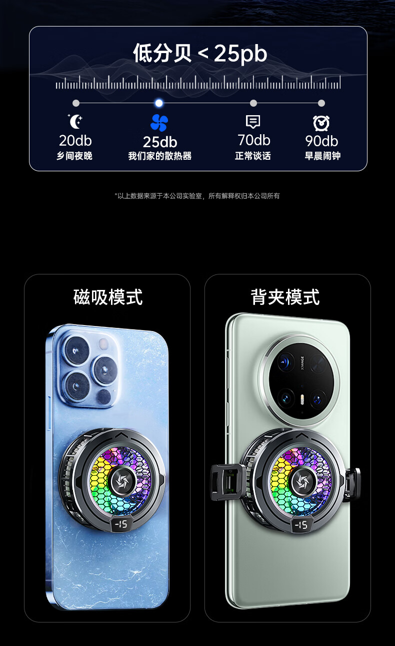 Semiconductor heat dissipation, magnetic icing refrigeration, mobile phone magnetic radiator, silent cooling, game chicken digital display, e-sports live broadcast, universal magnetic cooling, silent white 51 dual-speed intelligent digital display, magnetic back clip, gift
