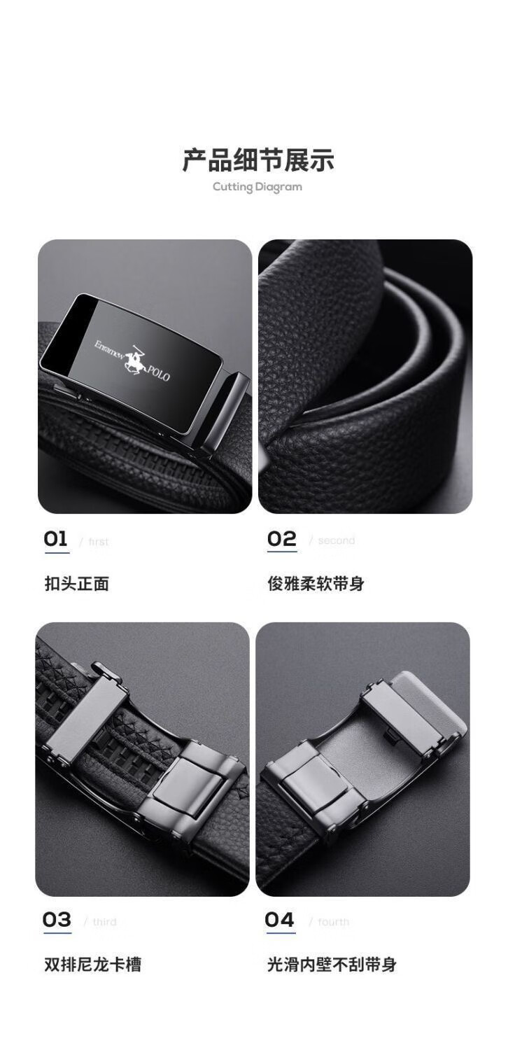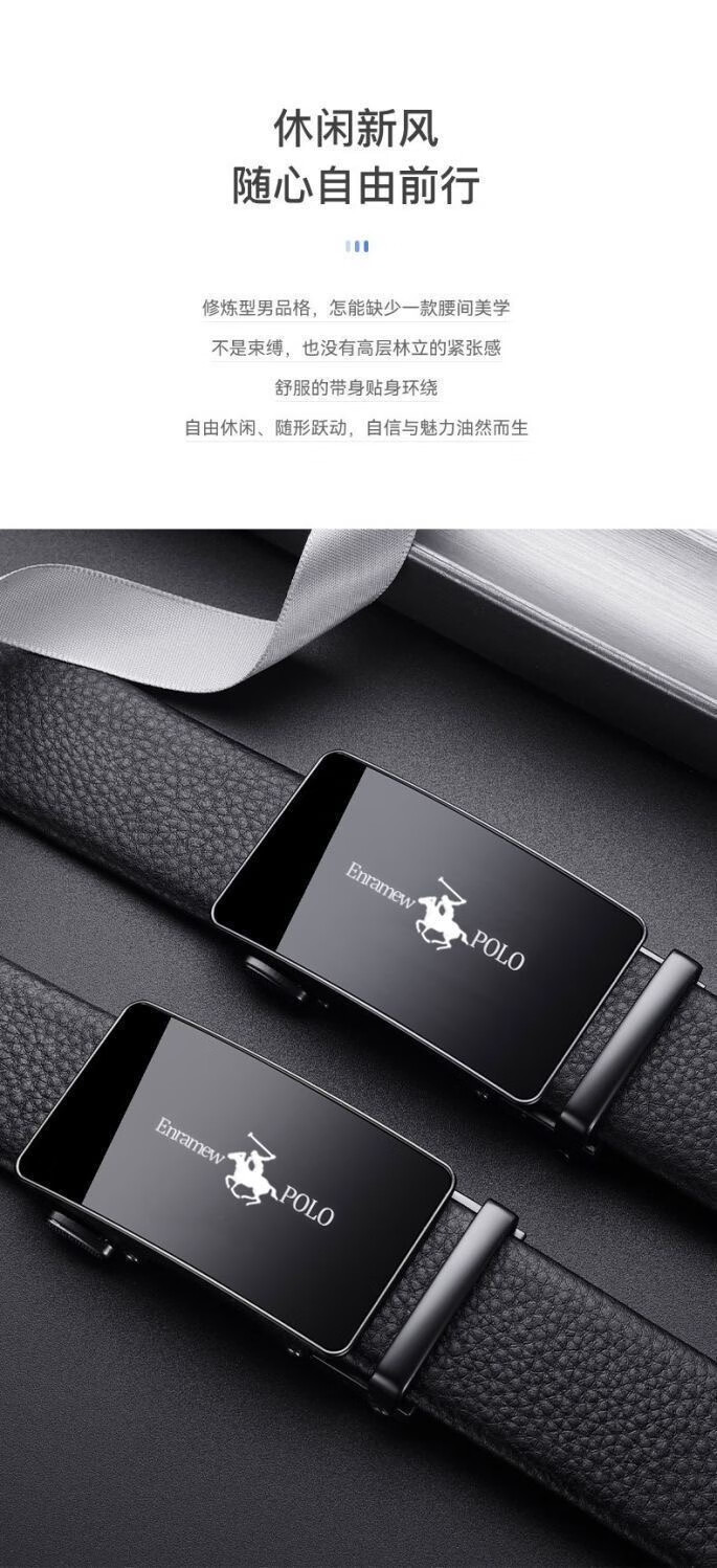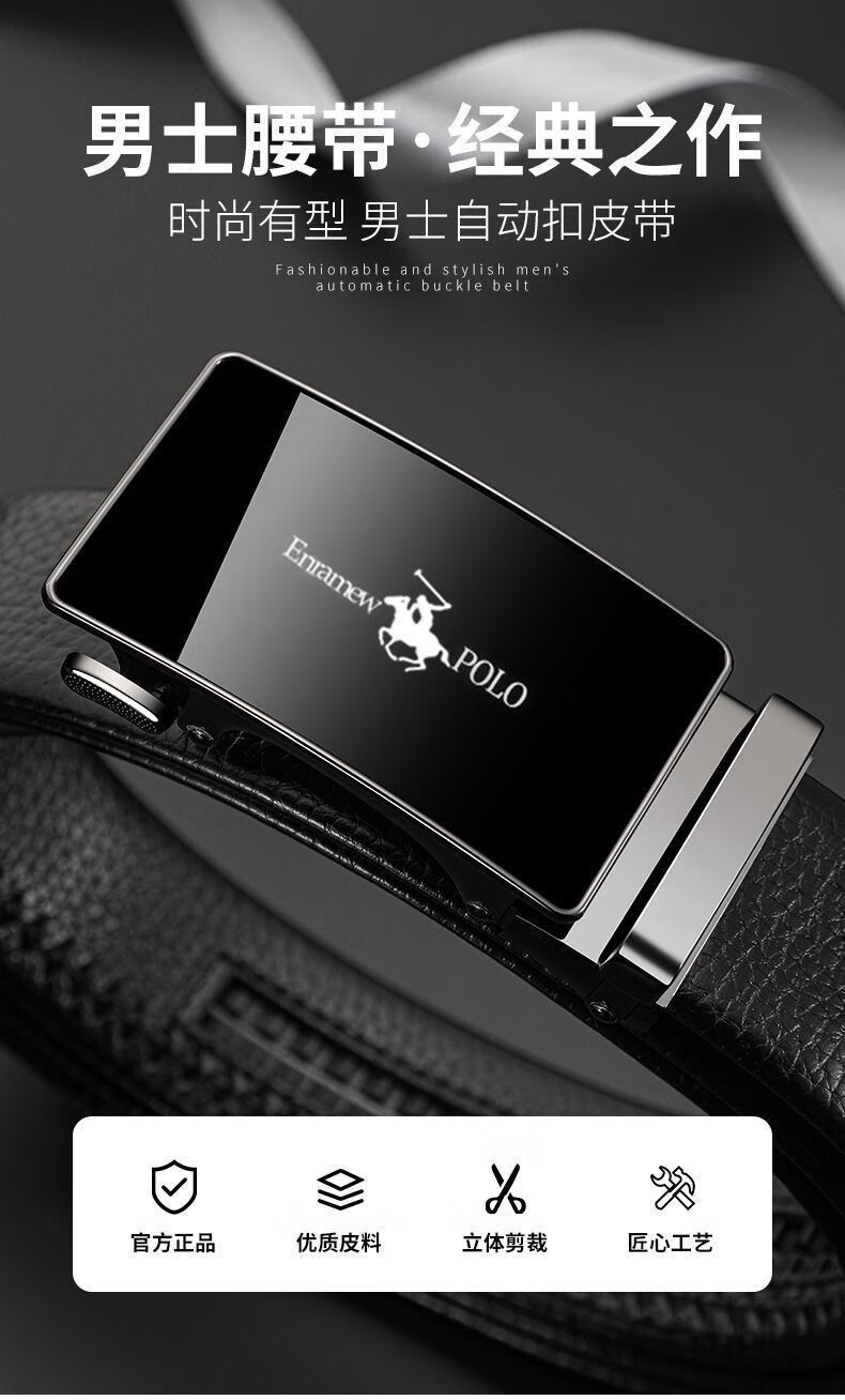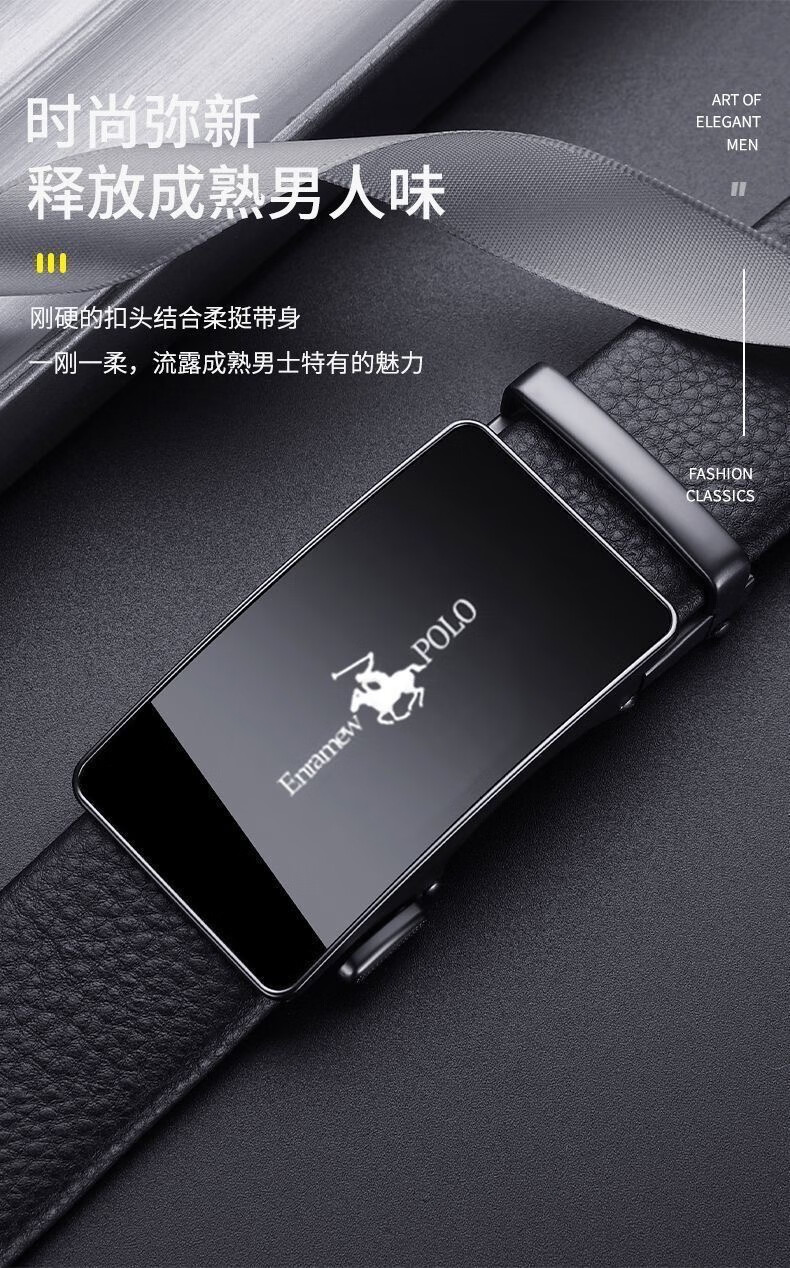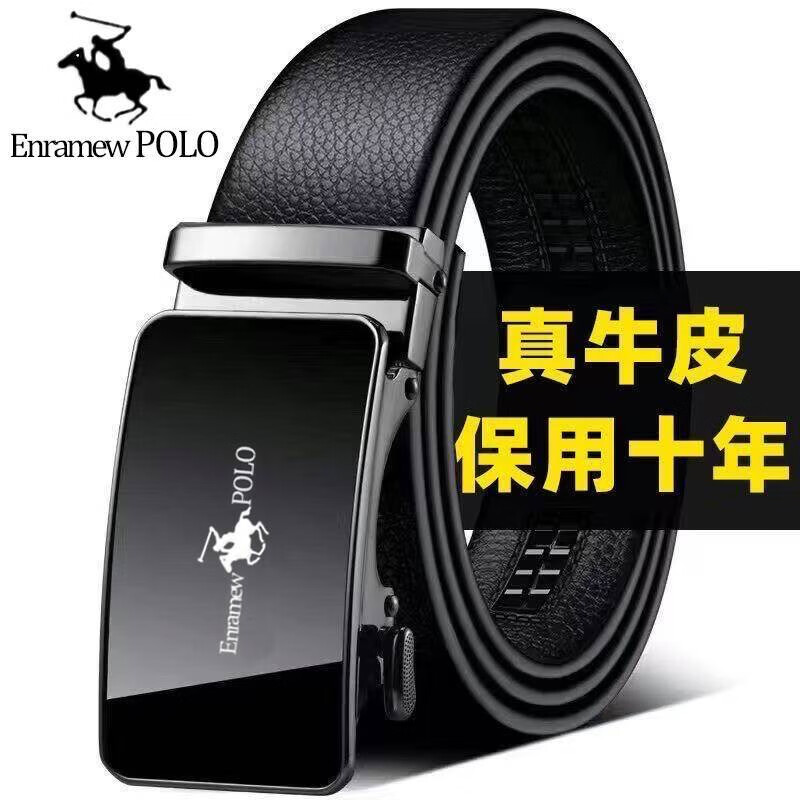 POLO Paul texture men's belt genuine leather automatic buckle belt casual business new men's versatile casual trousers men's new style 120cm suitable for 130-160Jin Jin equals 0.5 kg can be cut