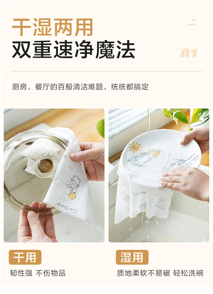 Fat Donglai's same style lazy rag, wet and dry household cleaning supplies, kitchen paper, special paper towel, disposable dishwashing cloth, printed 100 pieces