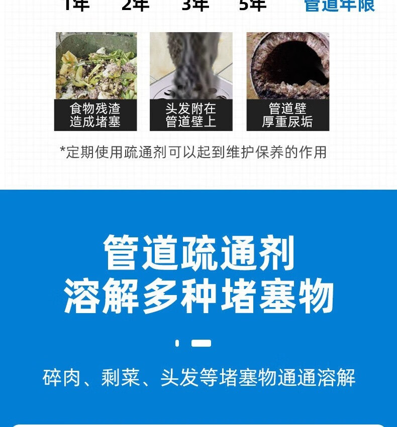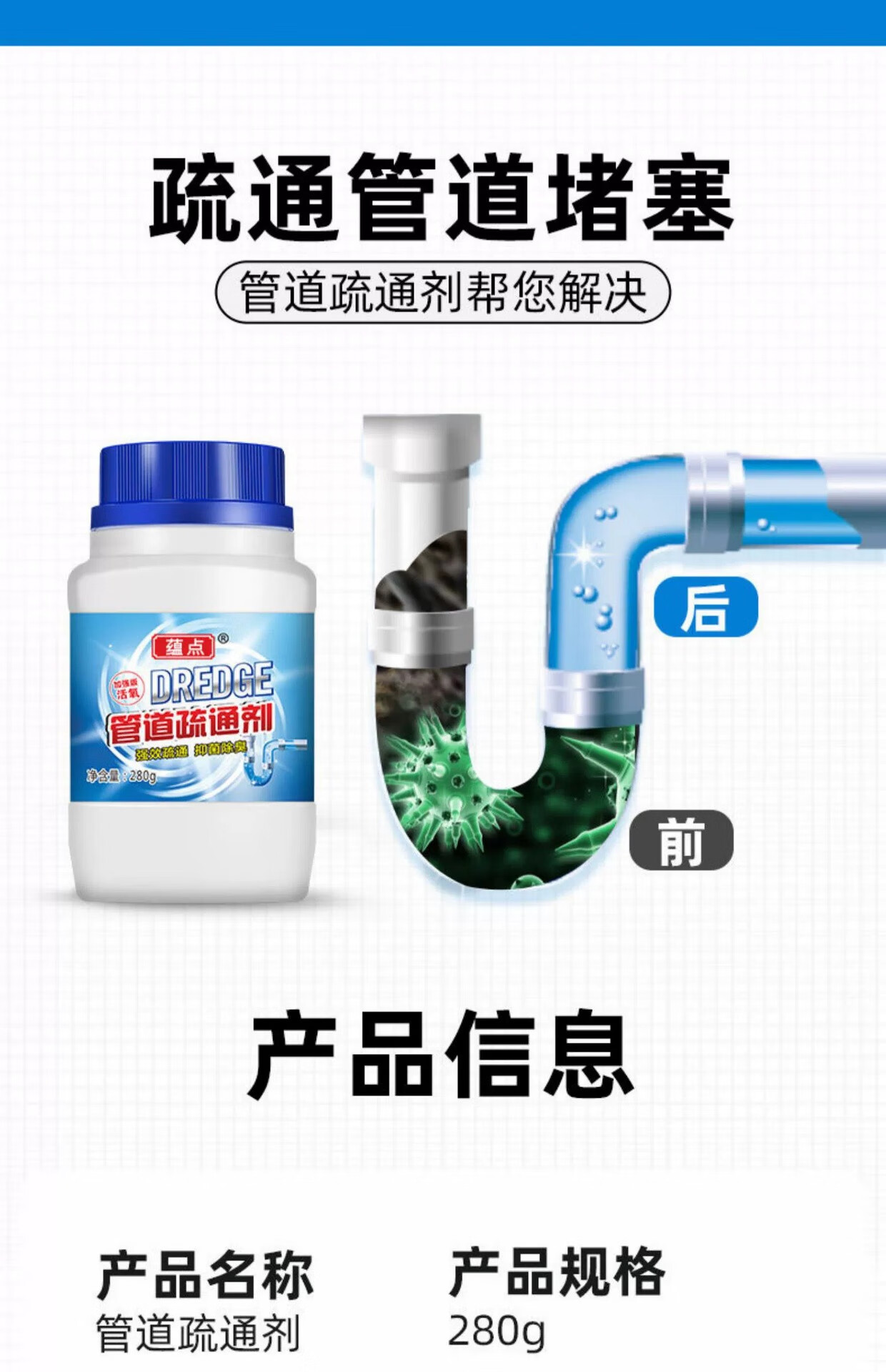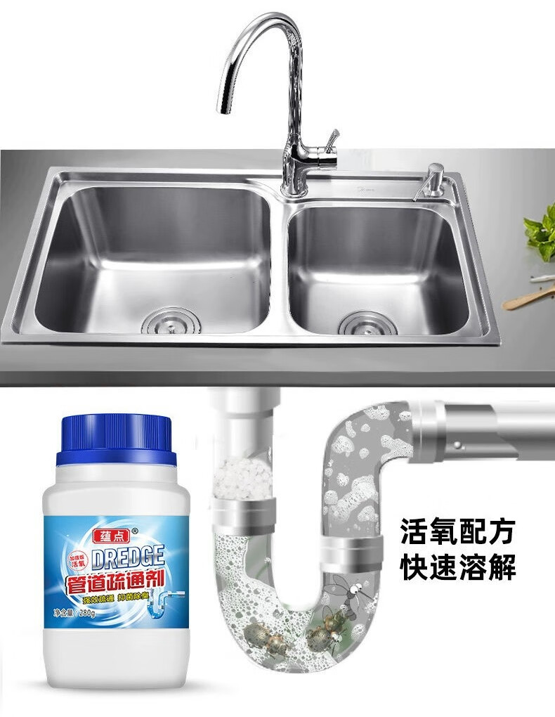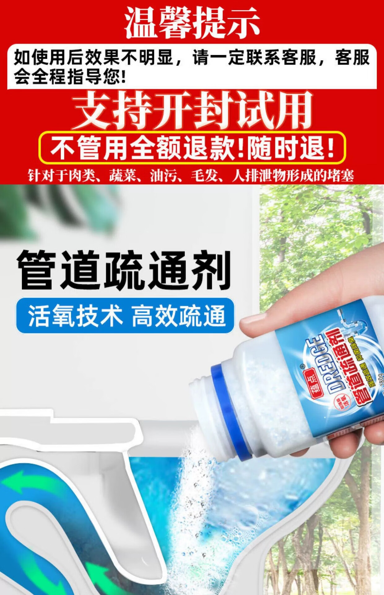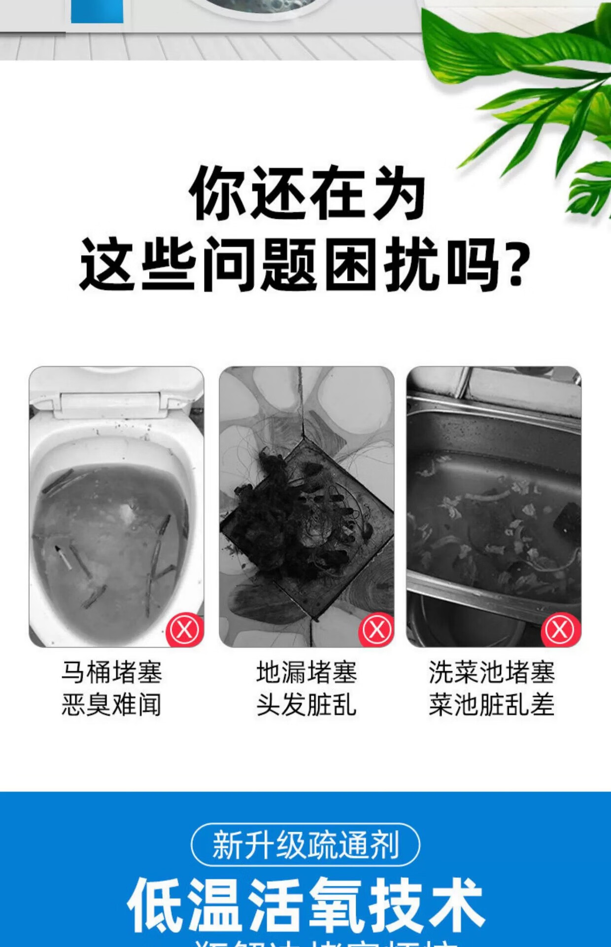 Pipe unblocking sewer pipe kitchen dissolving oil stain toilet agent to clear the toilet powerful sewer artifact clogging and deodorizing pipe unblocking device 2 bottles 100g