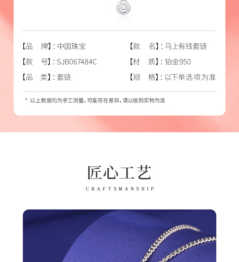 Chinese jewelry pt950 Make money immediately platinum necklace fashionable clavicle set chain Valentine's Day gift for girlfriend and wife Make money immediately set chain weighs about 8g