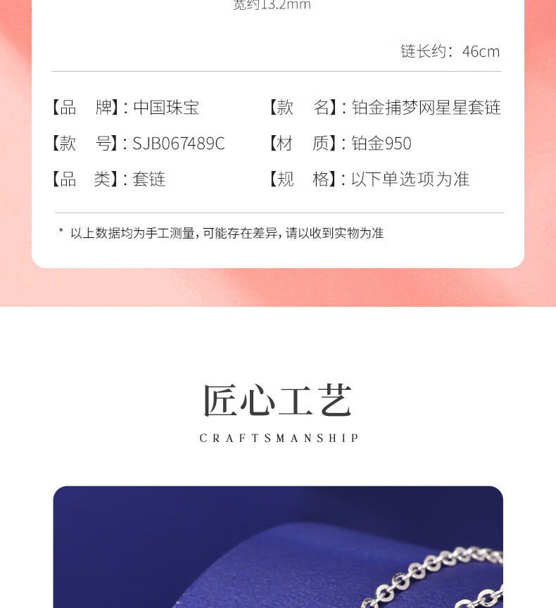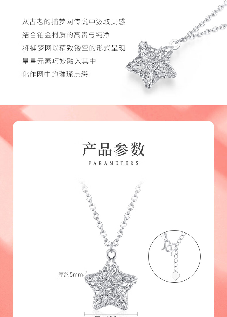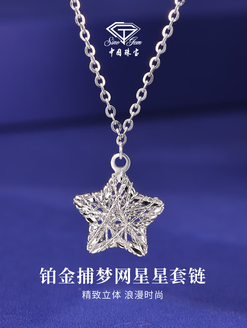 Chinese jewelry pt950 platinum dream catcher necklace plain chain, versatile and fashionable clavicle chain, Valentine's Day gift for girlfriend and wife, platinum dream catcher chain, weighs about 4g