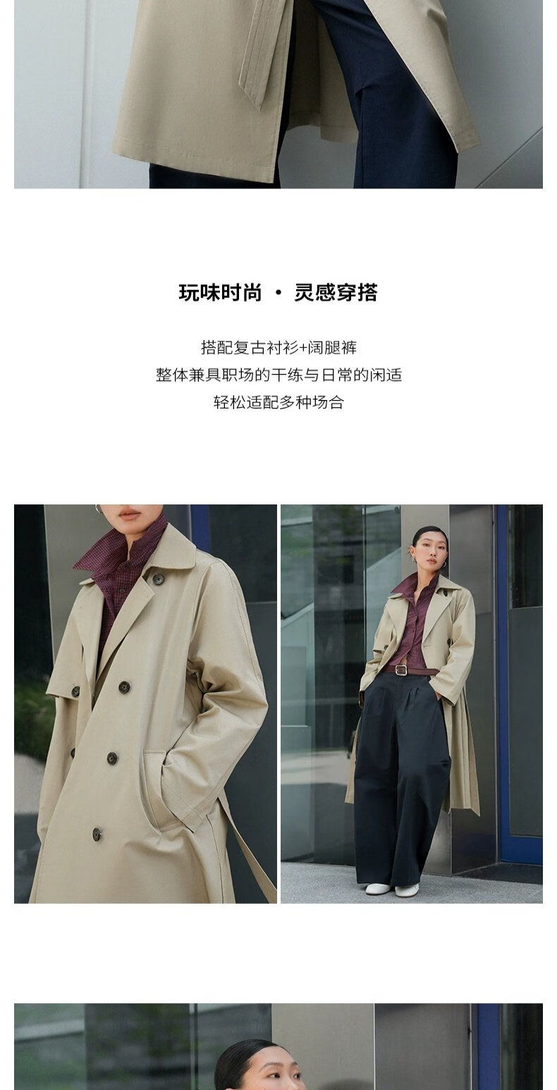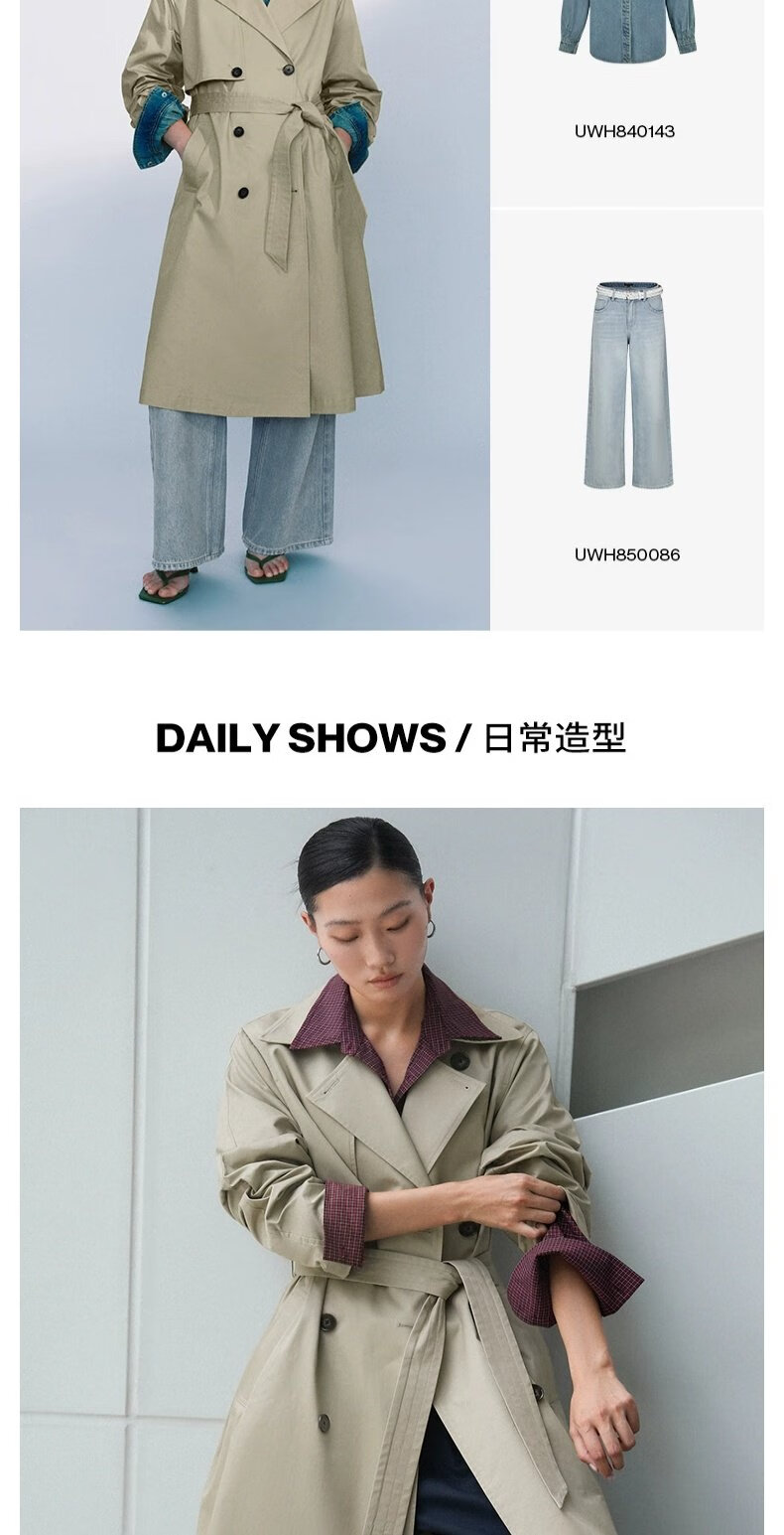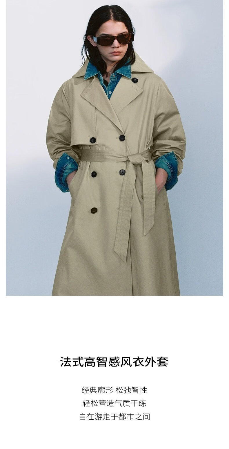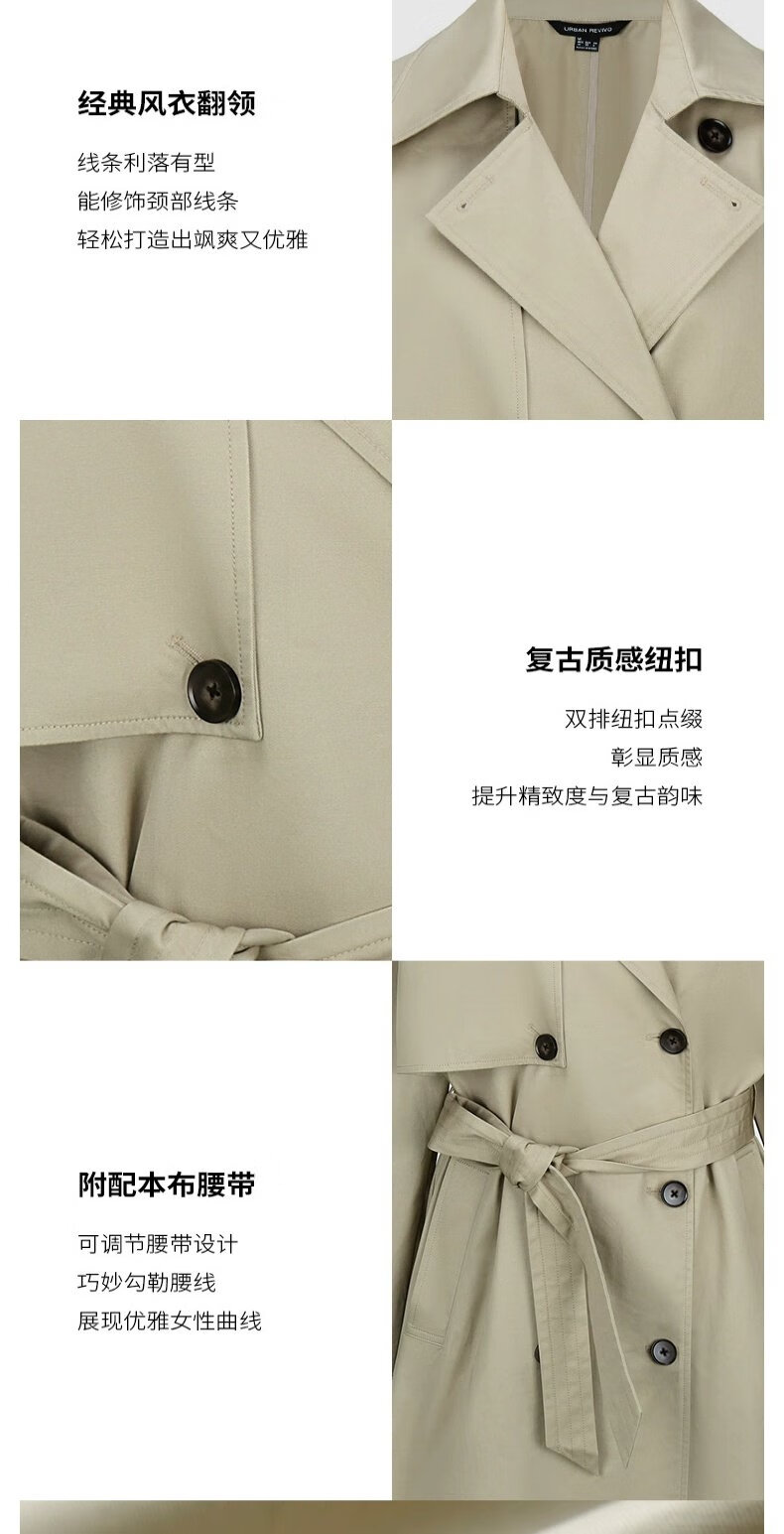 UR autumn new women's temperament double-breasted belt windbreaker jacket UWM150045+ light khaki (loose) XS