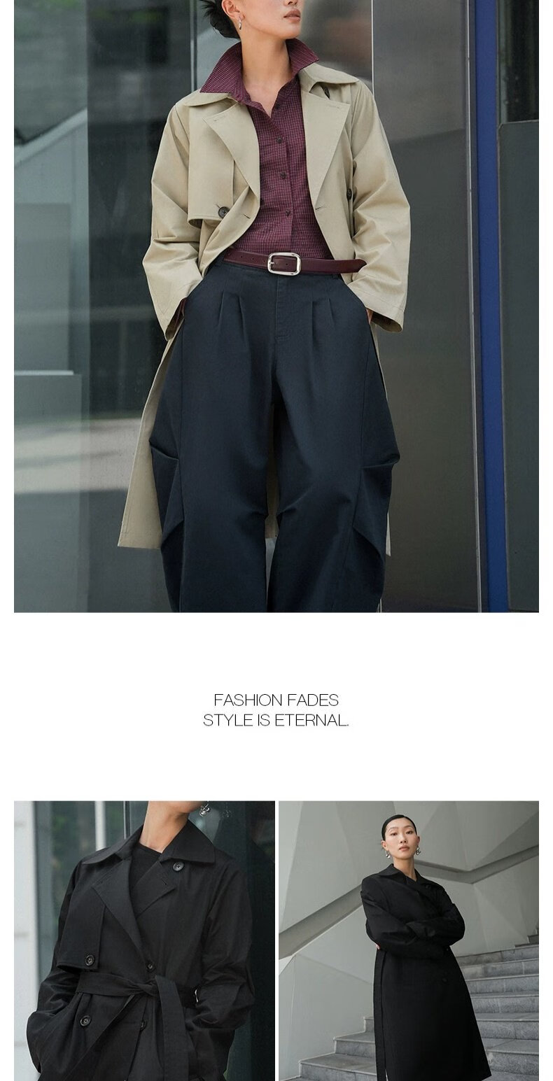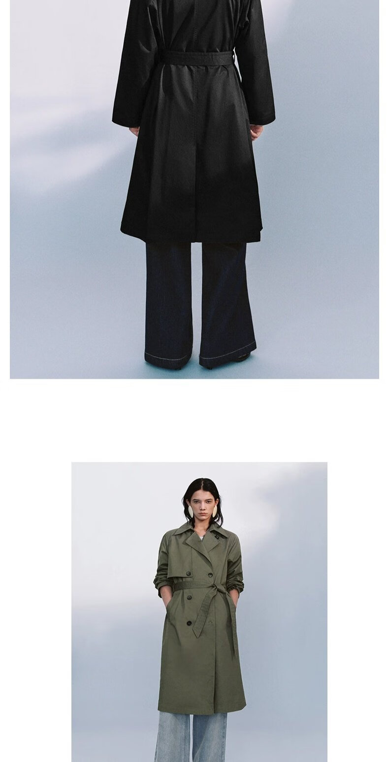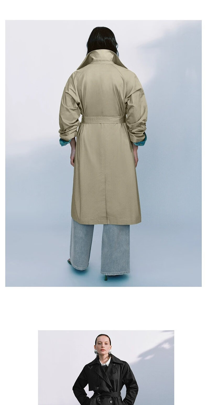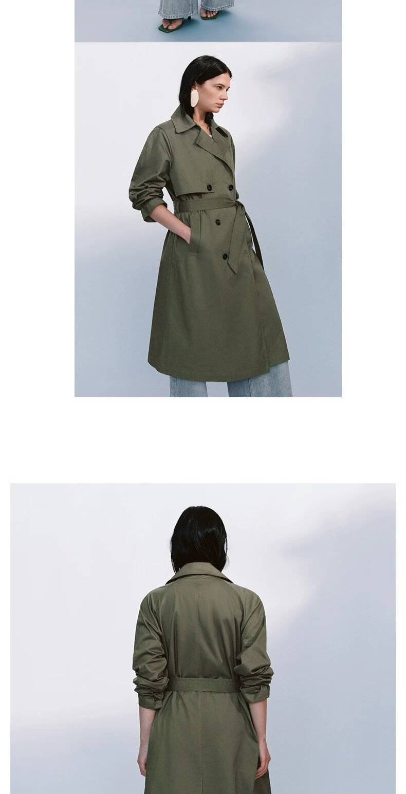 UR autumn new women's temperament double-breasted belt windbreaker jacket UWM150045+ light khaki (loose) XS