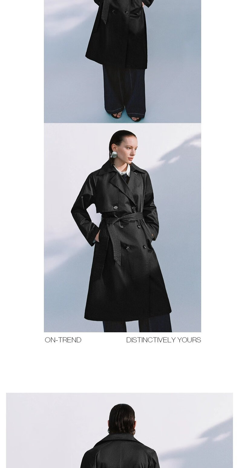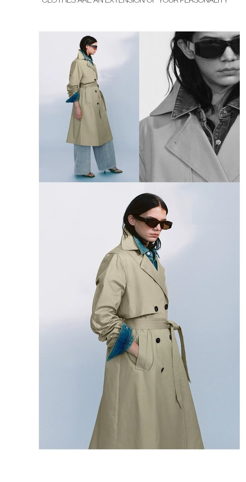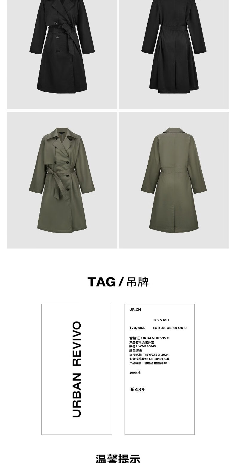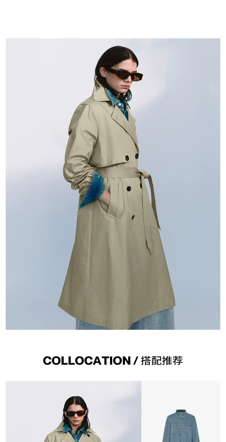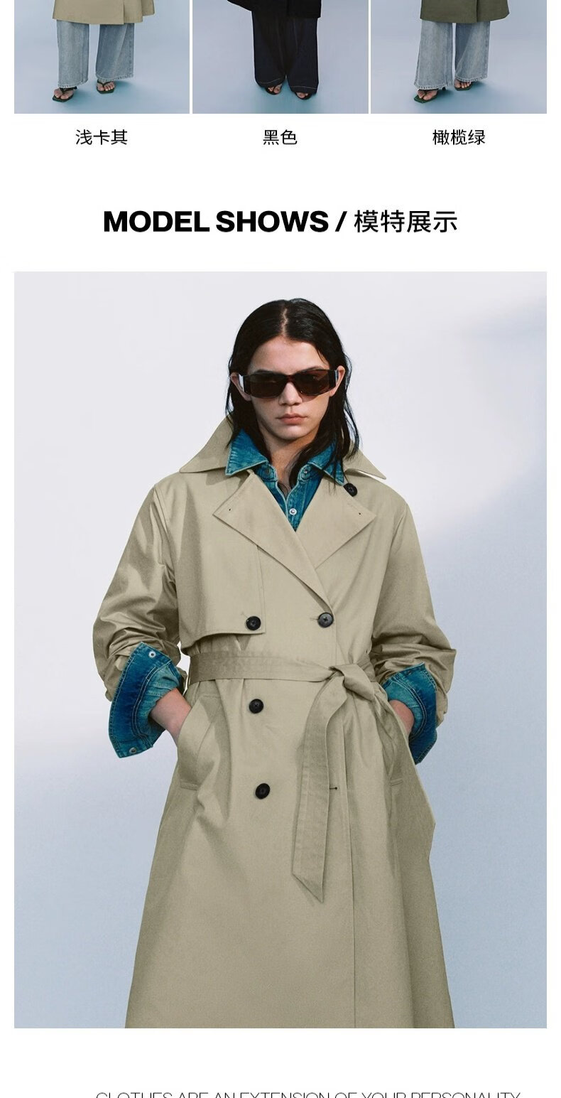 UR autumn new women's temperament double-breasted belt windbreaker jacket UWM150045+ light khaki (loose) XS