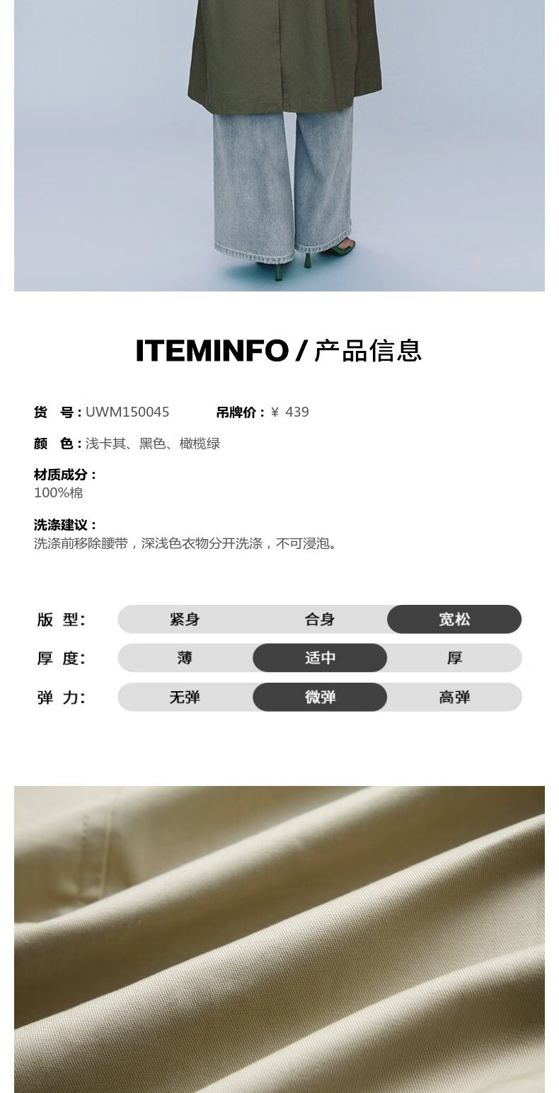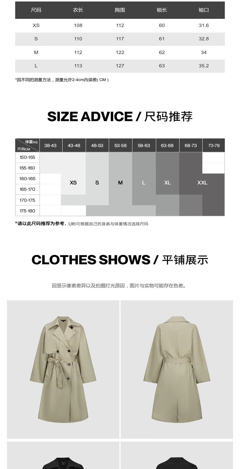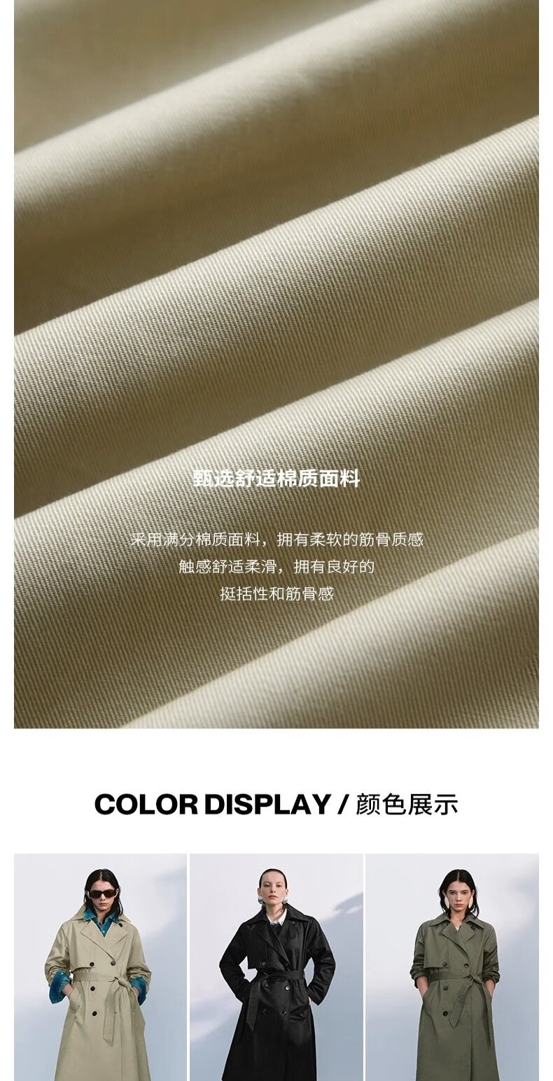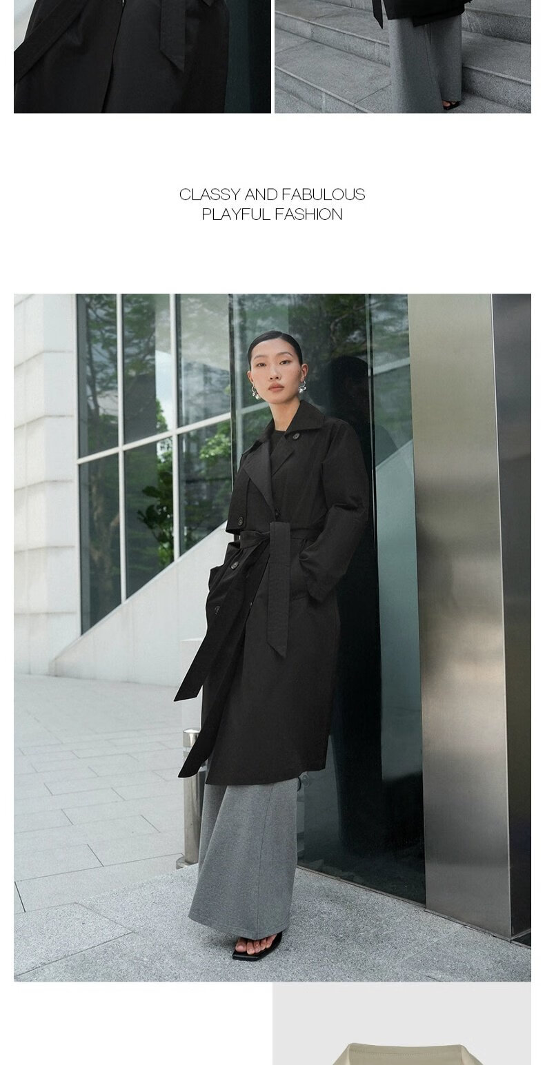UR autumn new women's temperament double-breasted belt windbreaker jacket UWM150045+ light khaki (loose) XS