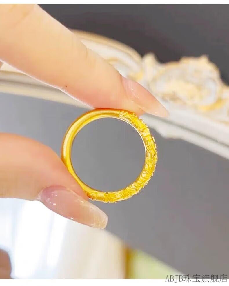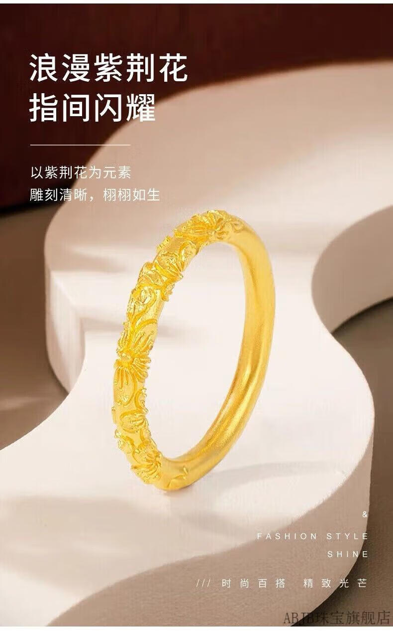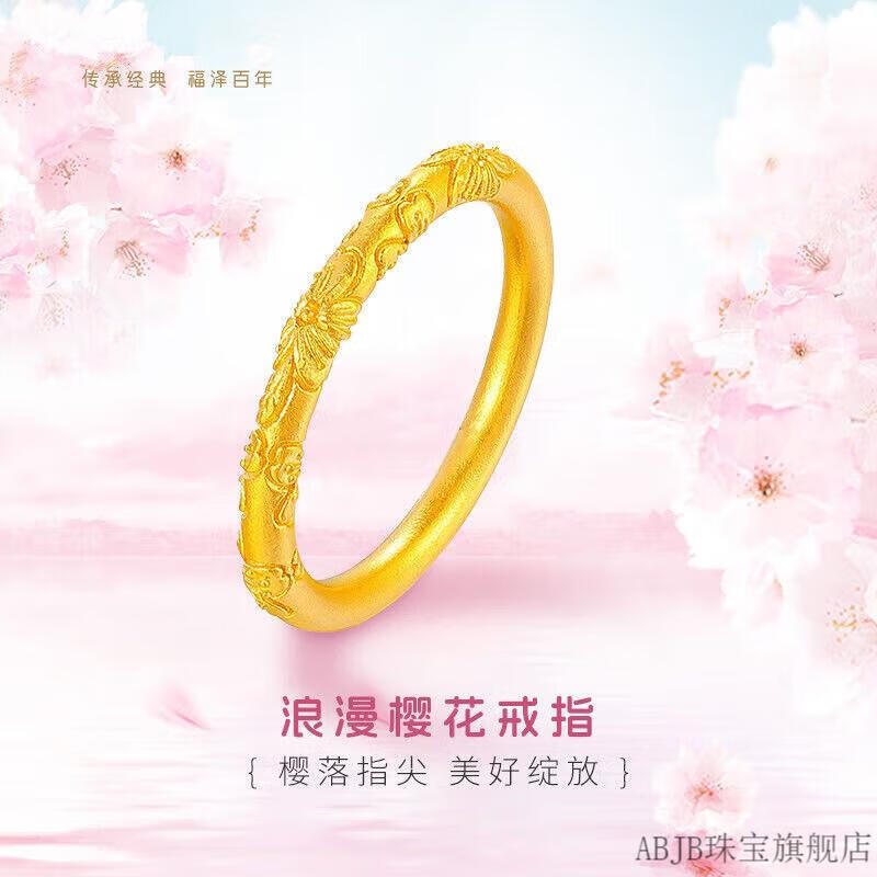 ABJB Old Phoenix 999 gold pure gold cherry blossom gold ring plain ring strip ring new ring gift for girlfriend 2.19g No. 11 (with certificate of warranty)