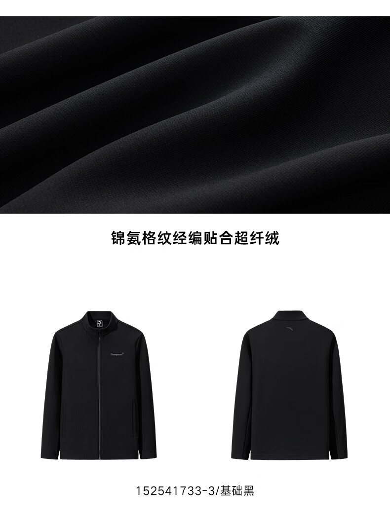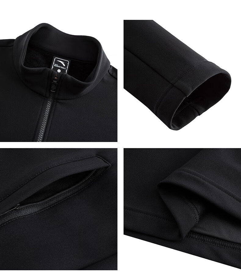 ANTA KT Series Men's Light Warm Velvet Sports Top 25 Years Winter Fashion Casual Sports Jacket 152541733 Basic Black-3 L (Male 175)