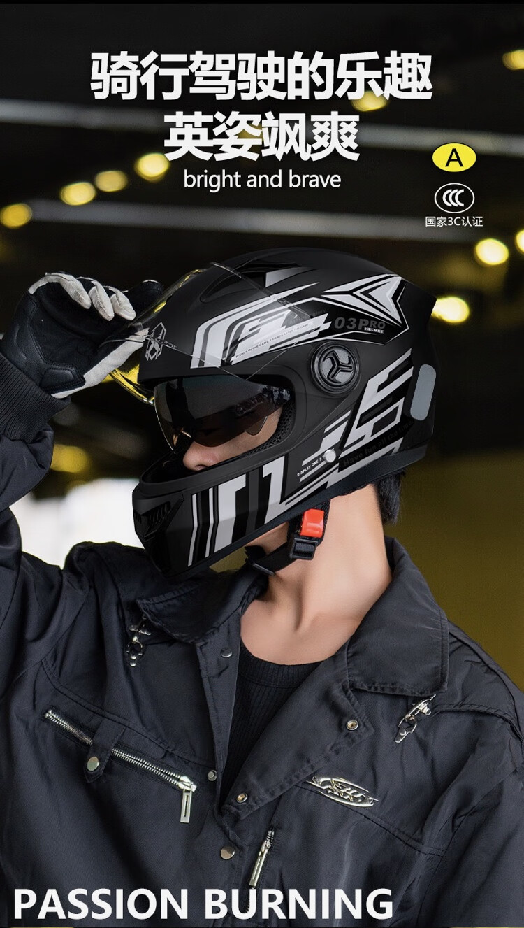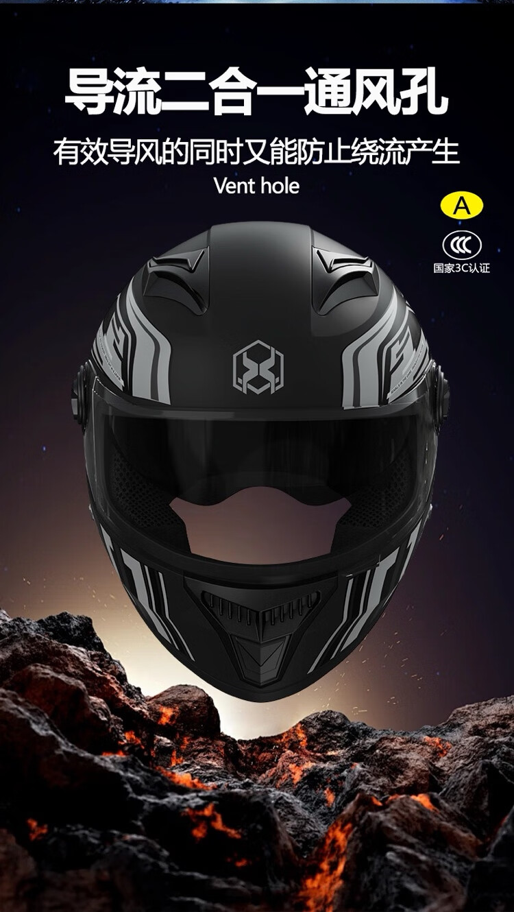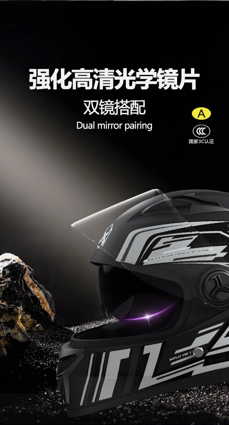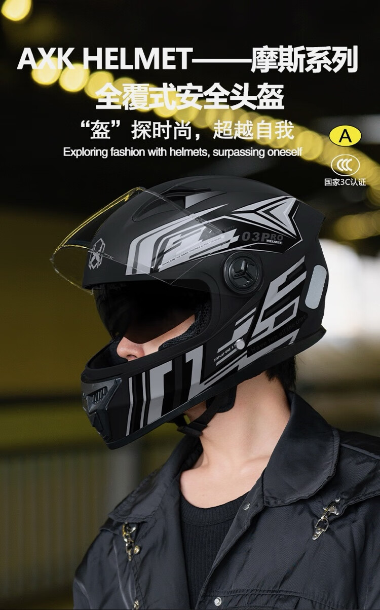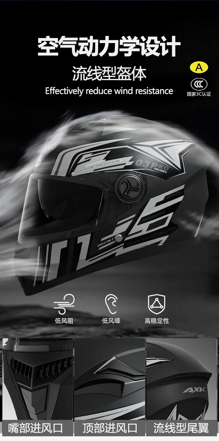 AXK's popular dual-mirror full-face helmet 3C certified full-face mecha helmet, all-season motorcycle electric vehicle helmet authentic helmet (flagship standard version) black and silver-double-mirror authentic adult size 54-62 head circumference