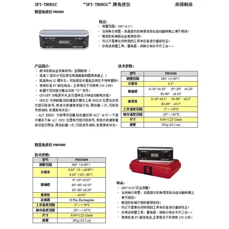 Guose level 31-040-9 pro3600 digital display angle meter measuring instrument high precision 31-038-3 American SPI-PRO3600 order number 31-040-9