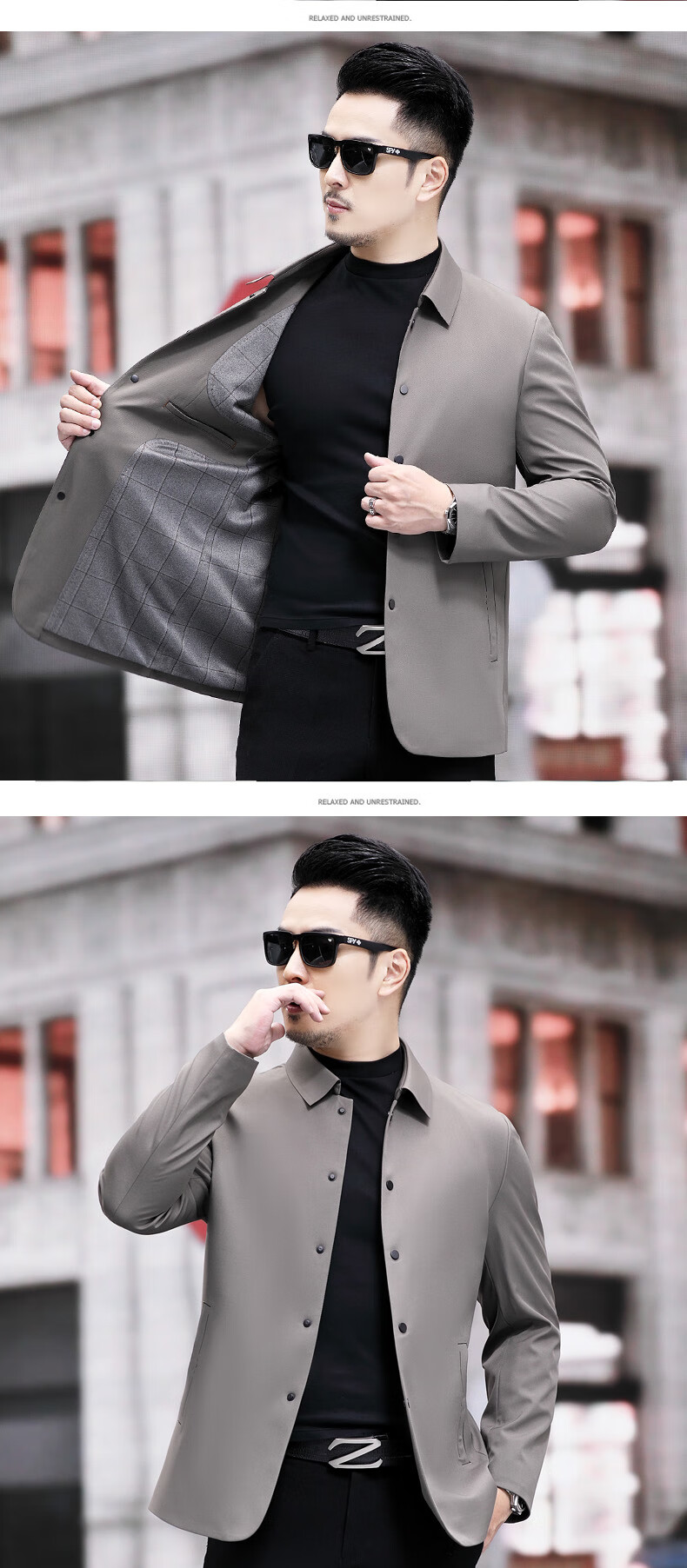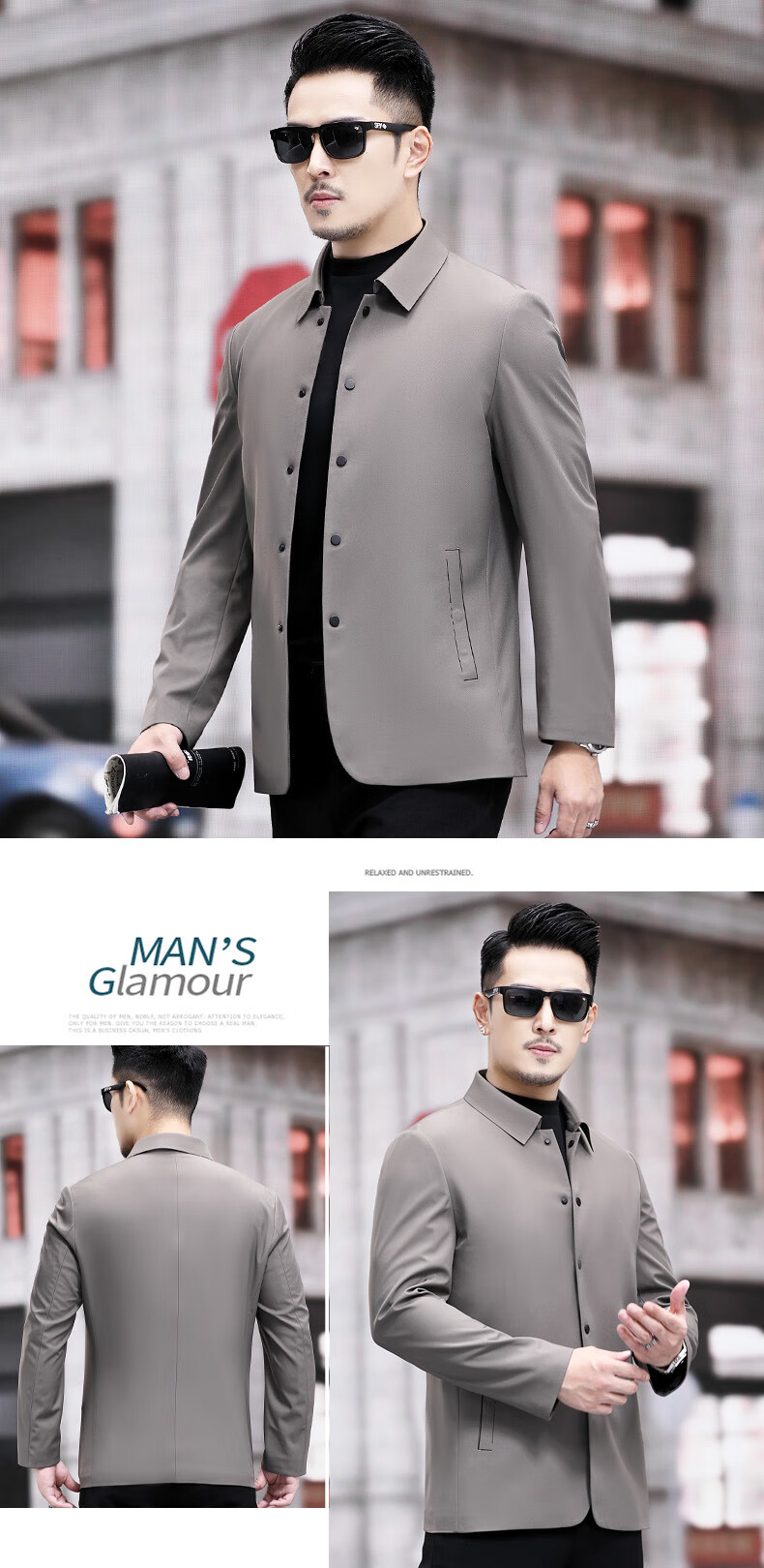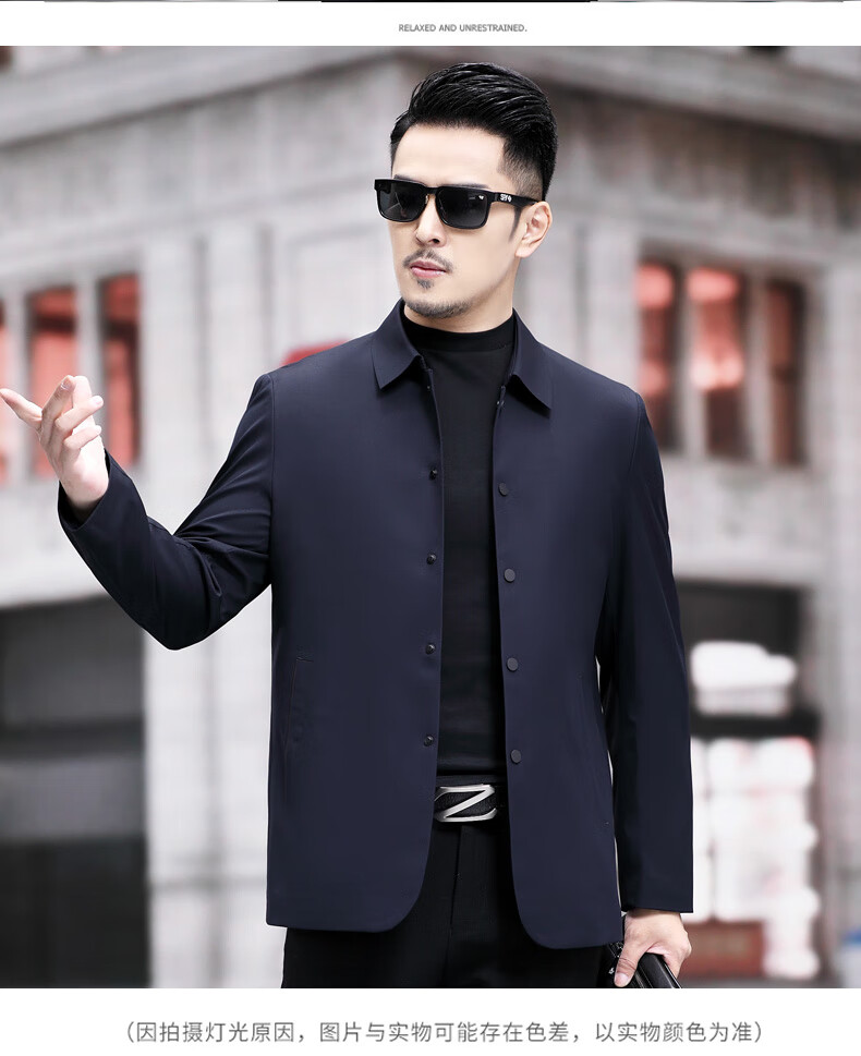 JINBA 2025 new middle-aged men's lapel jacket spring and autumn thin business casual jacket men's 8823 navy blue M 170-