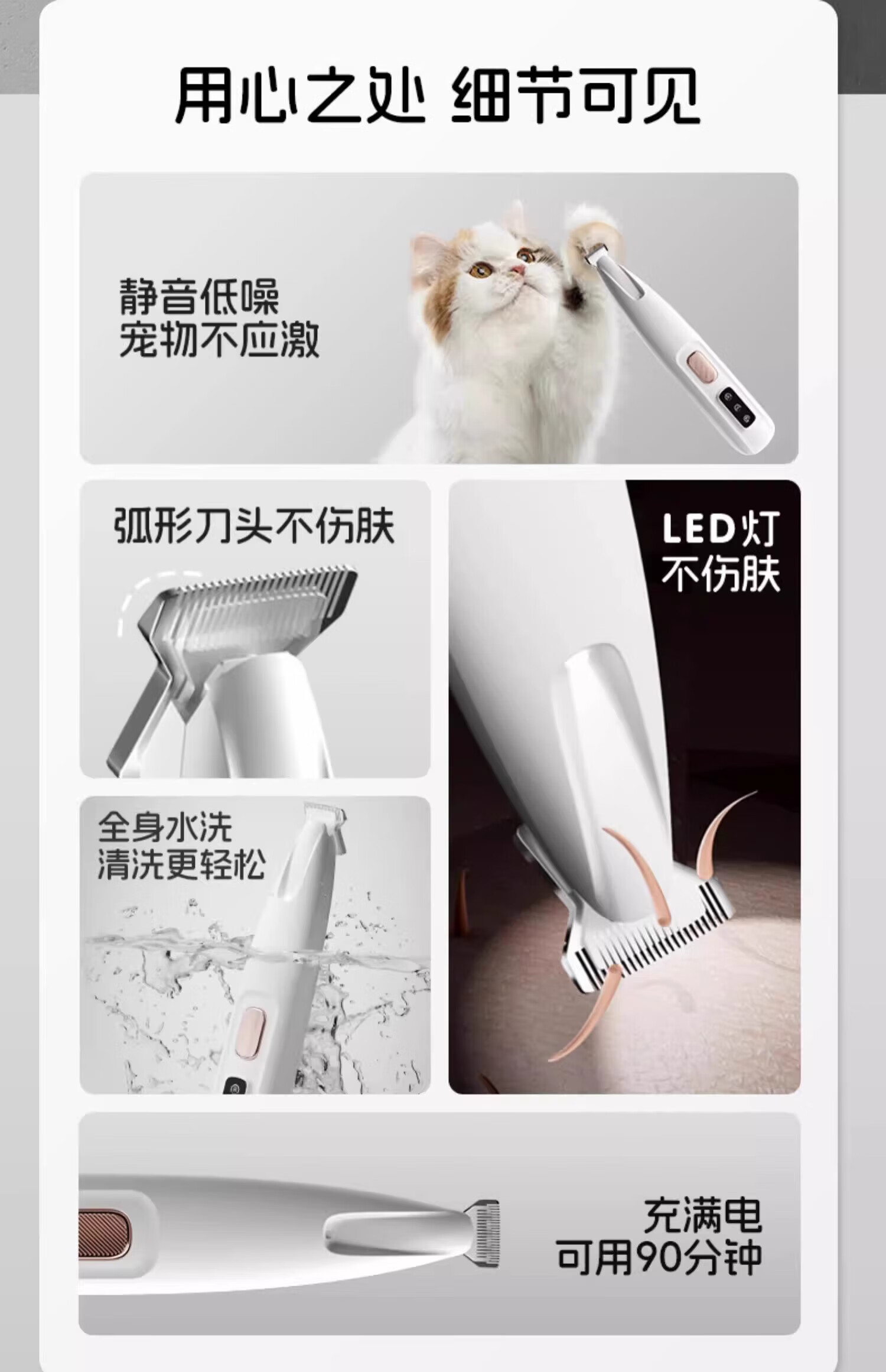 Tiger pet cat foot shaving device, silent clipper to trim the soles of the feet, electric clipper, pet-specific dog shaving pusher, widened head shaver, washable + bass