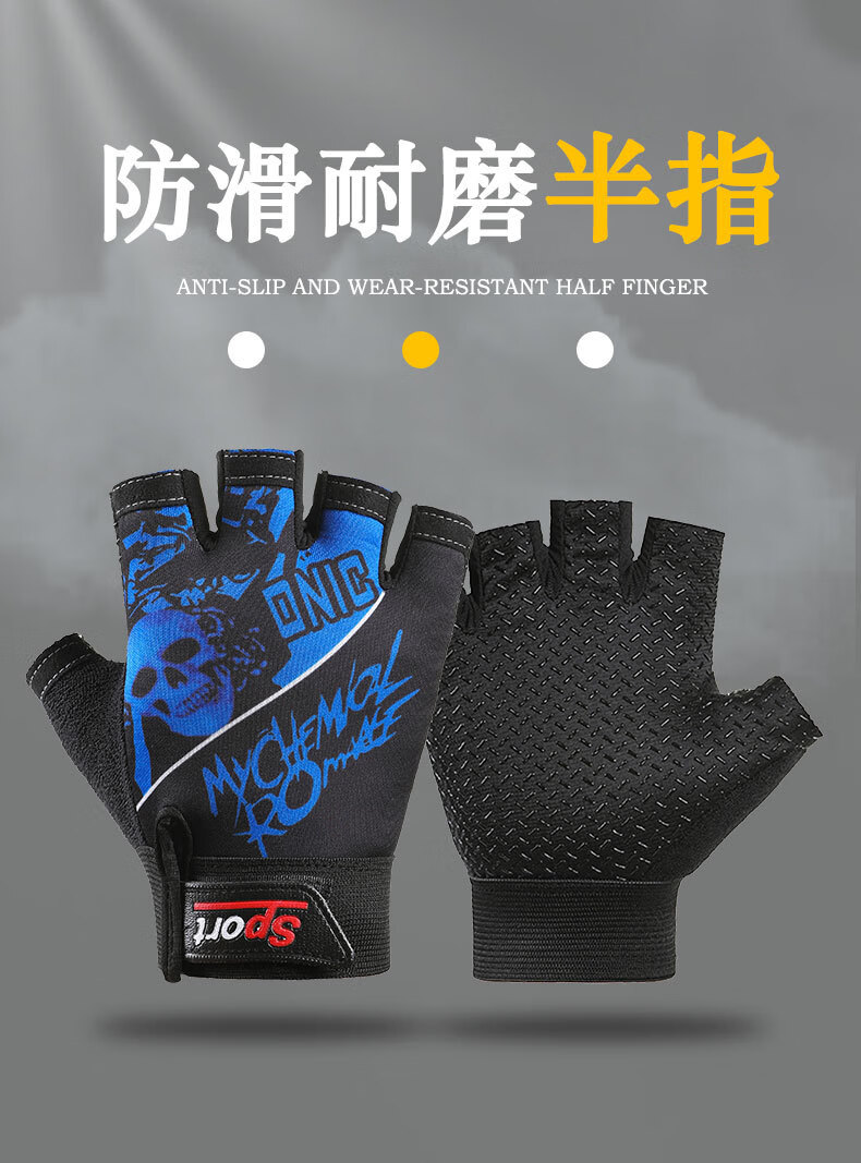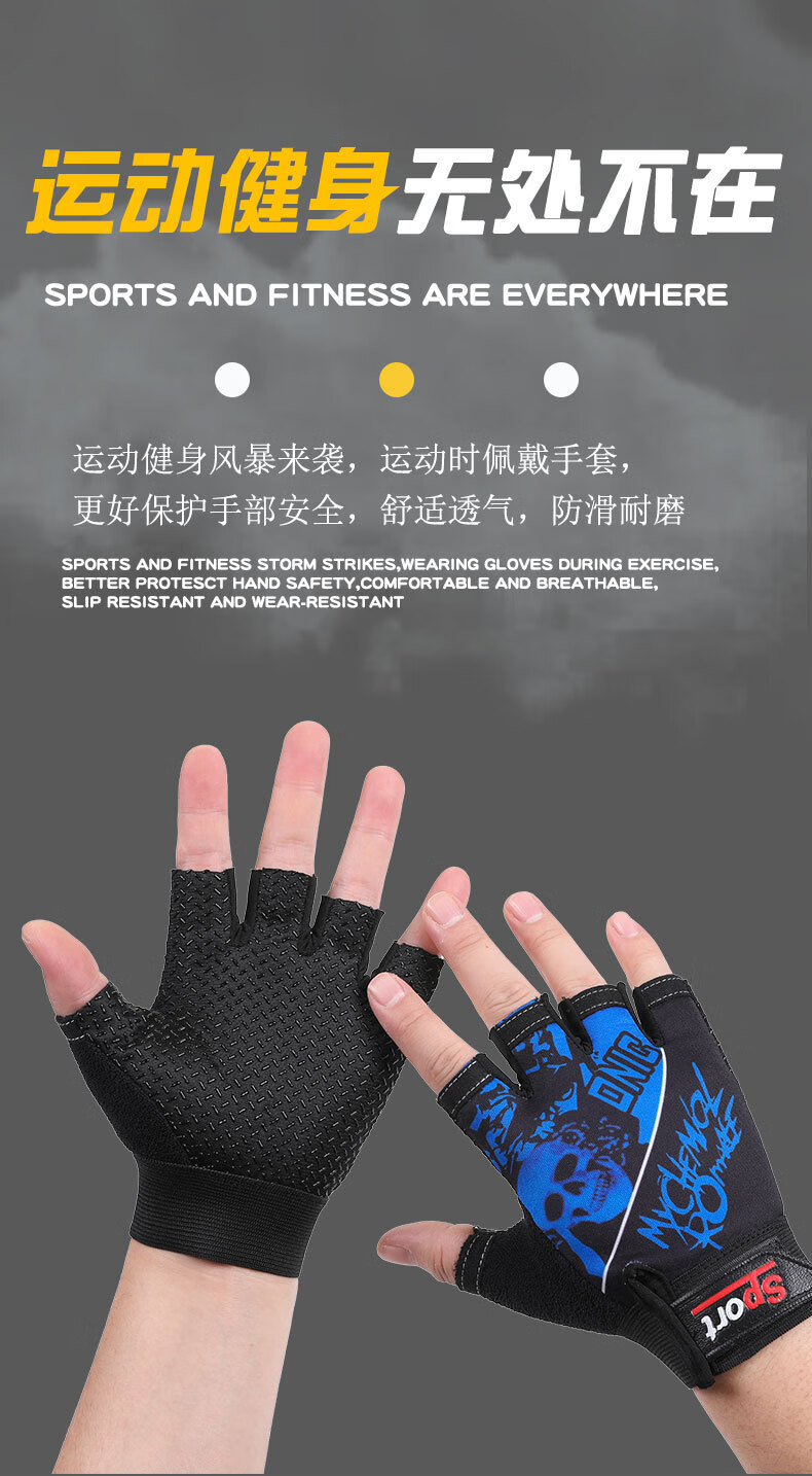 Men's Skull Half Finger Outdoor Cycling Mountaineering Fishing Fitness Half Finger Gloves Breathable Non-Slip Half Finger Cycling Gloves Blue One Size
