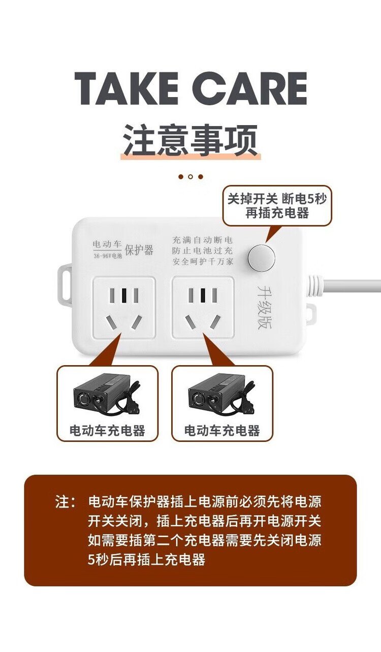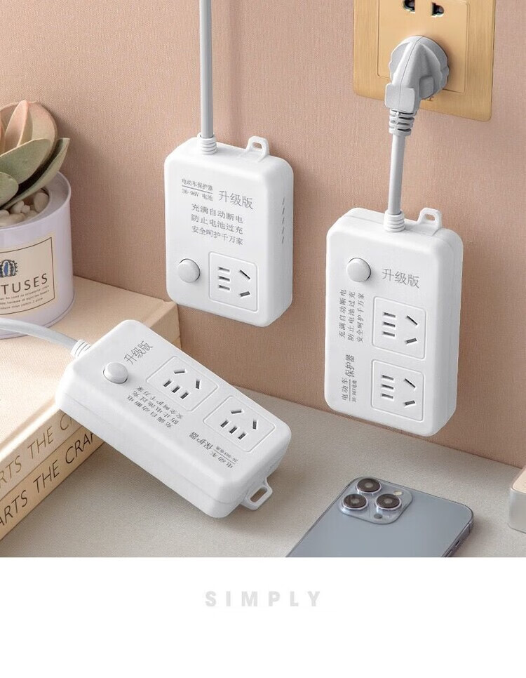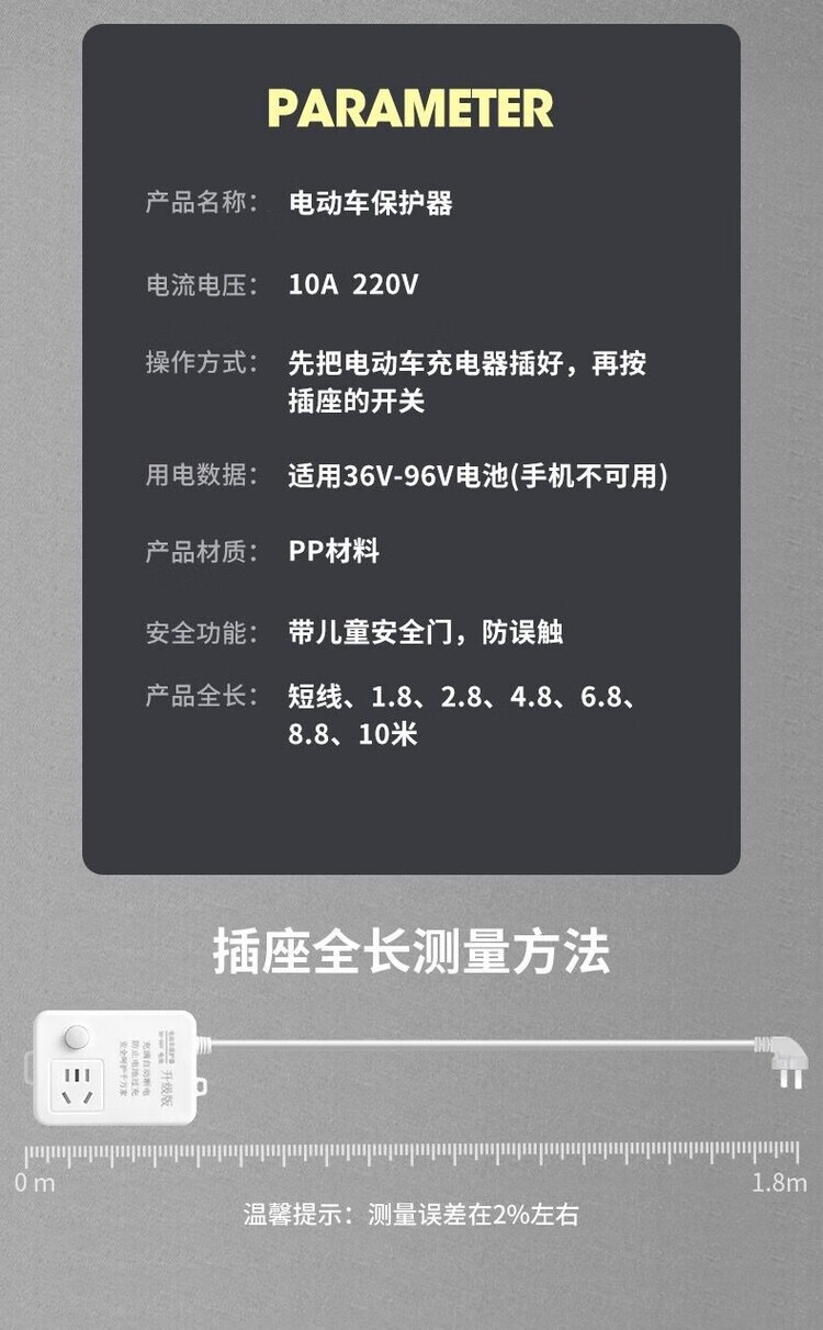 Battery car charging protector, genuine socket, electric car charging protector, automatic power-off to prevent overcharging, battery car extension cord, smart timer, quality upgrade, one plug, automatic power-off when full, thick line, total length 1.8 meters, professional battery protector