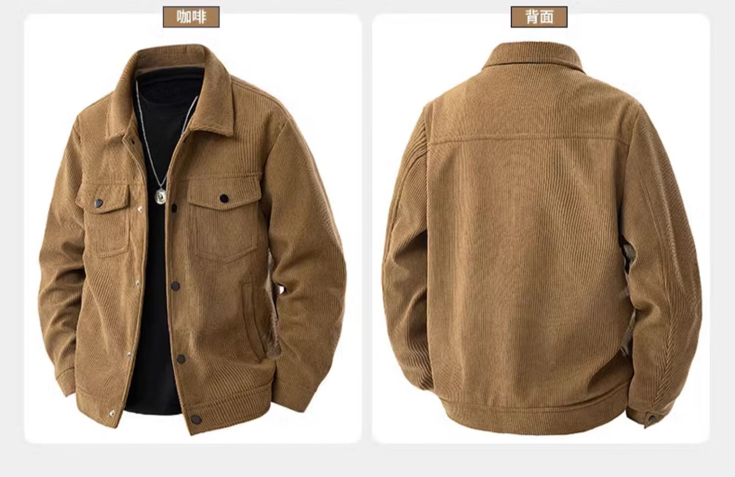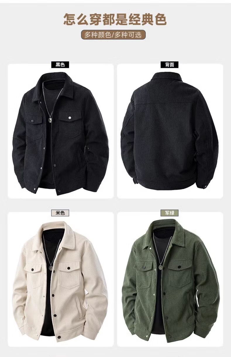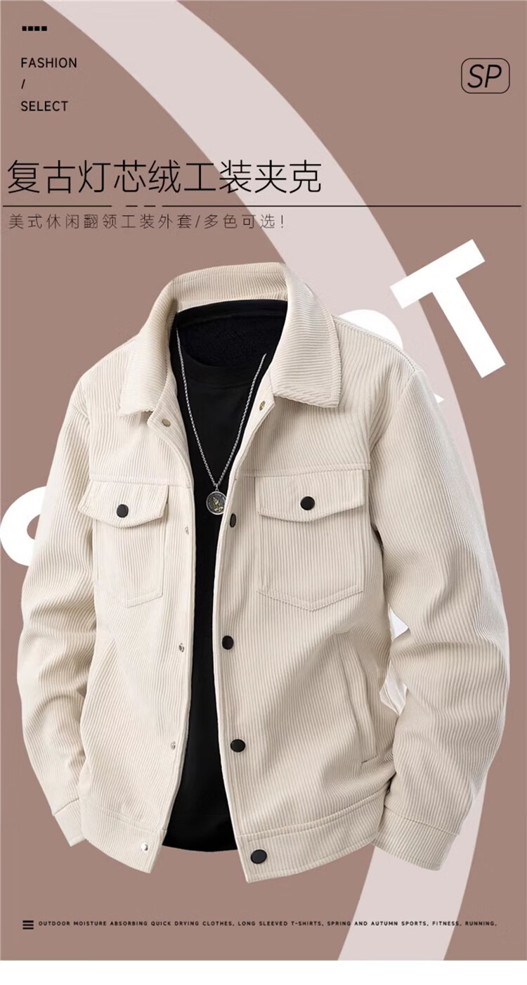 Corduroy Men's Jacket Spring and Autumn Lapel Business Casual Top New Korean Style Handsome Jacket CSL3136 Coffee XL (120-135Jin Jin equals 0.5kg)