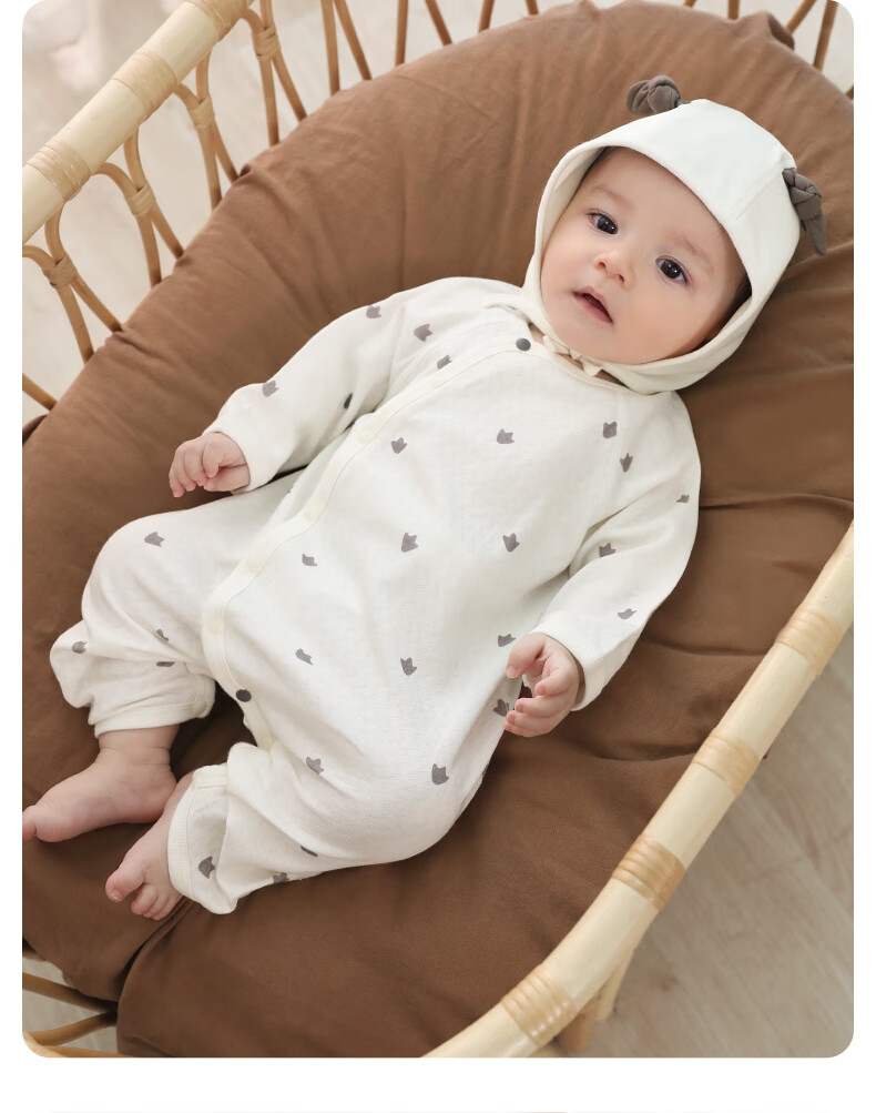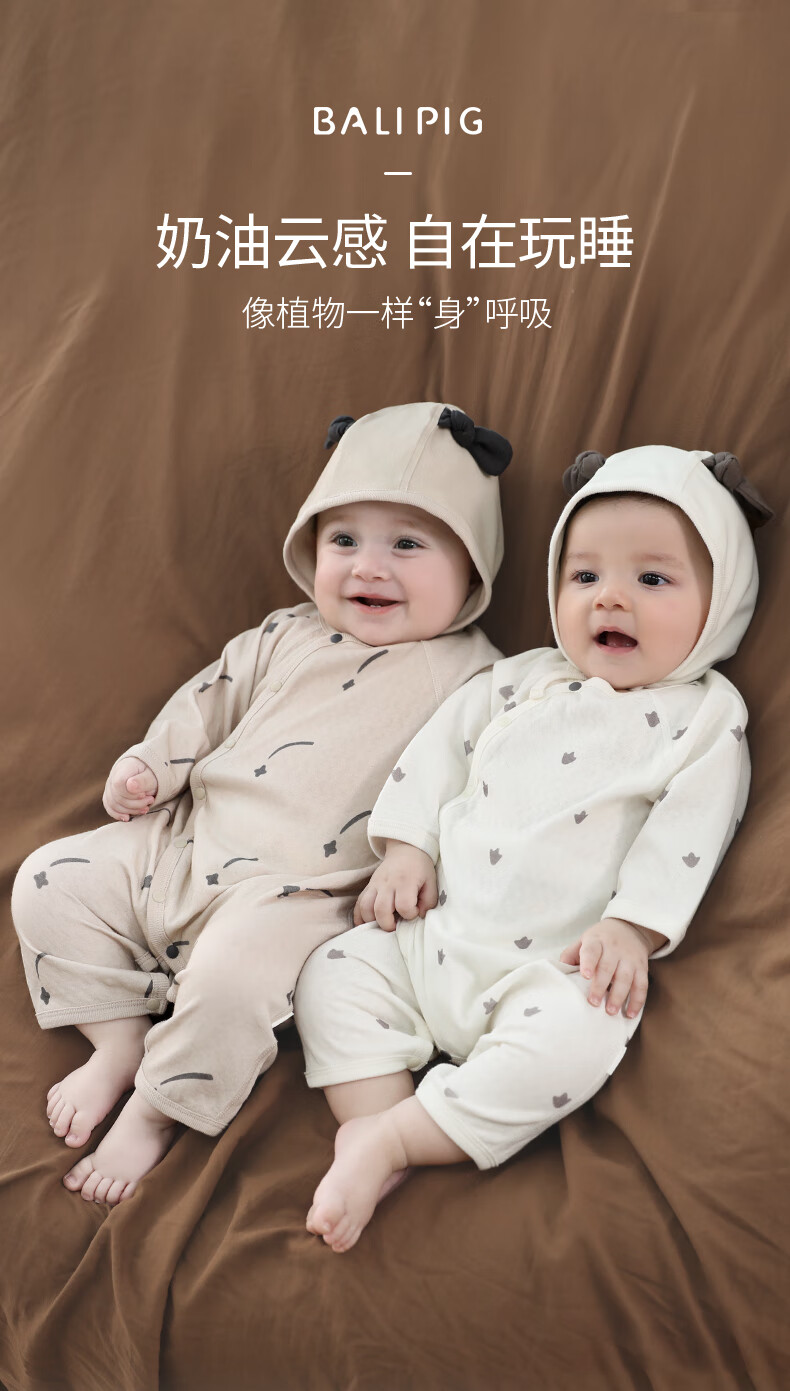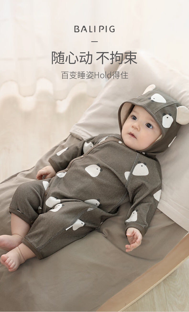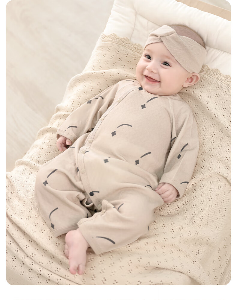 Bali Piggy Newborn Clothes Spring and Autumn Baby Harness Romper Suit Four Seasons Long Sleeve Air Conditioning Suit Pajamas Modal Baby Onesie Beige Meteor Shower 73cm