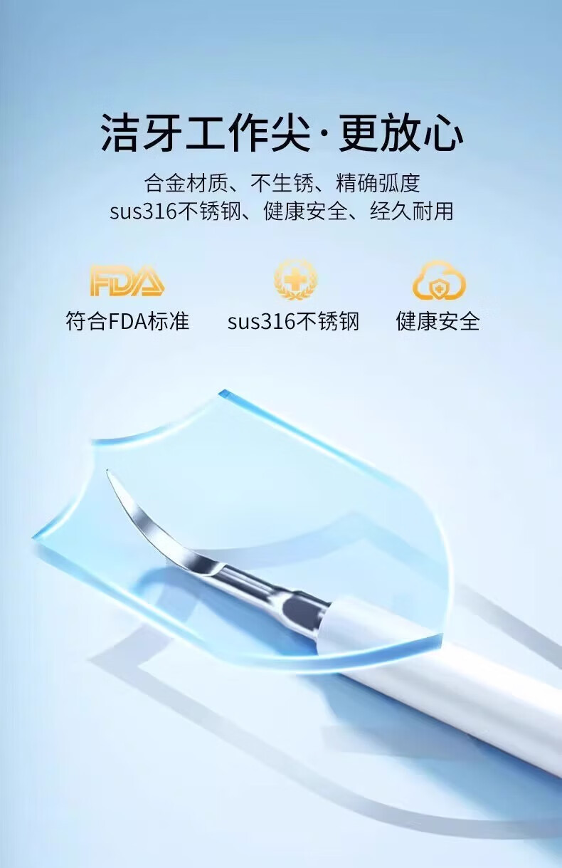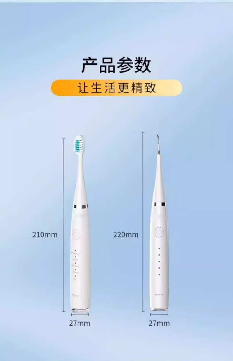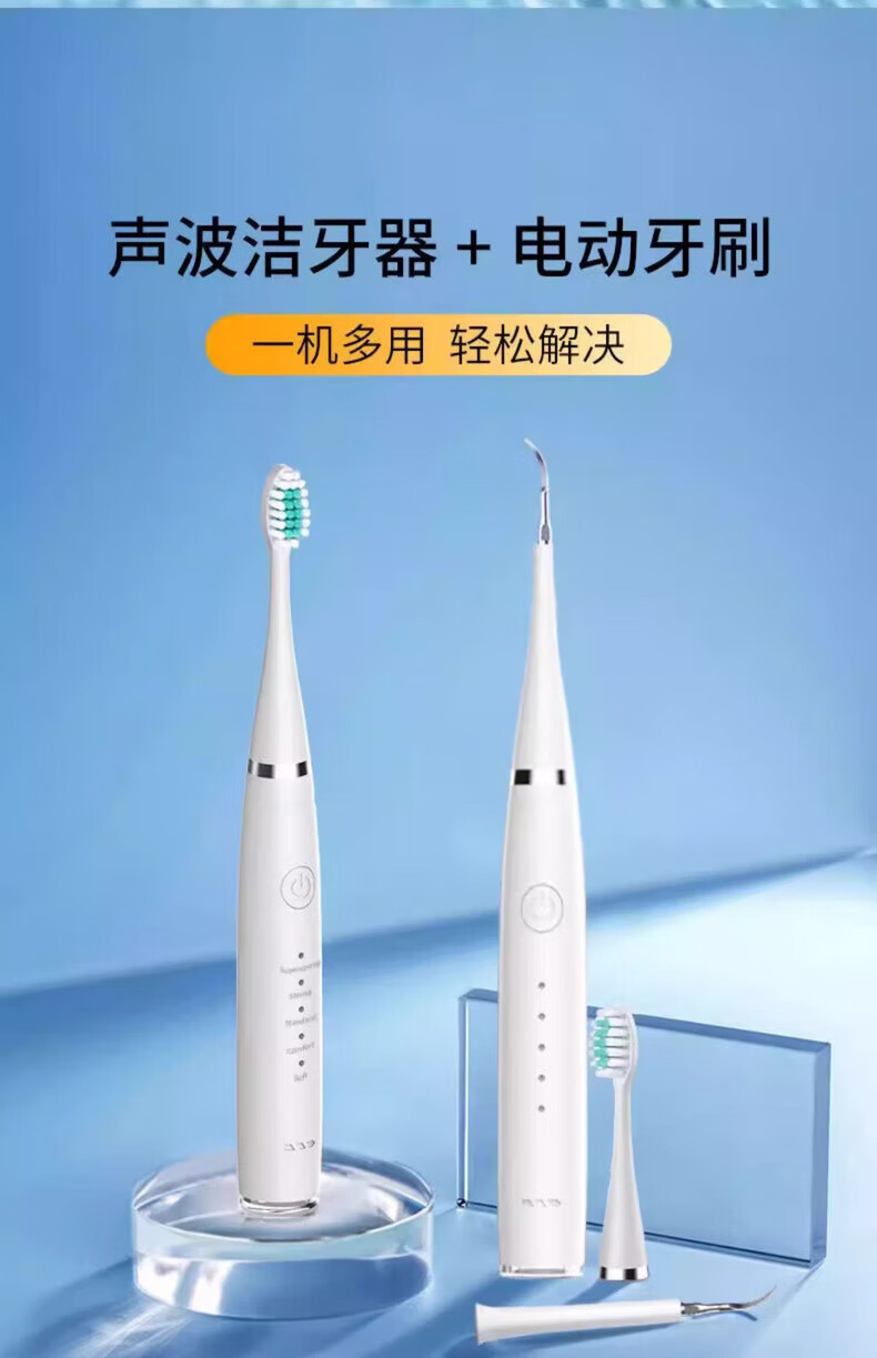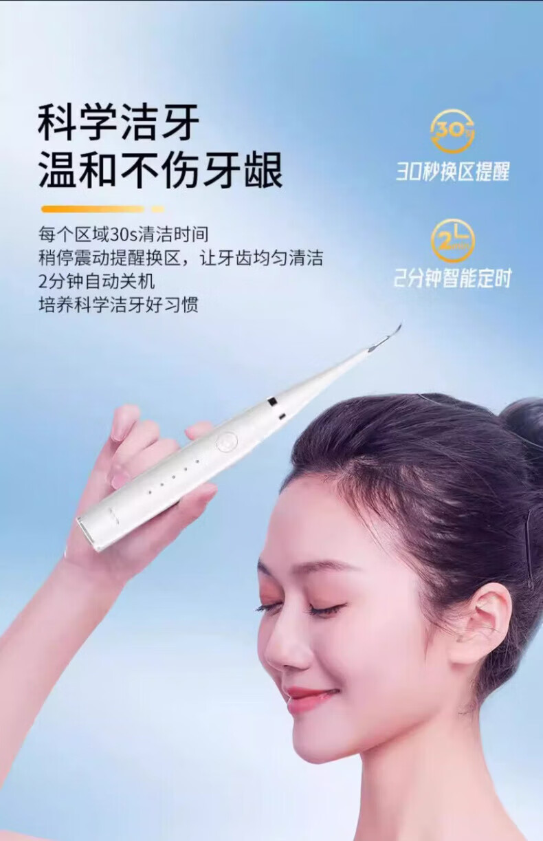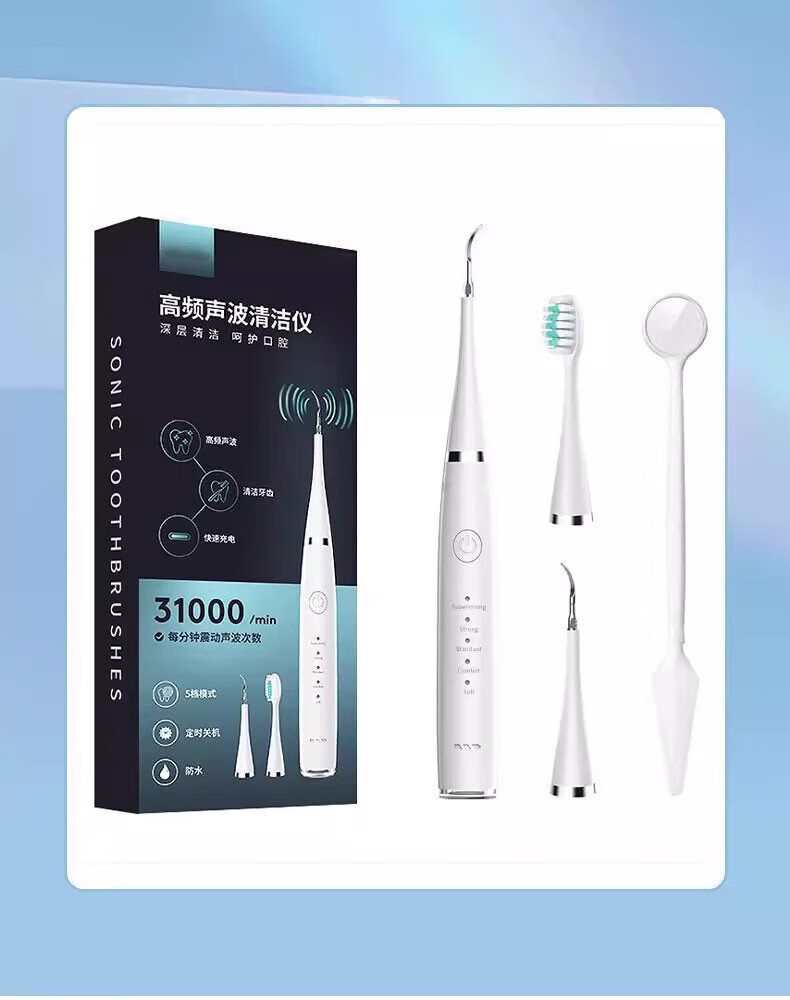 Xiaomi Baby Ultrasonic Teeth Cleaner Home Teeth Cleaner Dental Calculus Portable Cleaning Tooth Stain Tea Stains Dirt Calculus Artifact Flusher Tooth Cleaner Electric Toothbrush Haoyuebai 2 Brush Heads + Tip + Oral Mirror + USB Data Cable