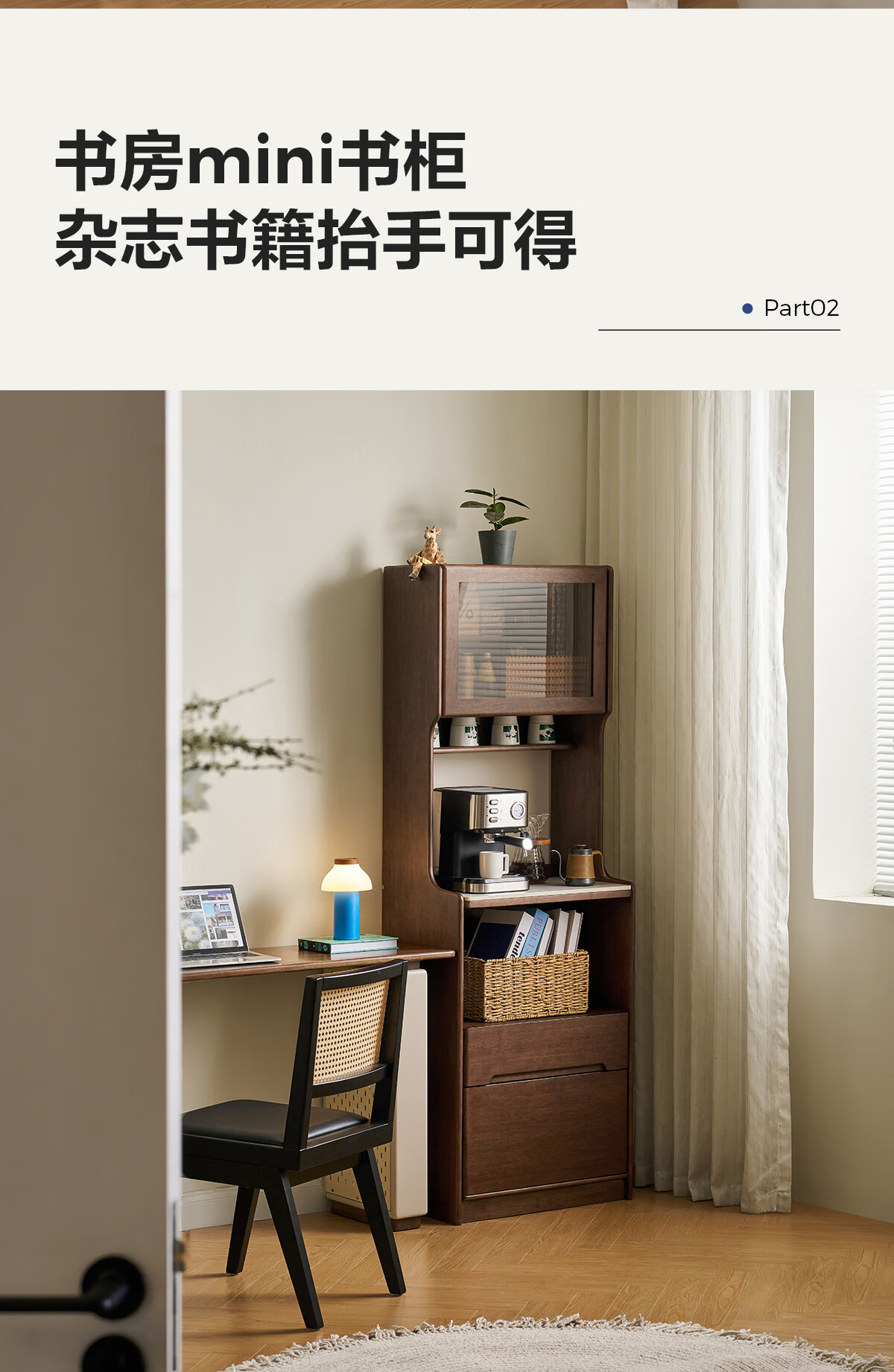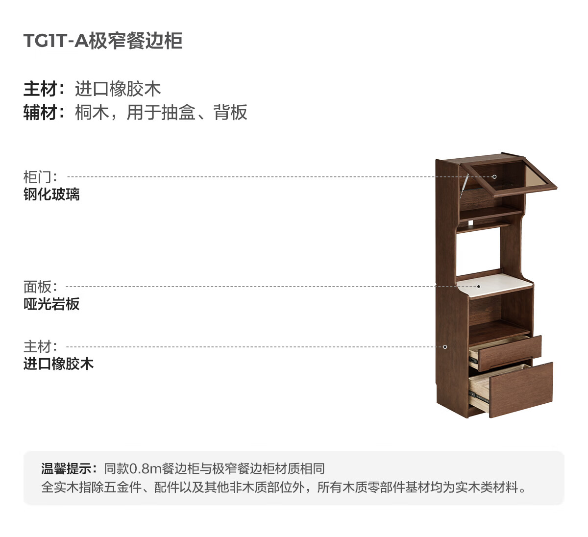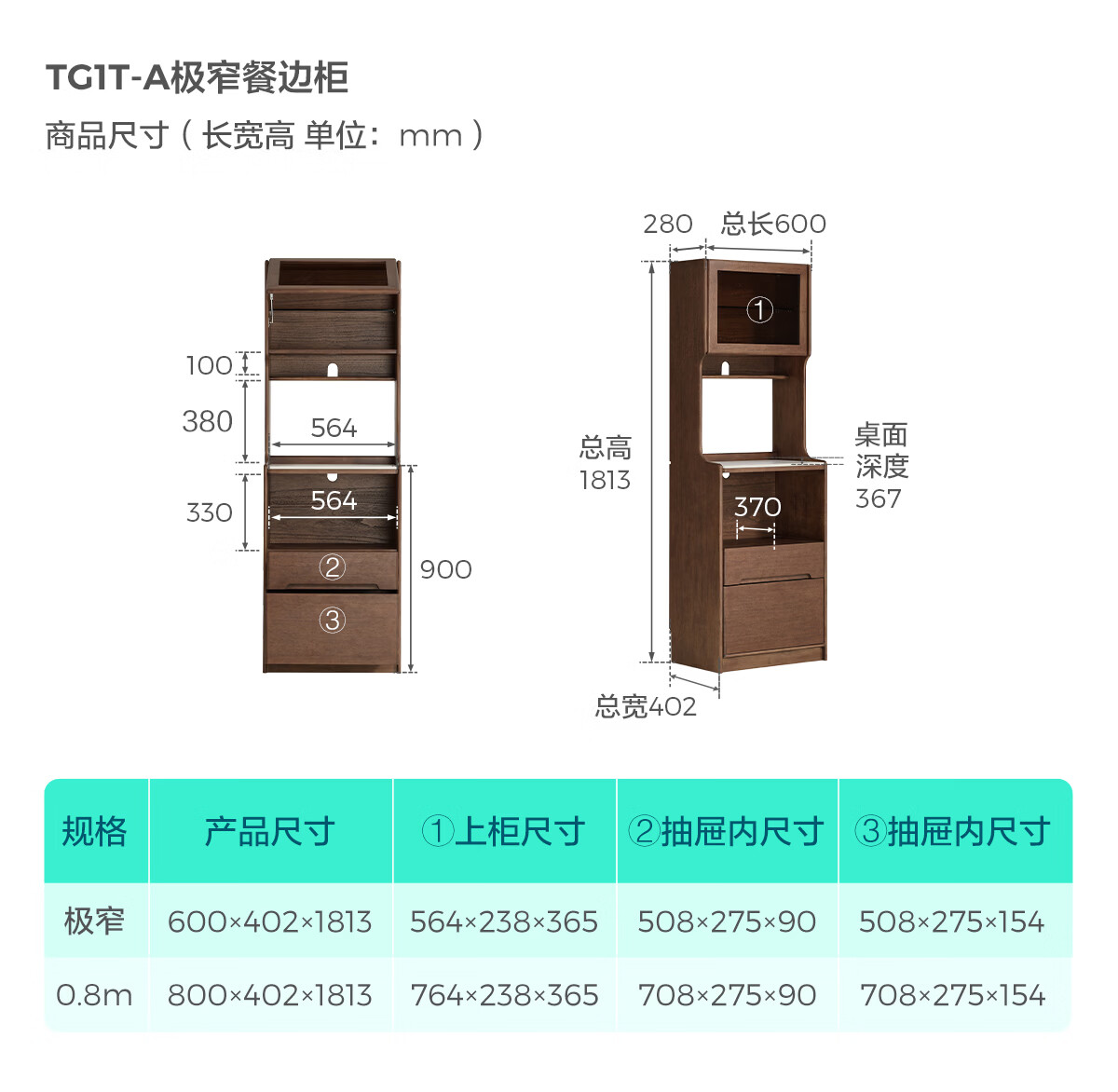 Lin's home solid wood sideboard against the wall integrated storage cabinet narrow tea cabinet living room storage wood industry film series TG1T 0.6m|walnut color extremely narrow solid wood sideboard