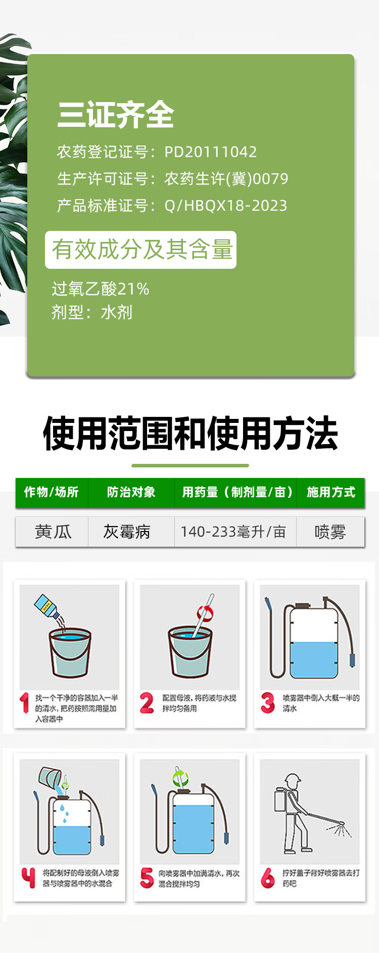 21% peracetic acid gray mold killer fungicide, genuine peracetic acid gray mold killer, 1000g*1 bottle, selected special offer