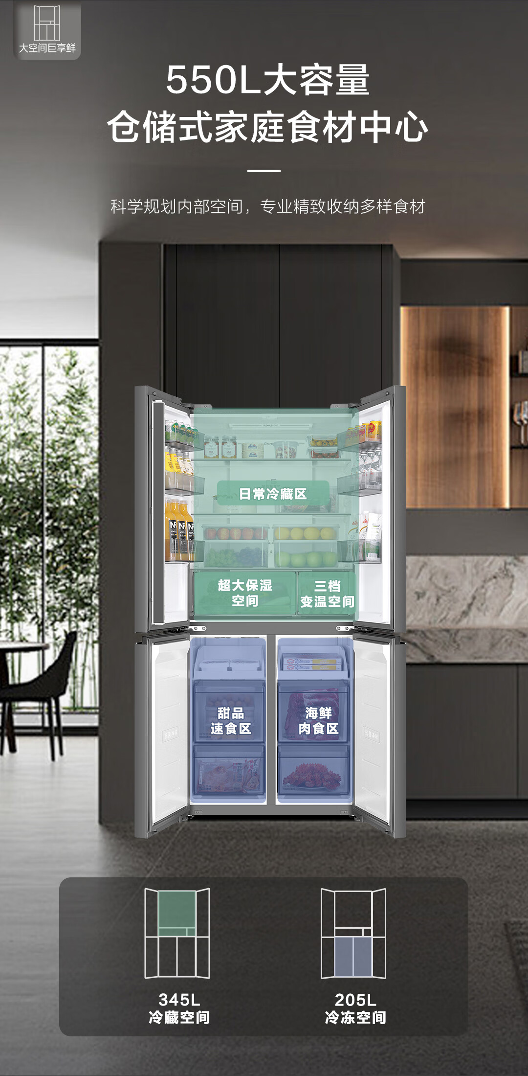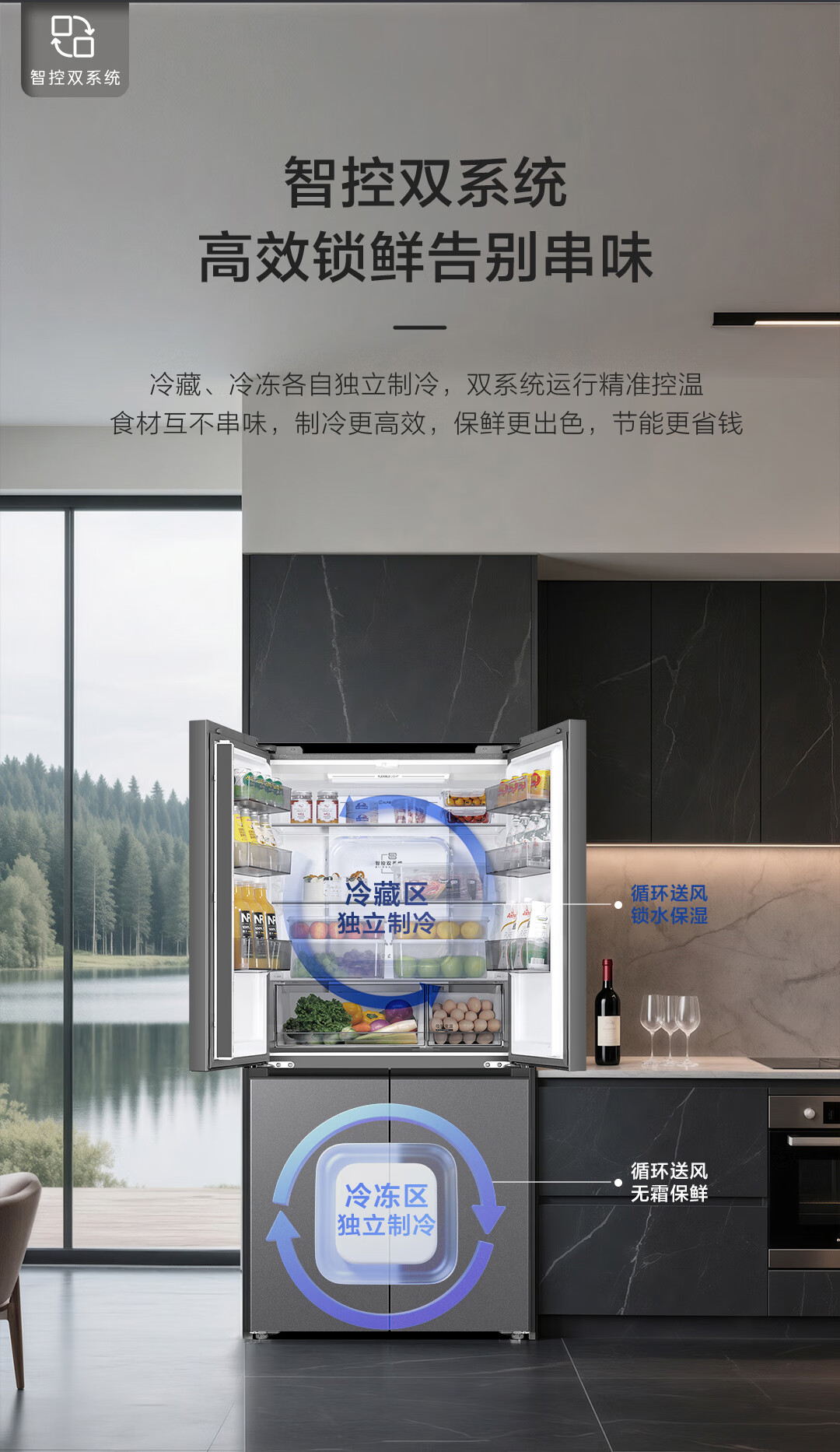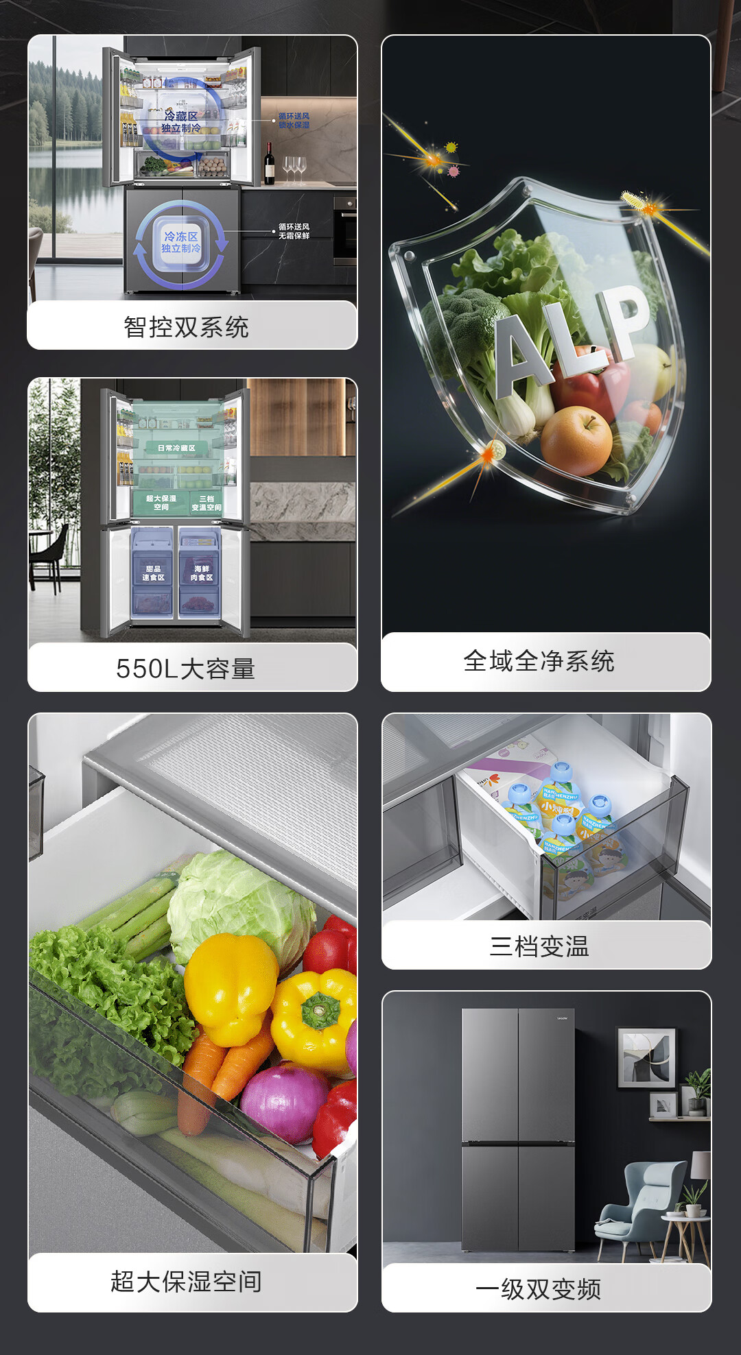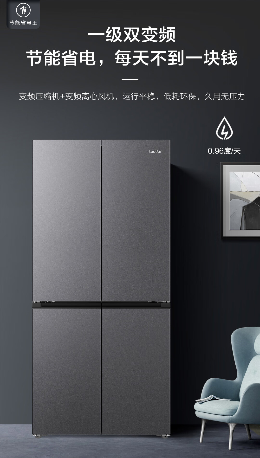海尔(Haier)冰箱2025年新品leader575双系统双蒸发器十字四开门新一级能效ALP超净五合一大容量家用电冰箱 【新品首发+双系统双循环+全域全净系统】