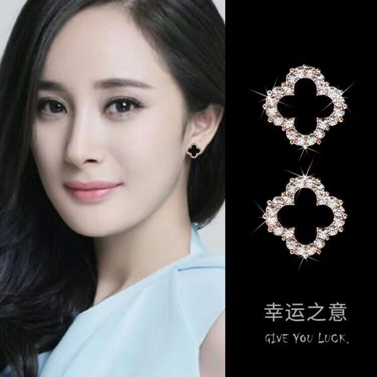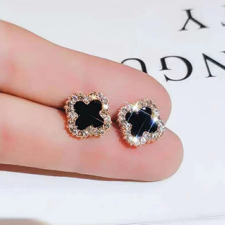Four-leaf clover earrings for women, elegant and elegant 2025 new popular ear jewelry, high-end light luxury earrings 1 black four-leaf clover earrings