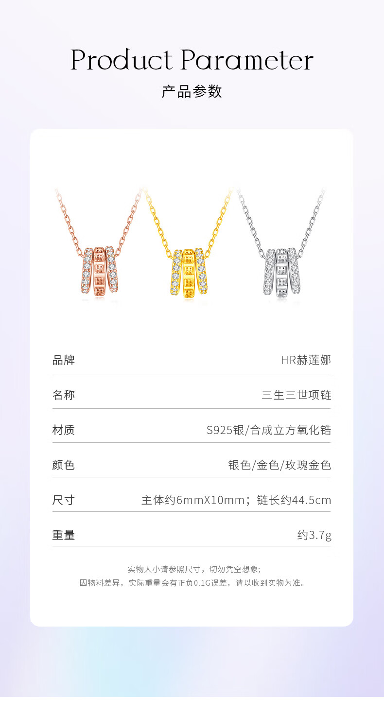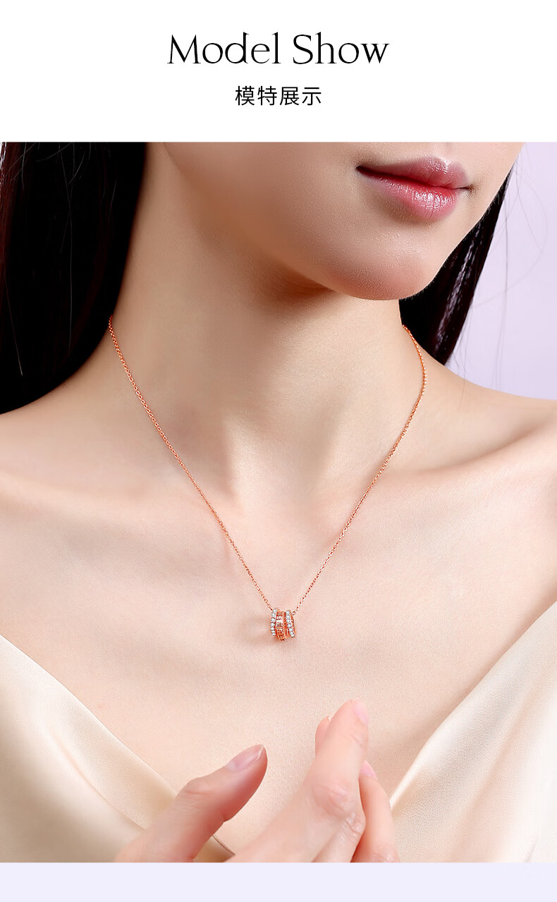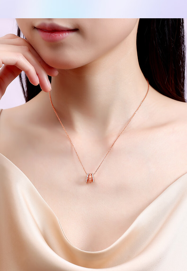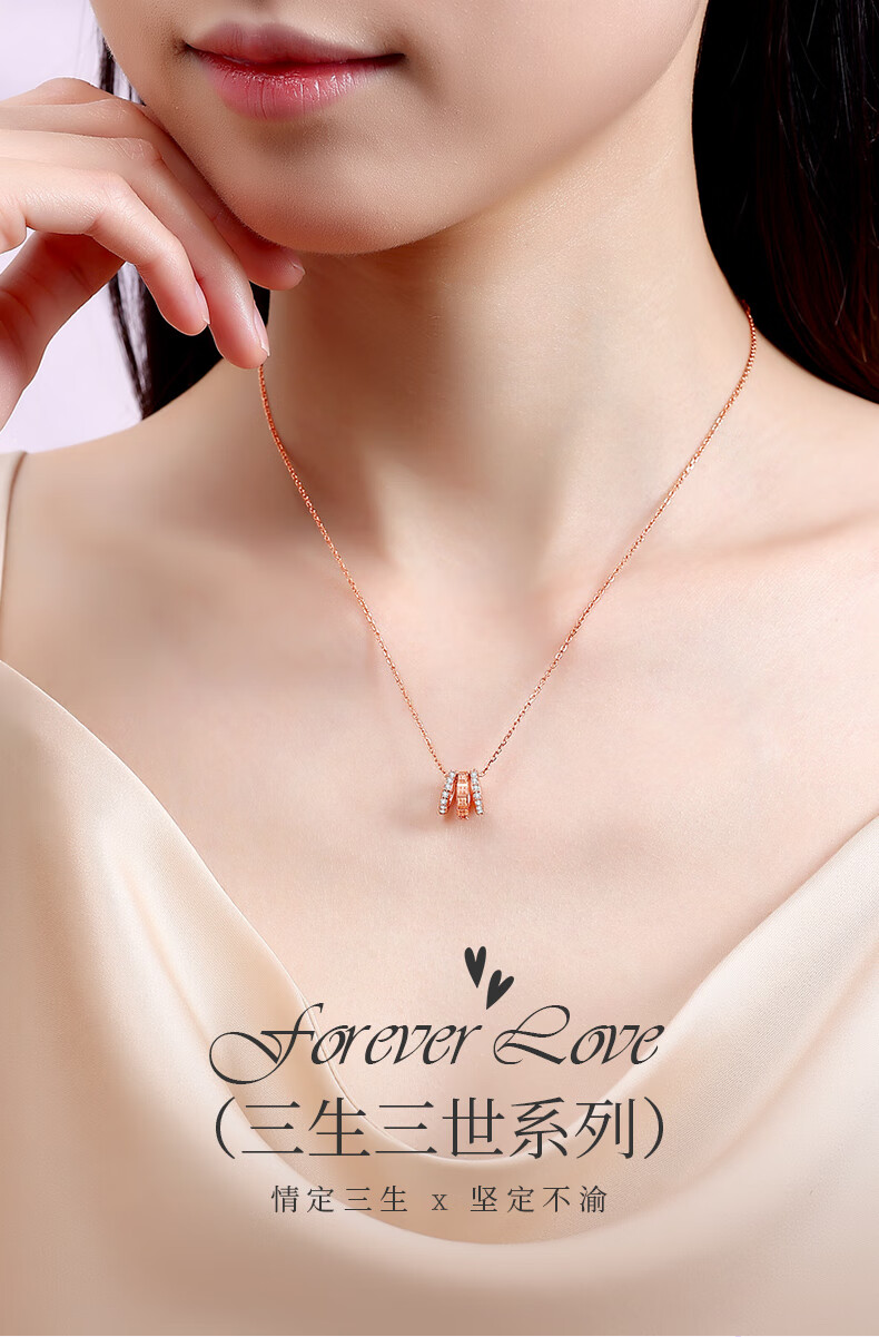 HR Helena Light Luxury Women's Three Lives Three Worlds Necklace Fashion Jewelry Clavicle Chain Chinese Valentine's Day Gift for Girlfriend Three Lives Three Worlds Necklace - Rose Gold