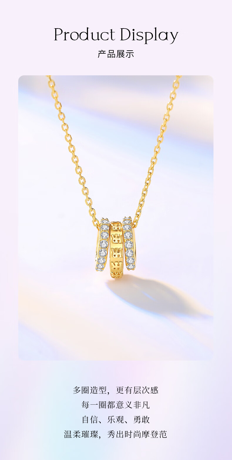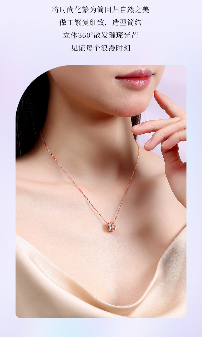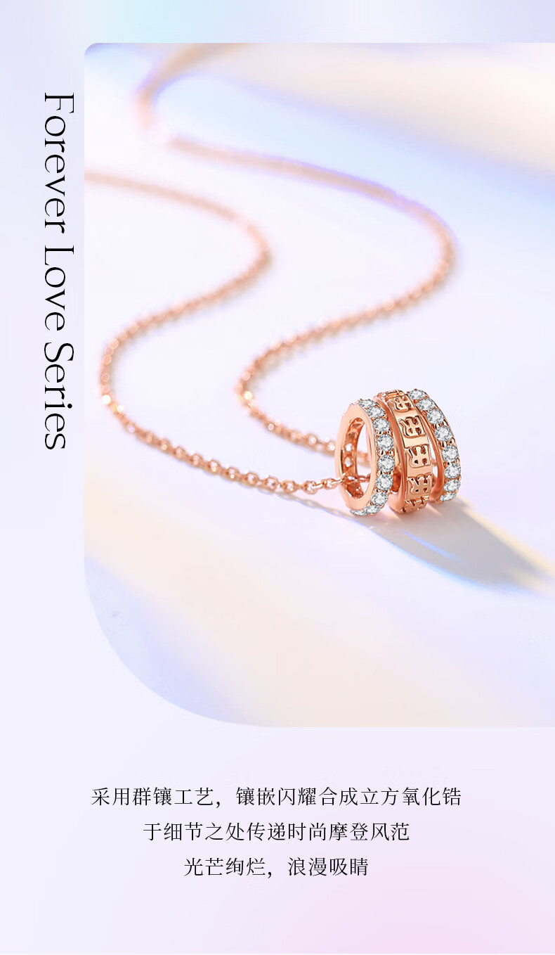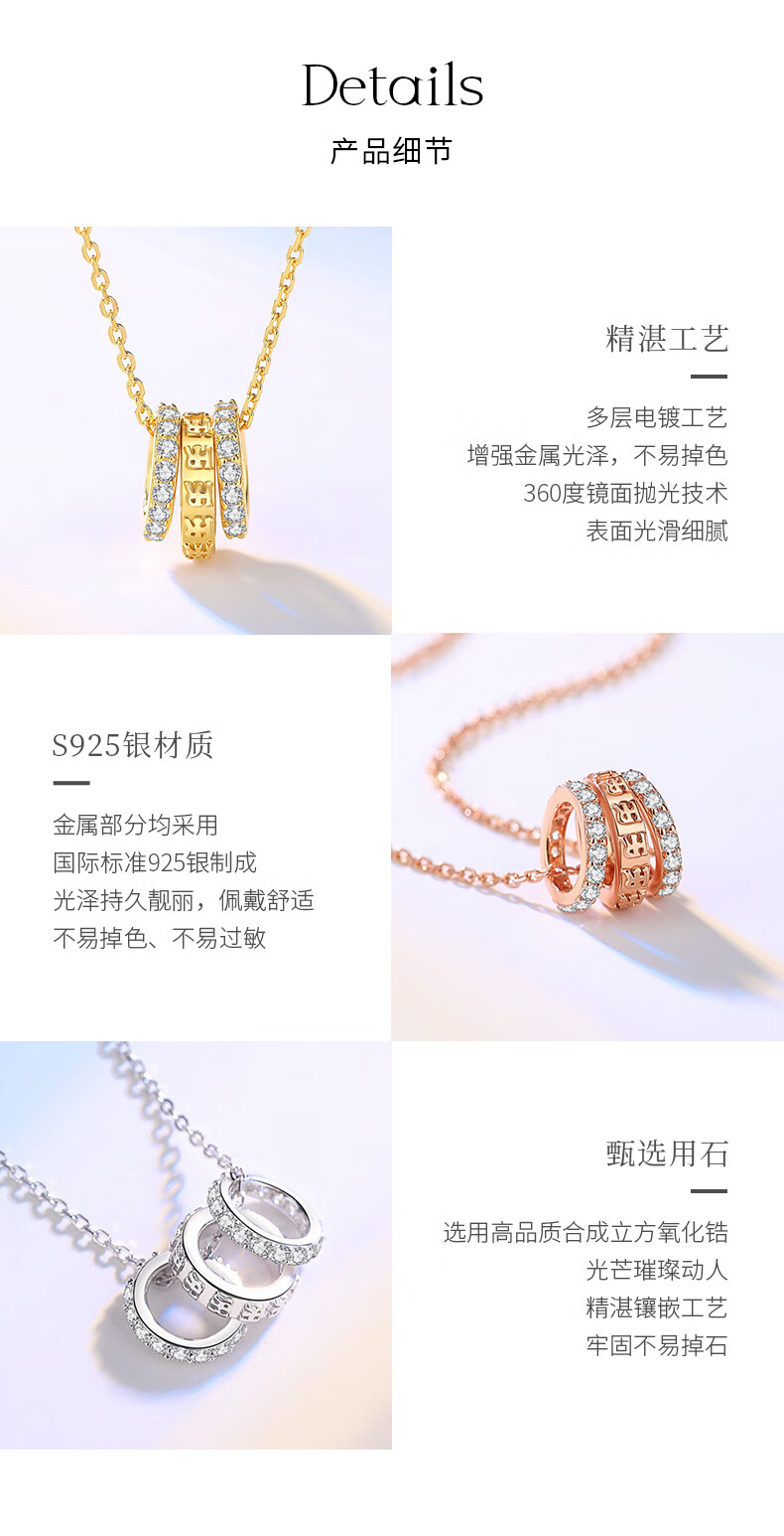 HR Helena Light Luxury Women's Three Lives Three Worlds Necklace Fashion Jewelry Clavicle Chain Chinese Valentine's Day Gift for Girlfriend Three Lives Three Worlds Necklace - Rose Gold