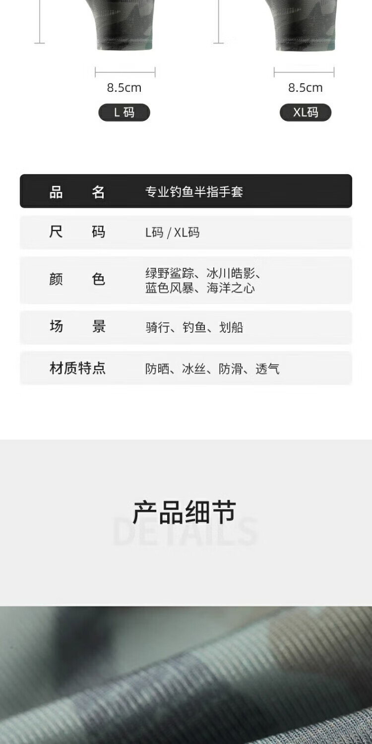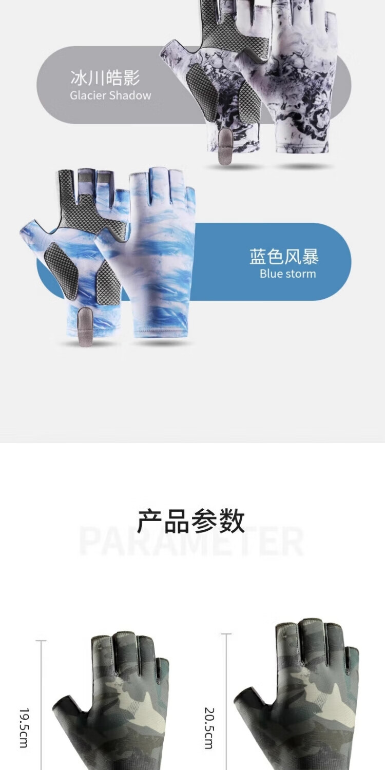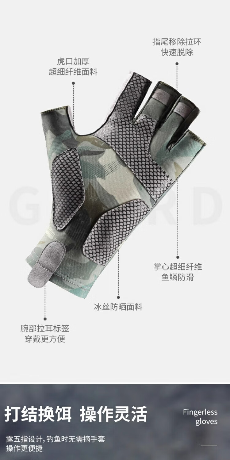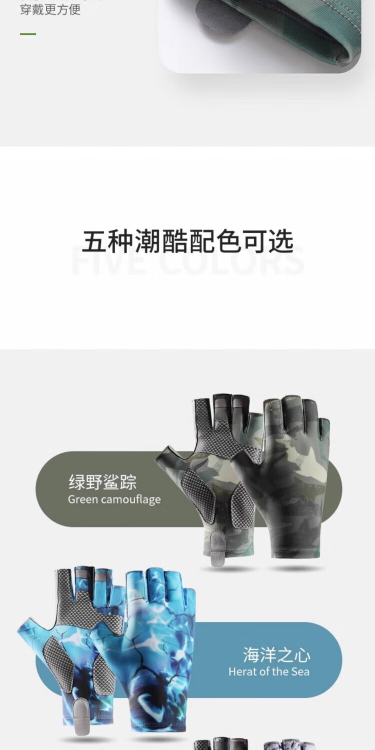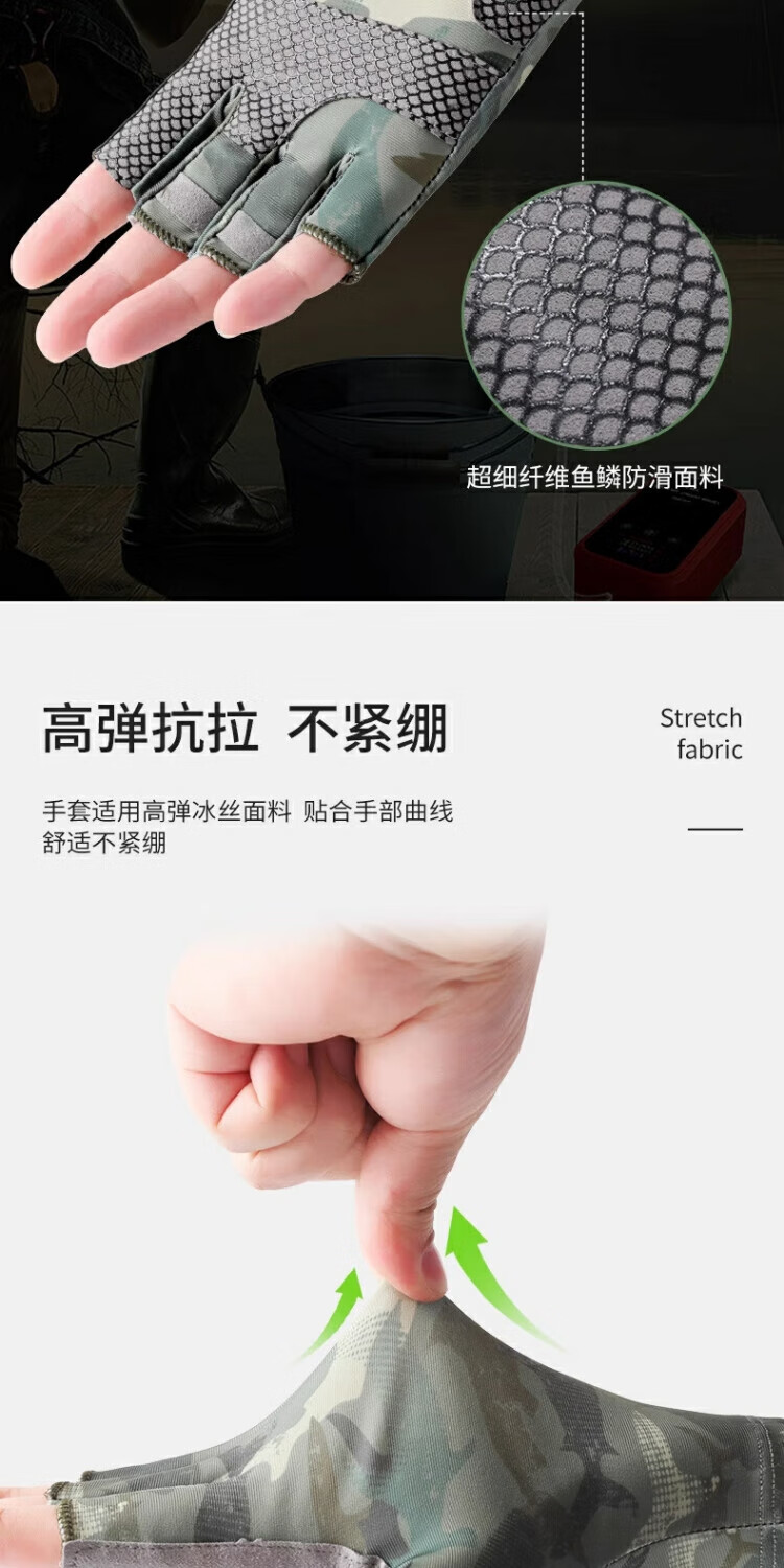 Sumu Bai Fishing Gloves, Stab-proof, Summer Special, Sunscreen Lure, Finger-proof, Cut-proof, Anti-slip, Ice Silk Half Finger Gloves for Sea Fishing, Green Shark Trail L