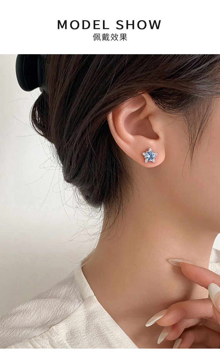 Xiangnan 925 sterling silver five-pointed star earrings for women ins niche light luxury 2025 new high-end earrings earrings fresh and sweet 925 silver five-pointed star earrings (pair)