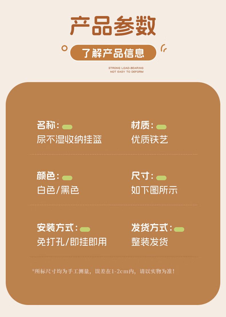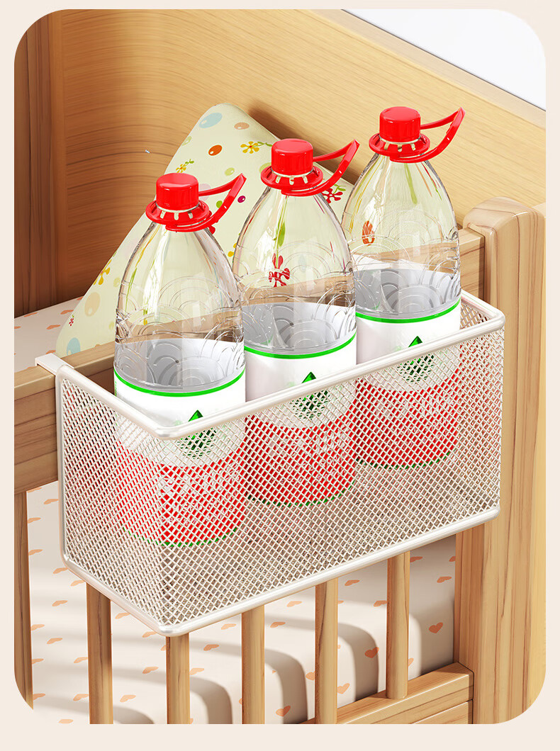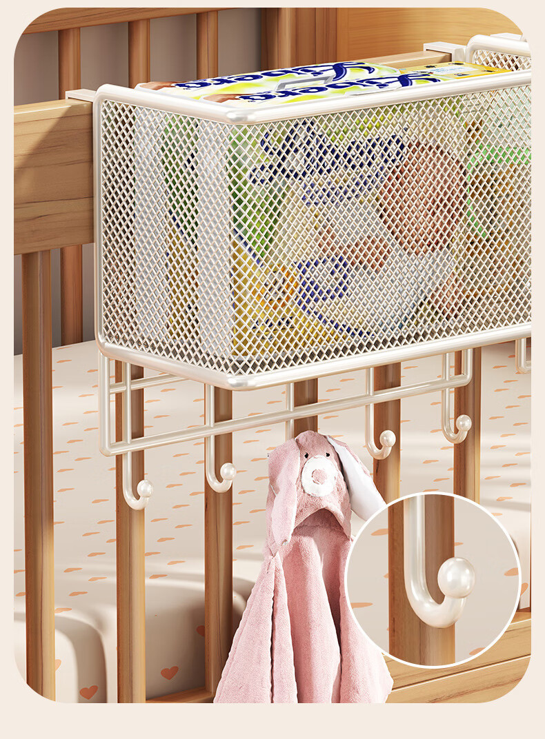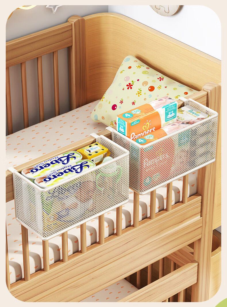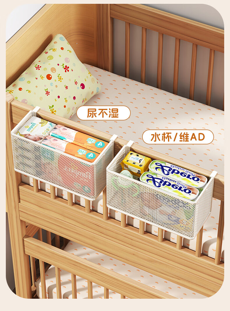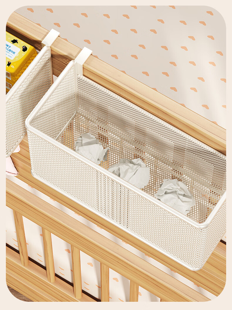 Lin's baby crib bedside storage rack hanging basket fence bedside storage rack hanging bag storage basket baby diaper storage box white large hookless
