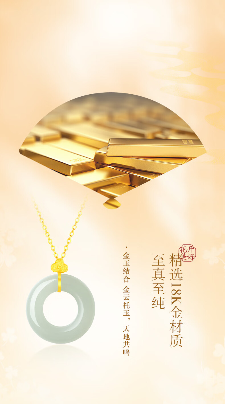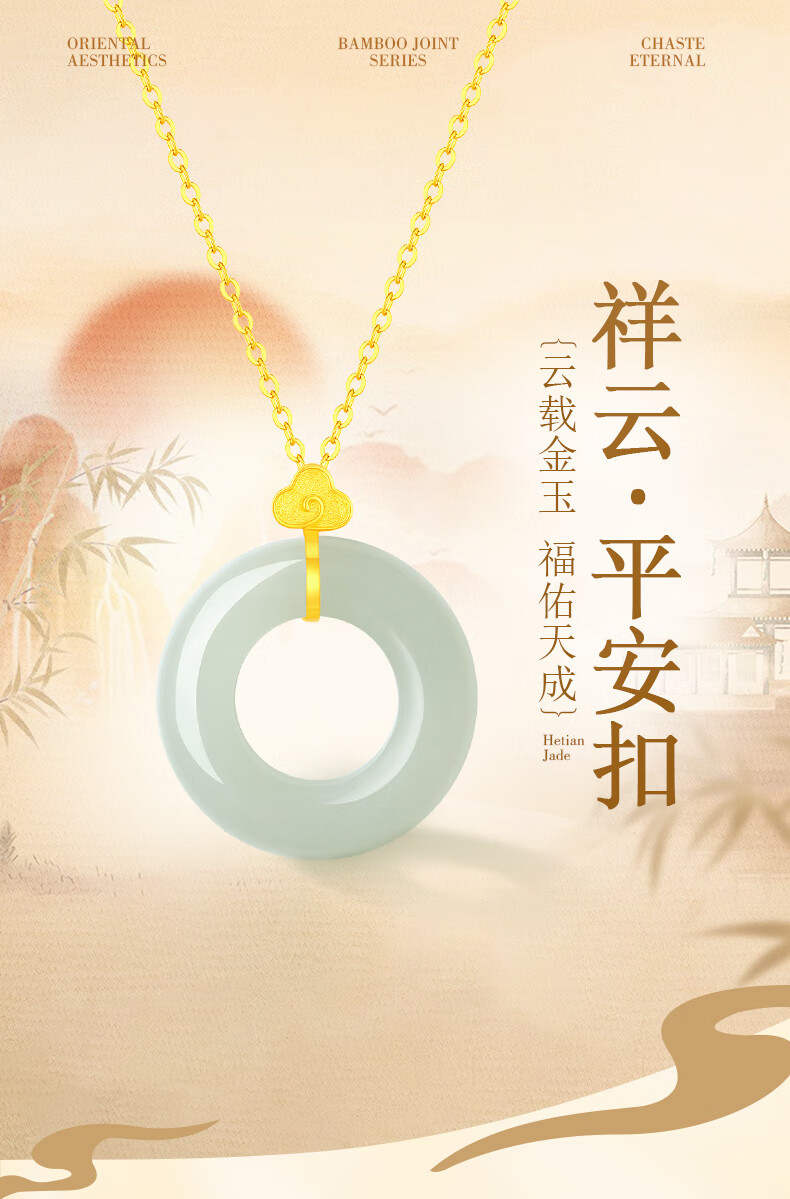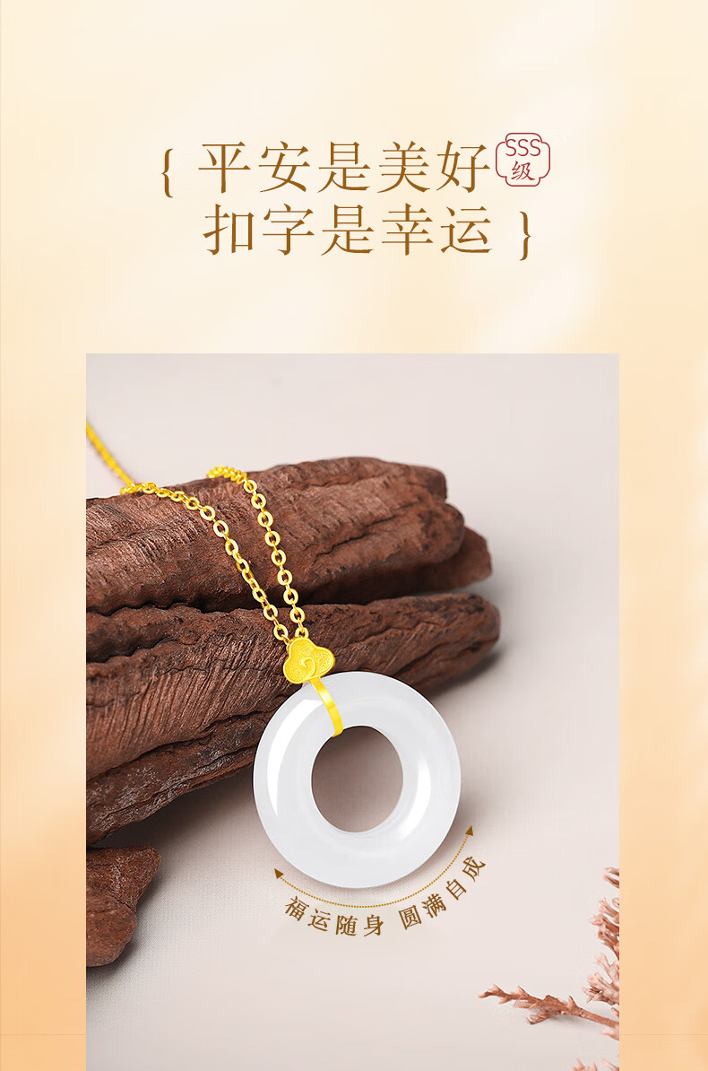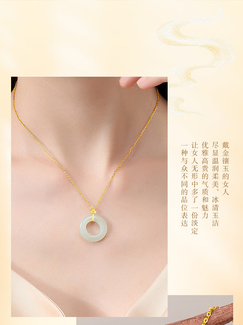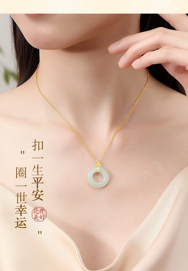 China Gold (CHINA GOLD) 18k gold necklace female Xiangyun gold inlaid with Hetian jade safety buckle pendant birthday gift for girlfriend 18K gold Xiangyun safety buckle set chain souvenir