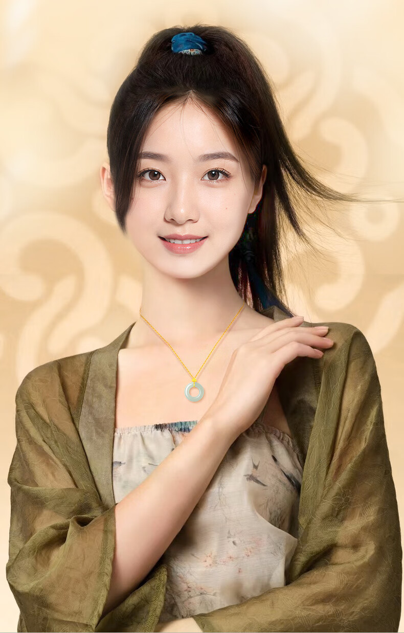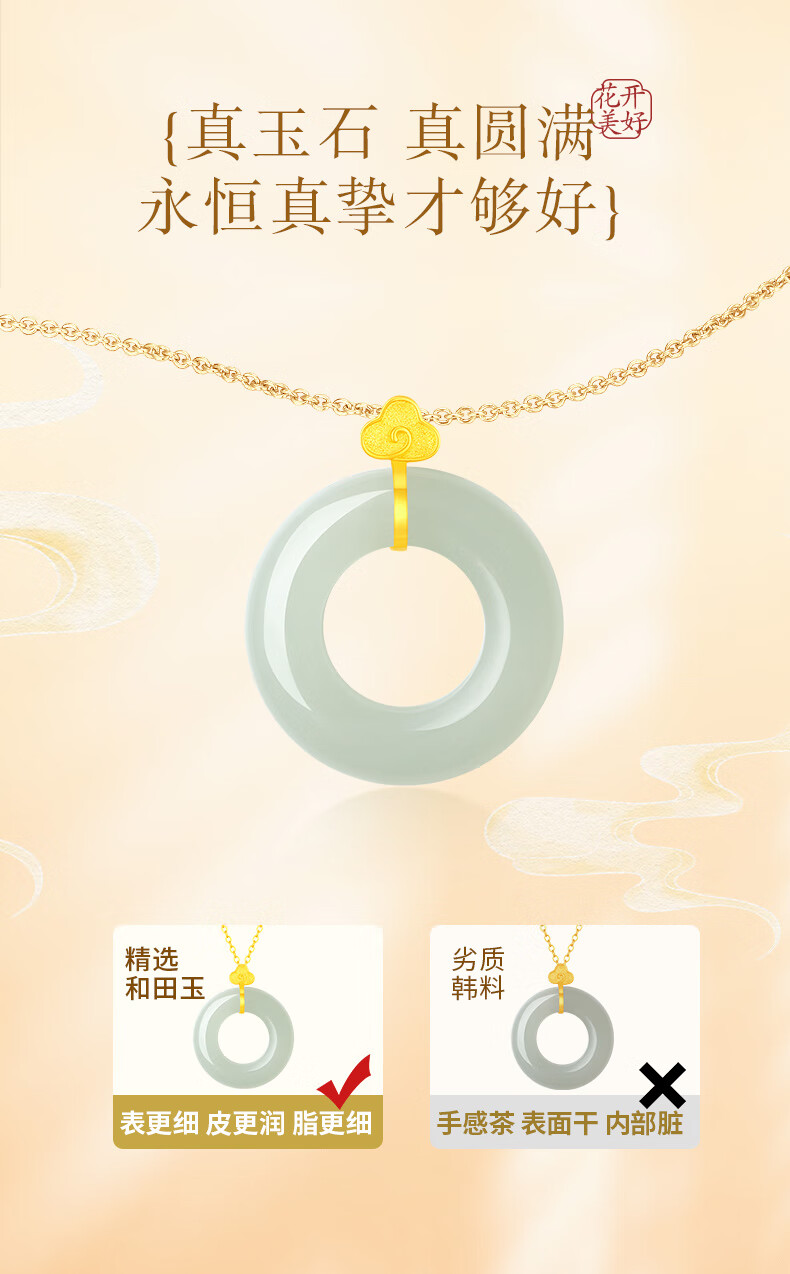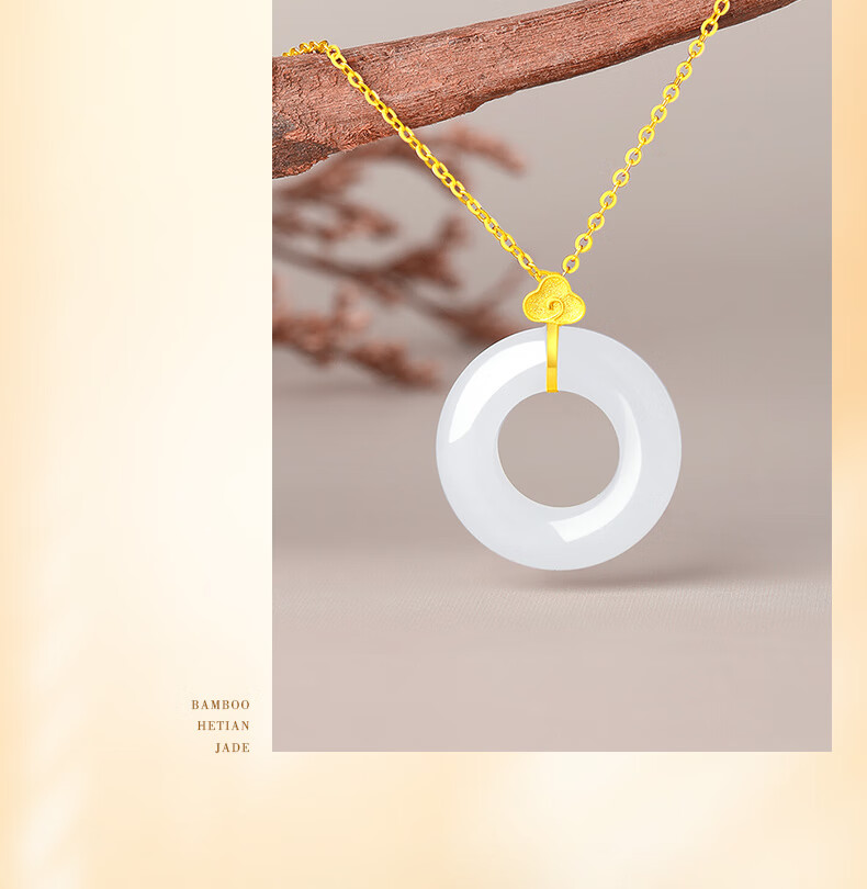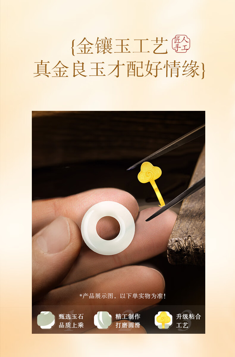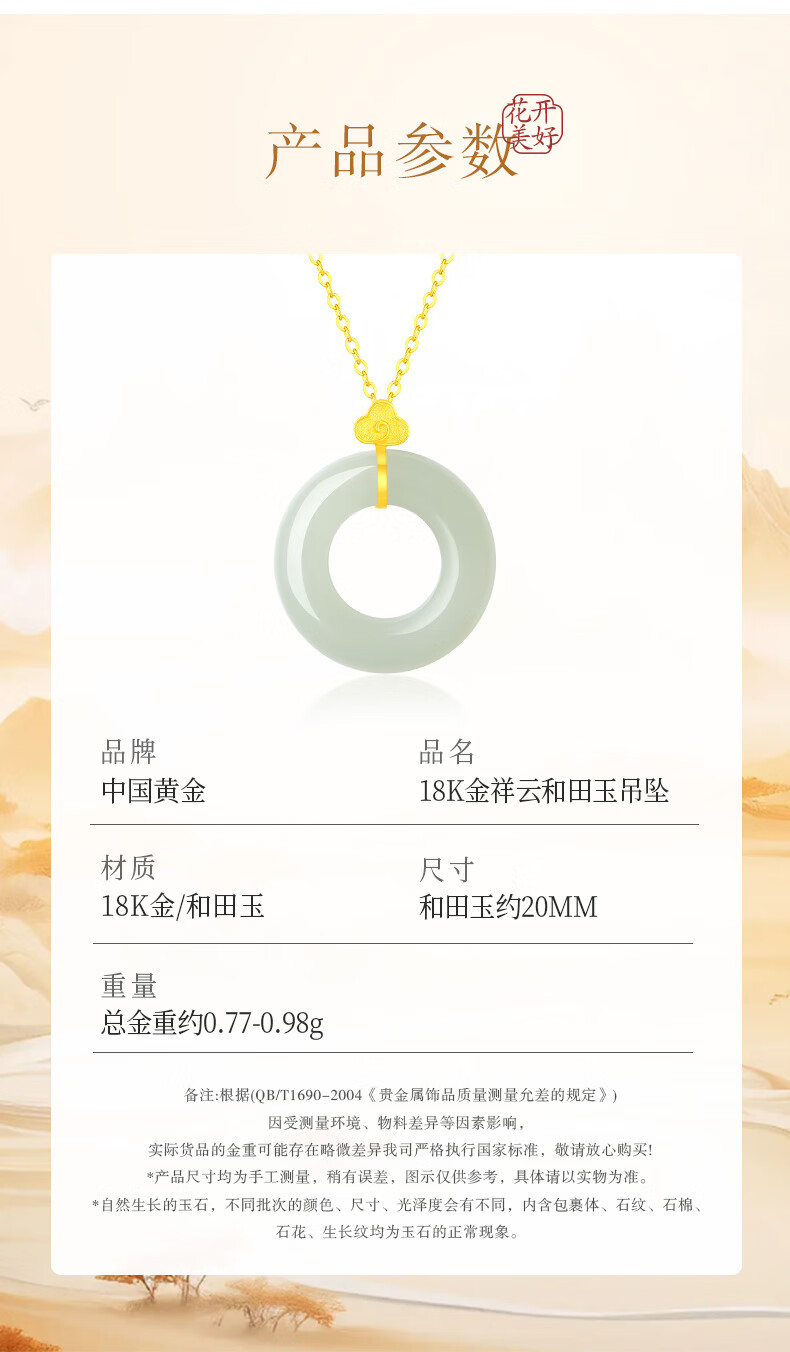 China Gold (CHINA GOLD) 18k gold necklace female Xiangyun gold inlaid with Hetian jade safety buckle pendant birthday gift for girlfriend 18K gold Xiangyun safety buckle set chain souvenir