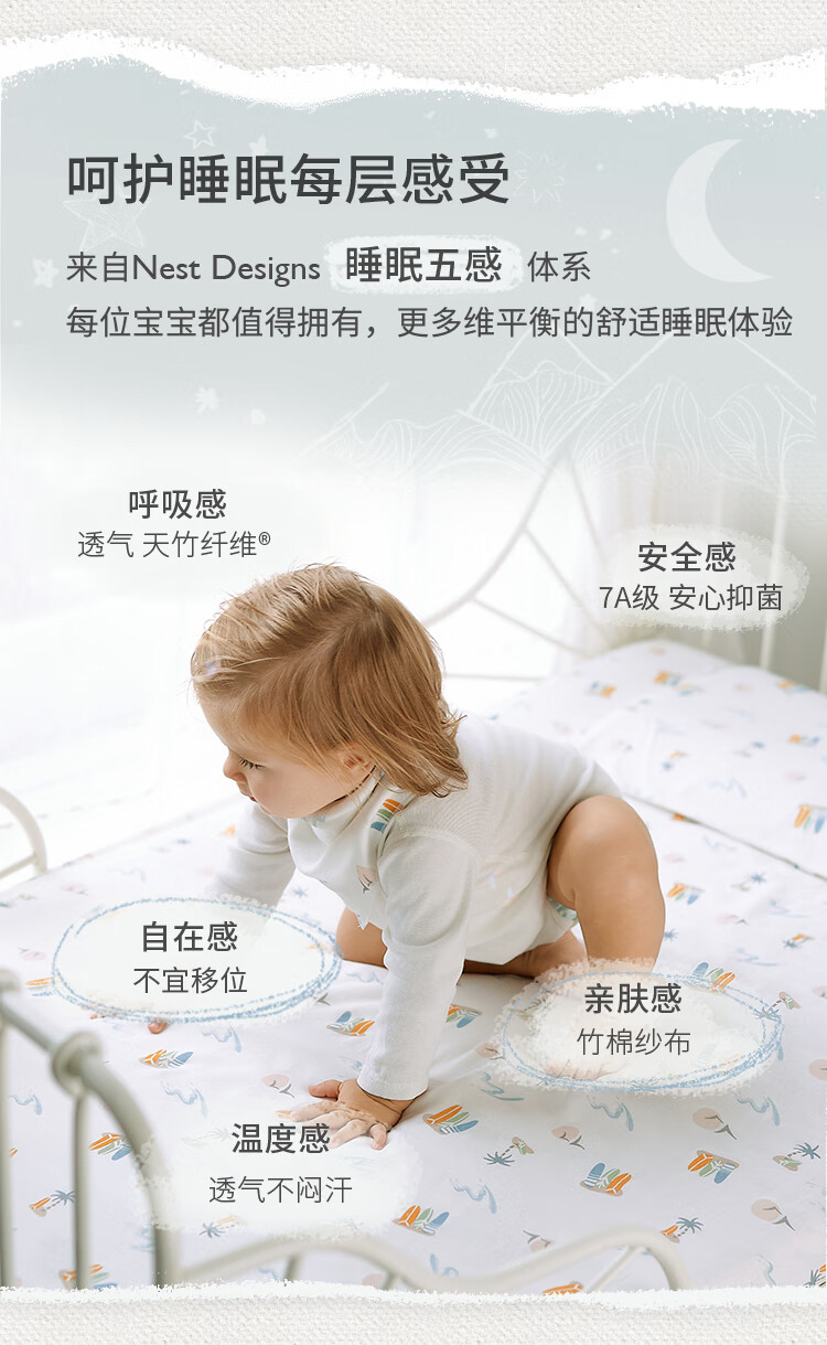 Nest designs children's fitted sheets newborn baby bedding baby fitted sheets baby bedspread sheets bamboo cotton gauze Chuxue-S size (132*71cm) bamboo cotton elastic