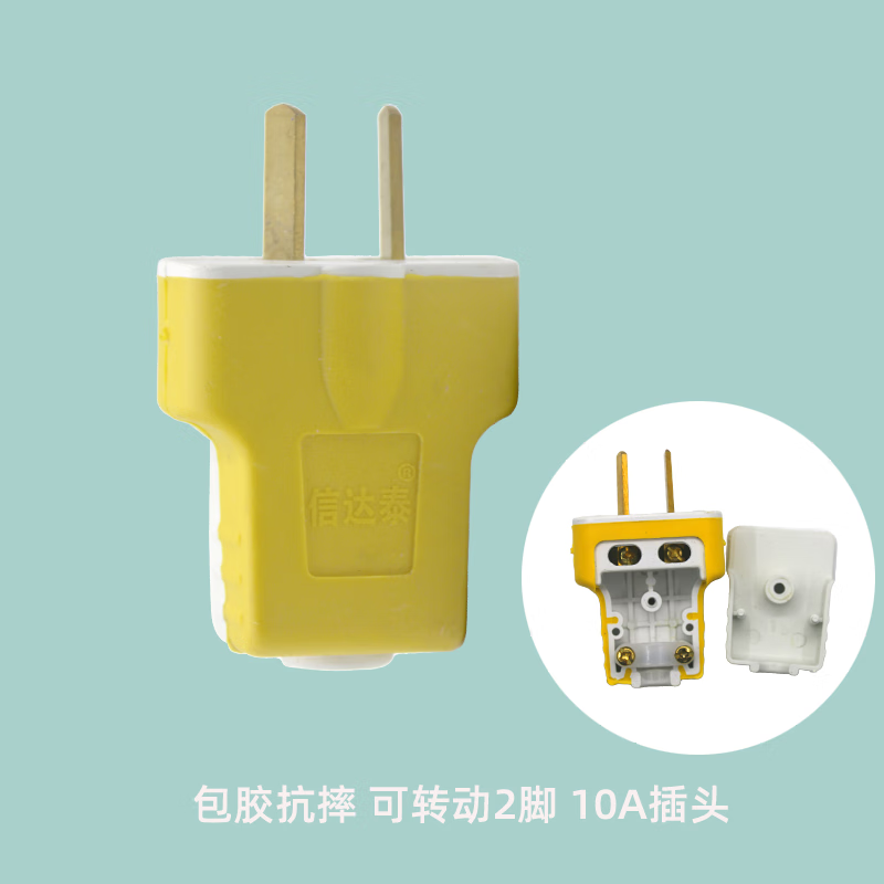 Shantou Lincun 2-hole 10A plug detachable 2 two-pin hole level single-phase 250v 10A without wire power plug 10A plug (yellow and white rubber-coated anti-fall plug)