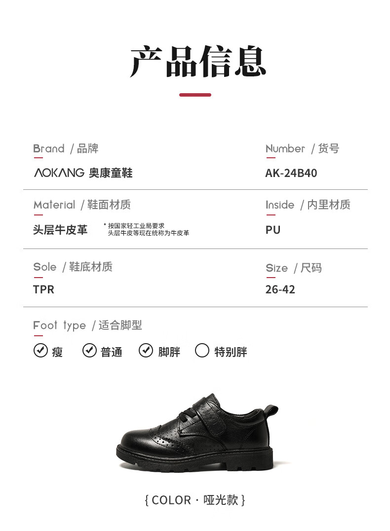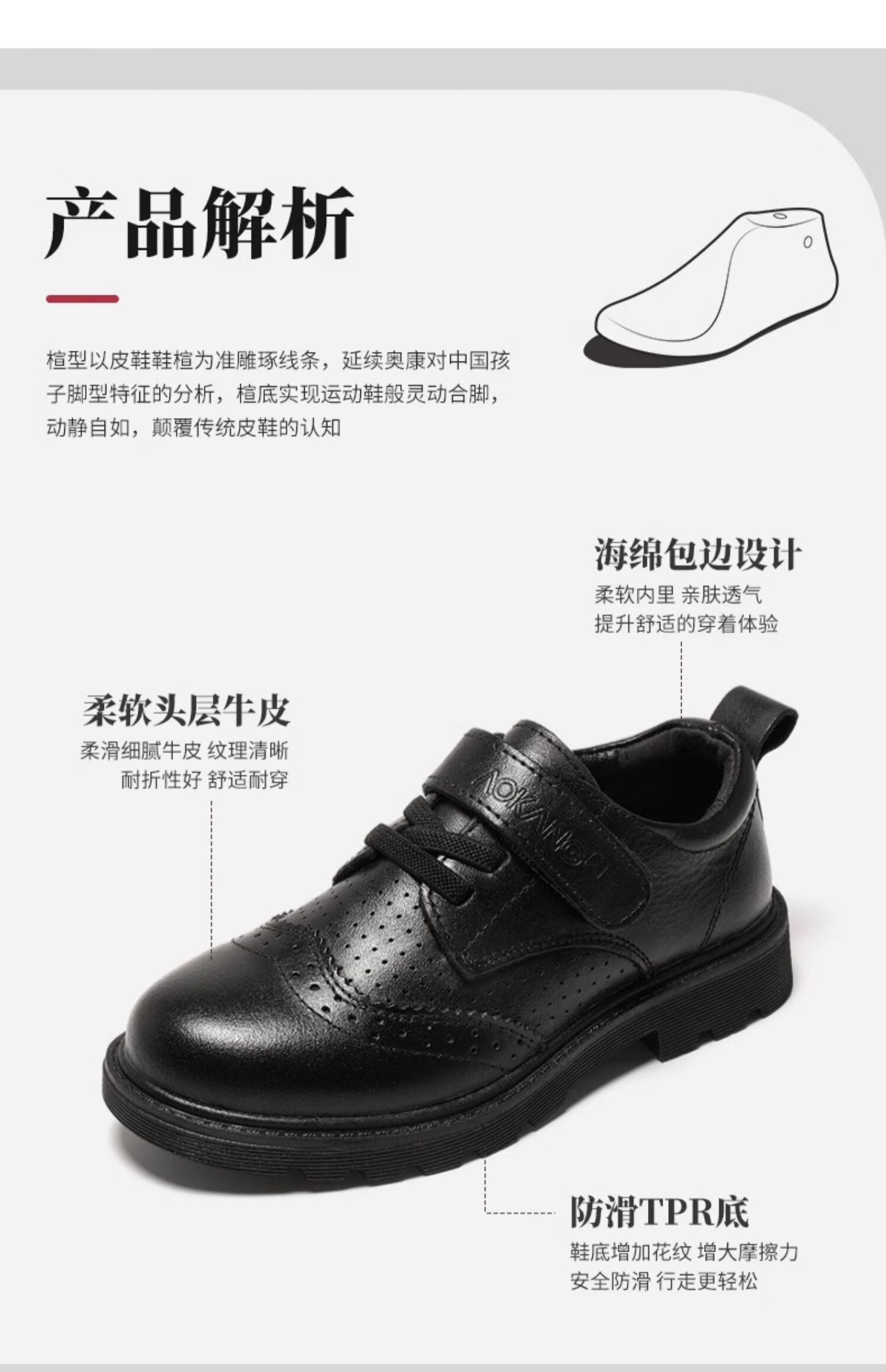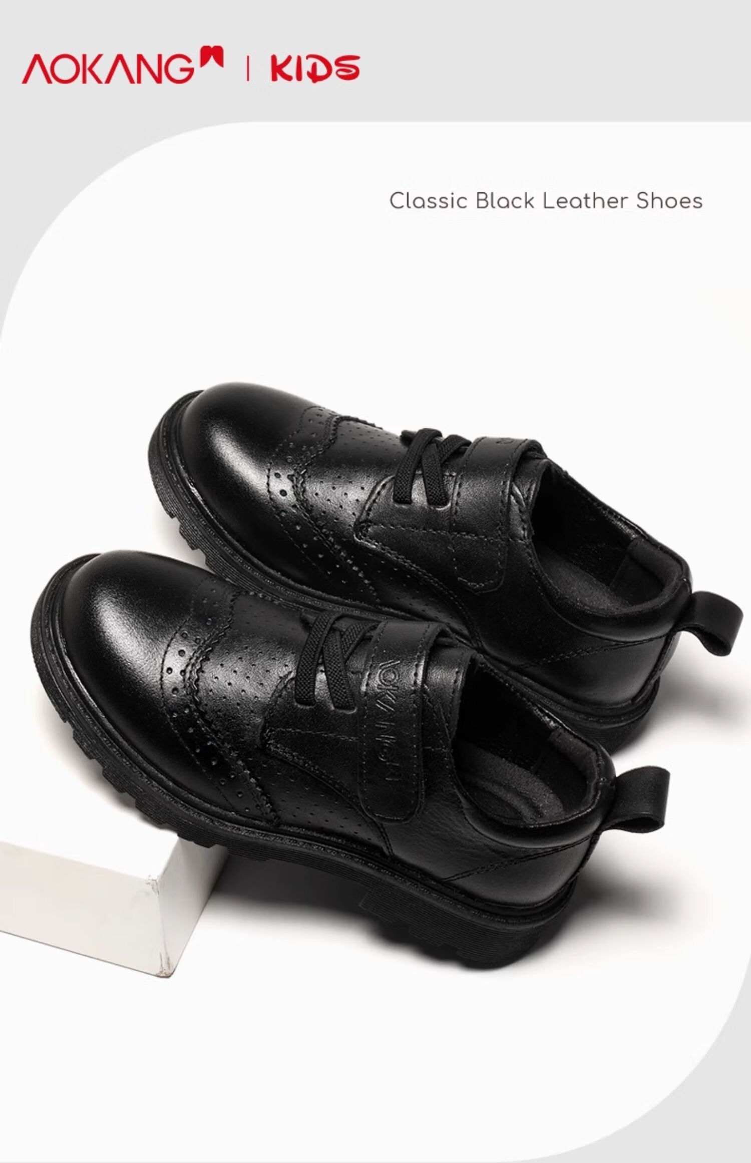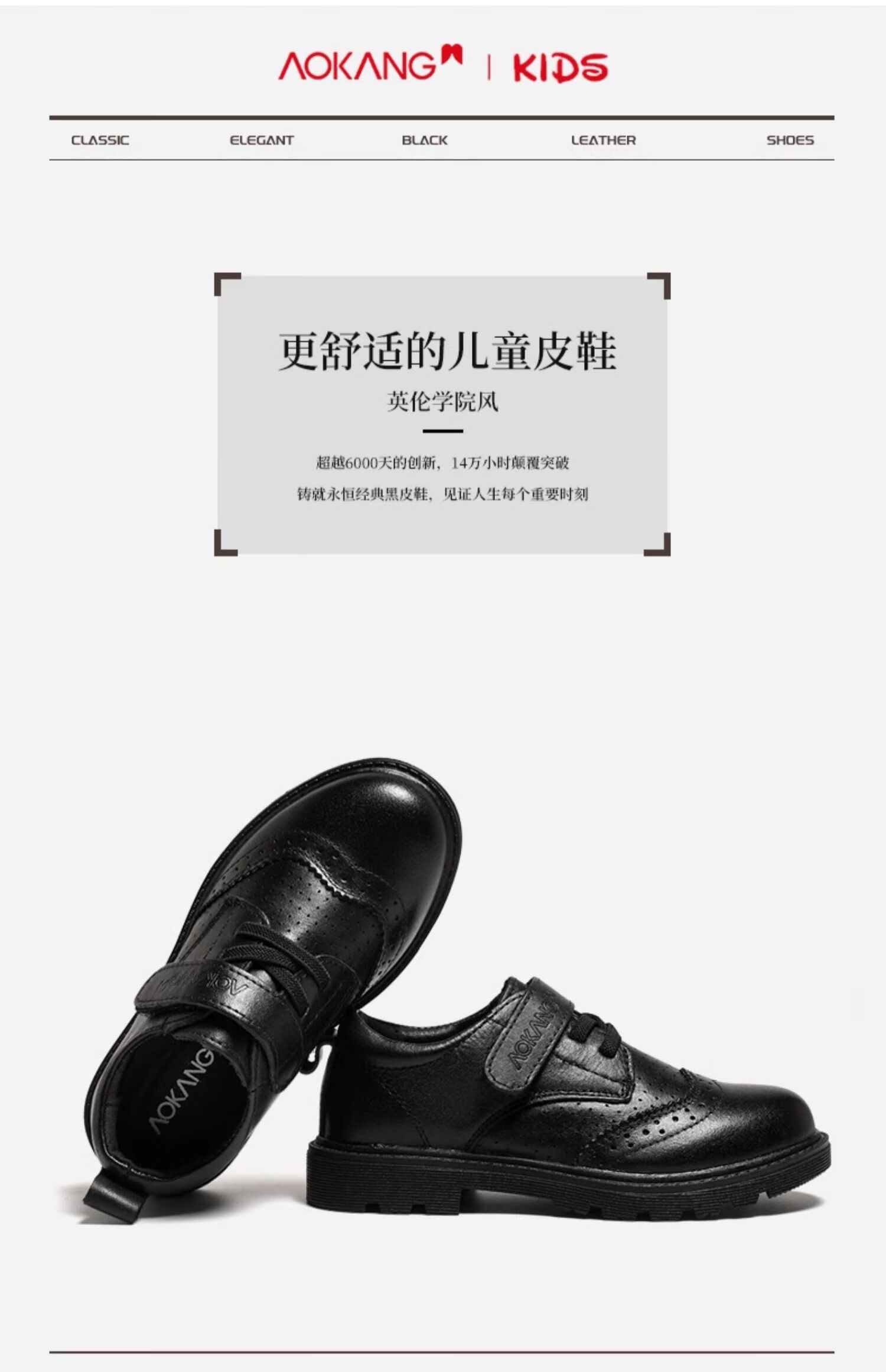 Aokang Aokang first layer cowhide leather shoes boys suit etiquette flower girl black student small leather shoes children's performance shoes black size 34 inner length about 22.4cm