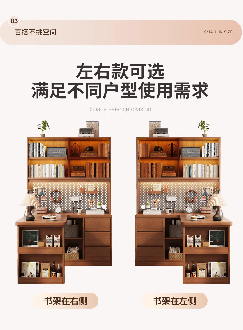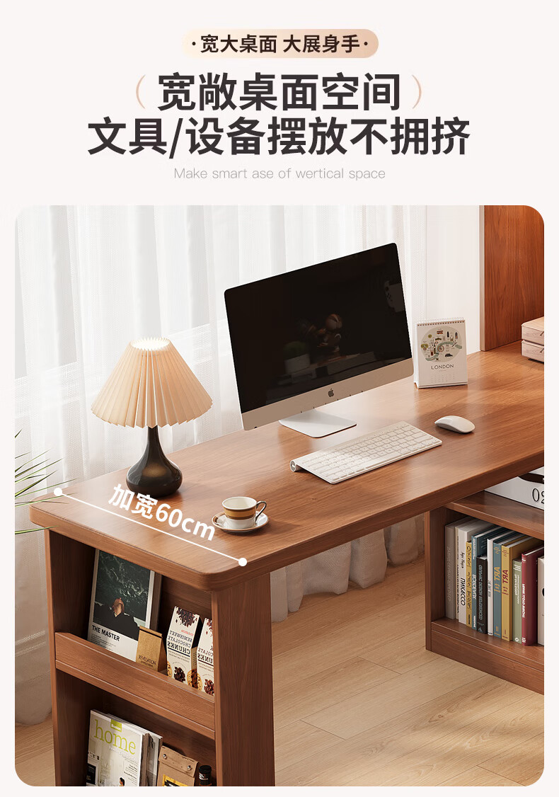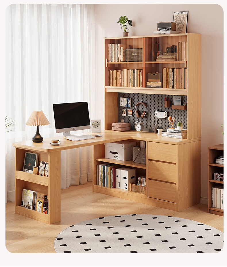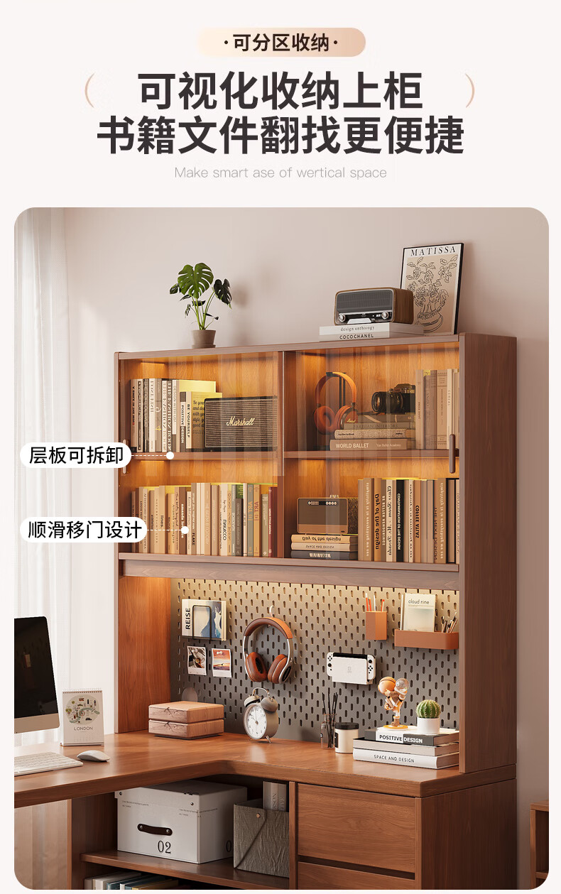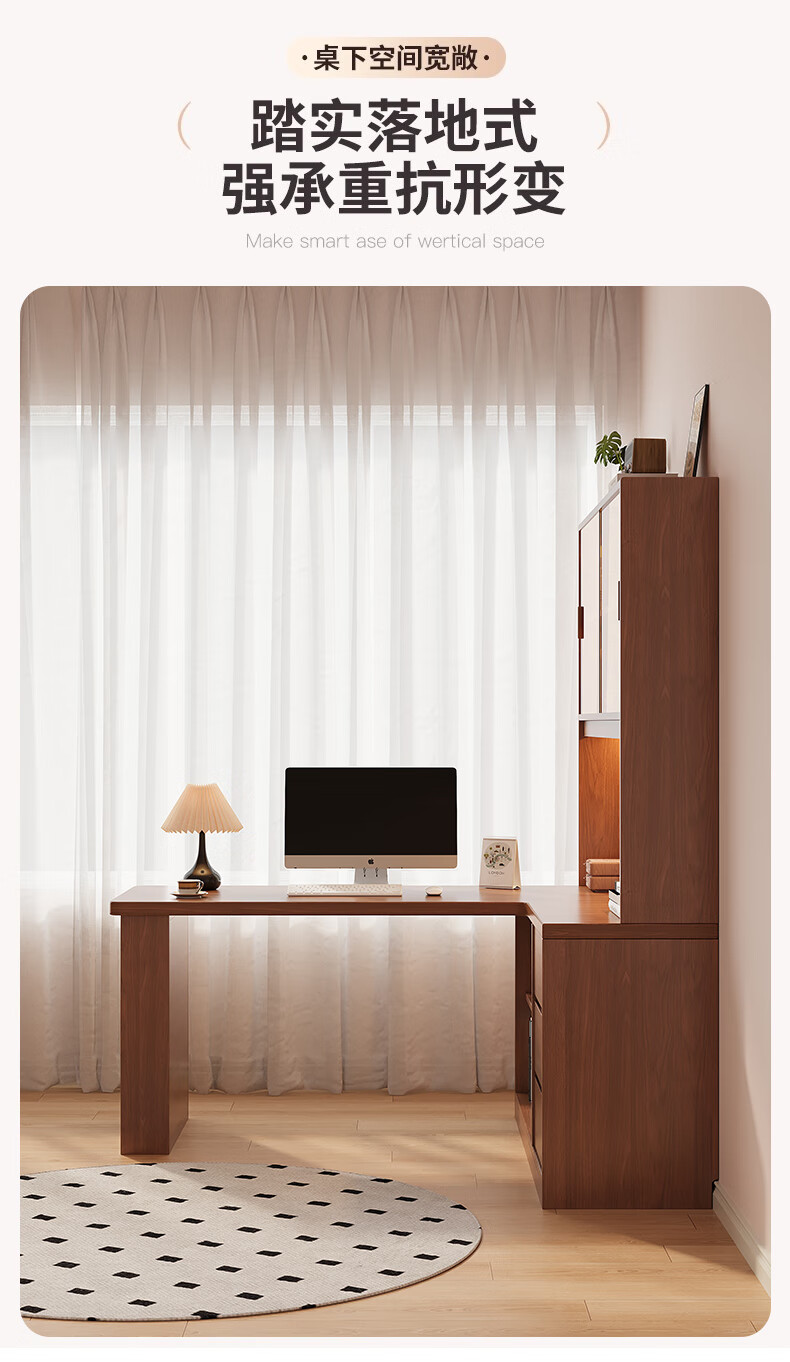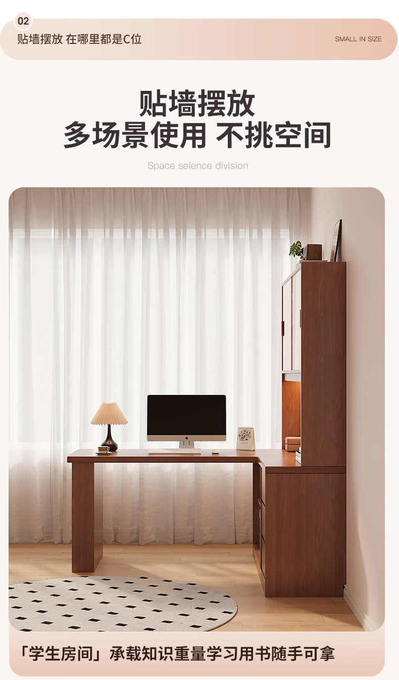 Yimuju solid wood corner desk bookcase bookshelf integrated study desk computer desk writing desk desk desk walnut color 160*100*195cm right bookshelf