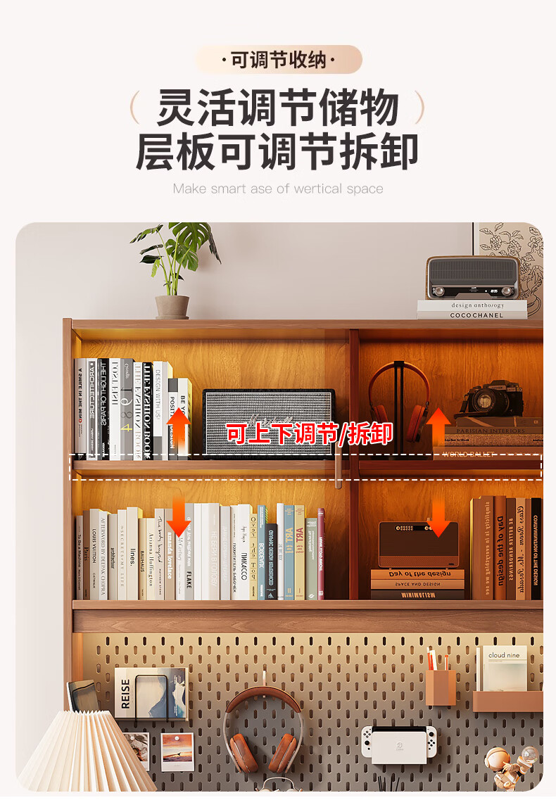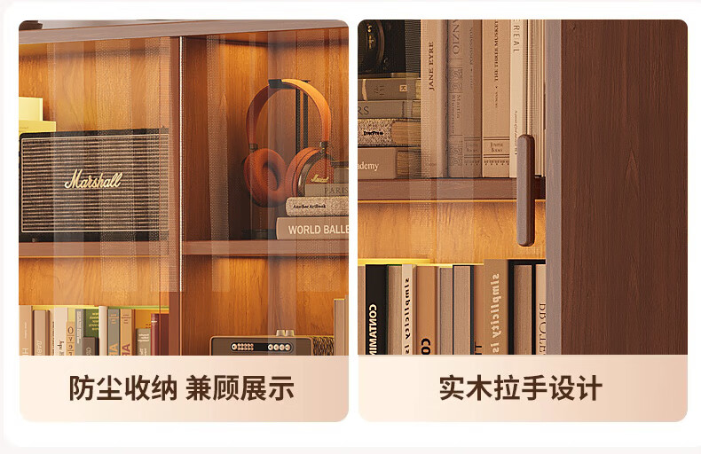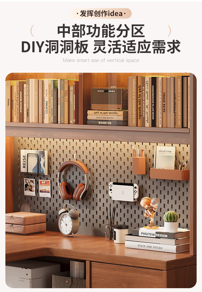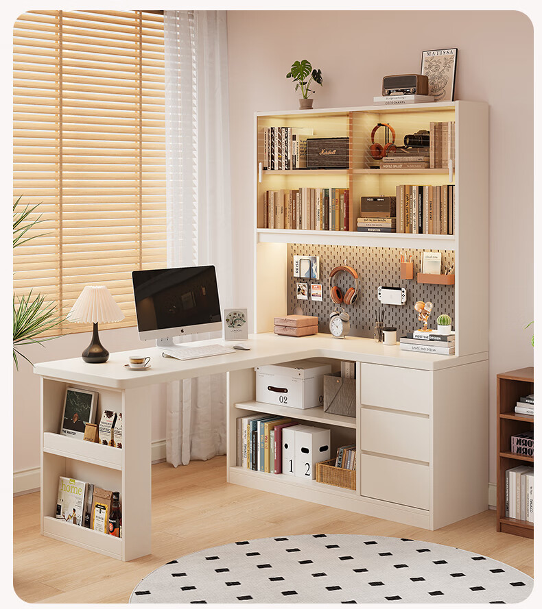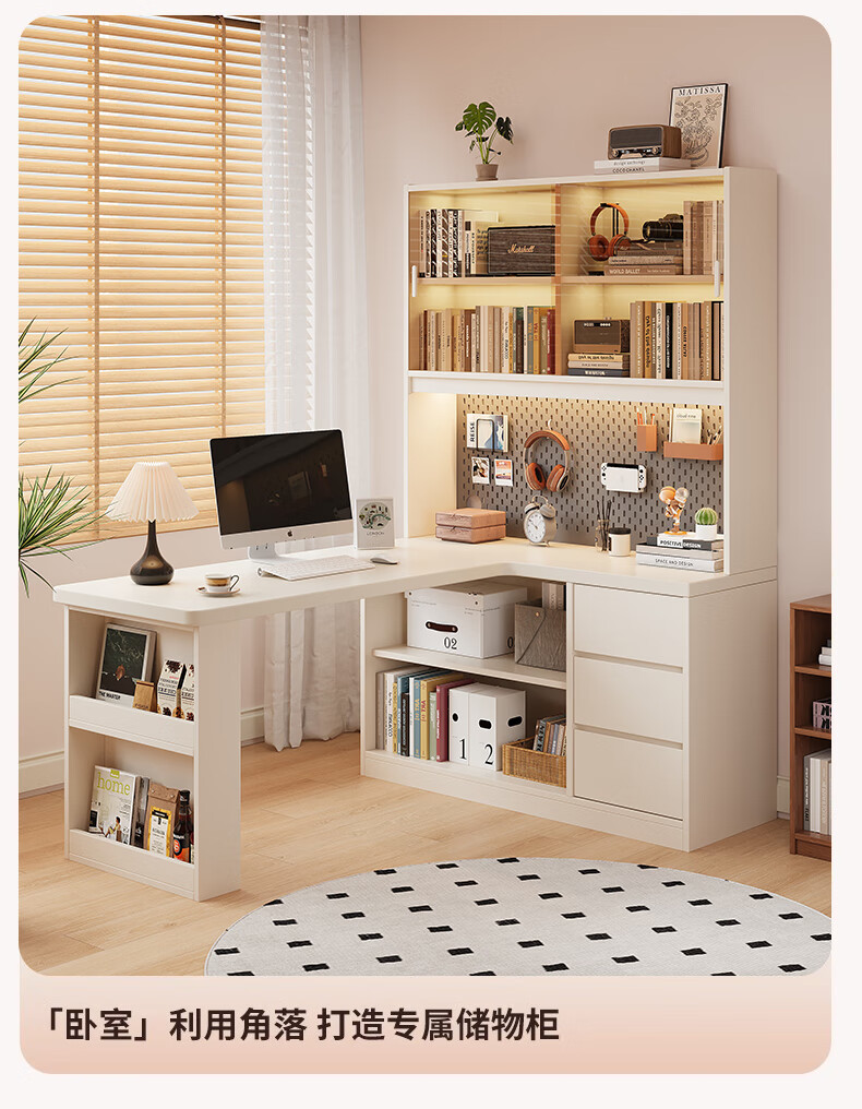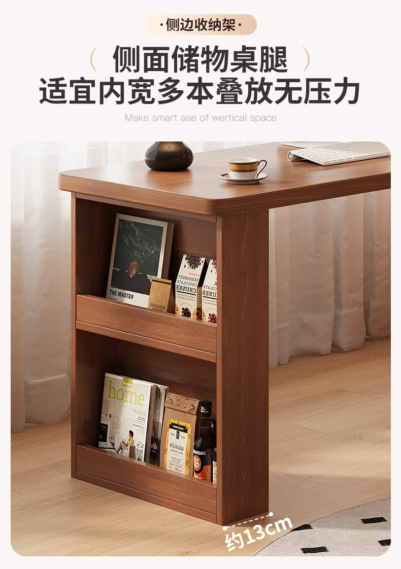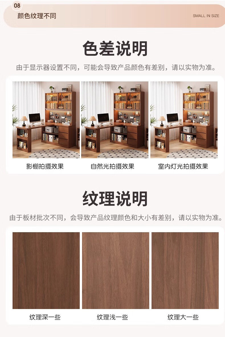 Yimuju solid wood corner desk bookcase bookshelf integrated study desk computer desk writing desk desk desk walnut color 160*100*195cm right bookshelf