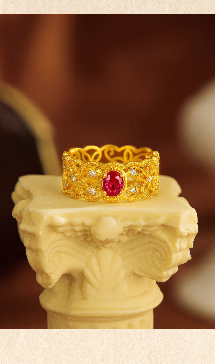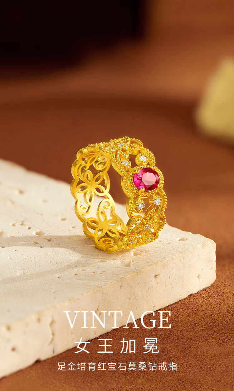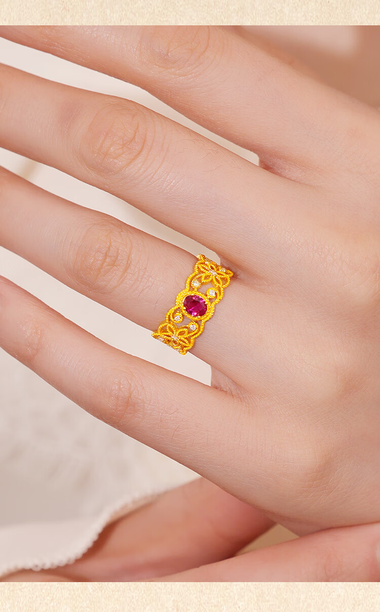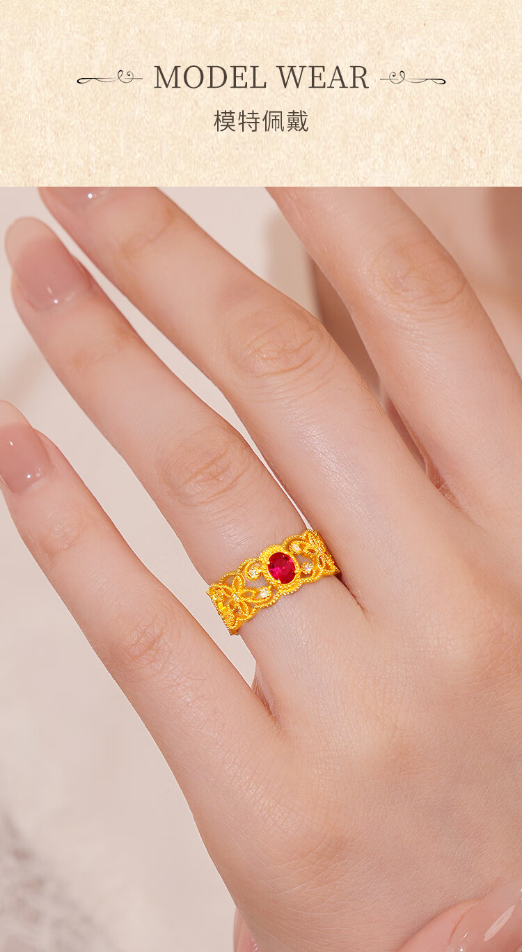 Chiba Jewelry Gold Pure Gold Cultured Ruby and Moissanite Ring Elegant Retro Hand Jewelry Girl Birthday Gift for Girlfriend Pure Gold Ring/Support More Refund or Less Replenishment 4.31g No. 12
