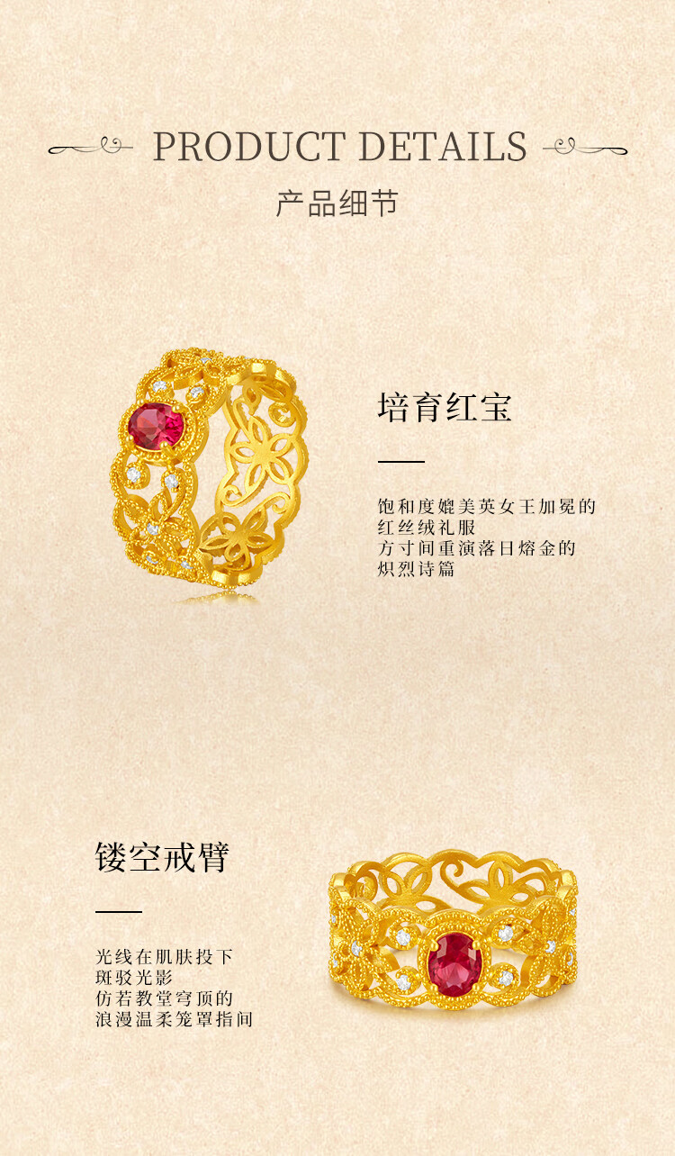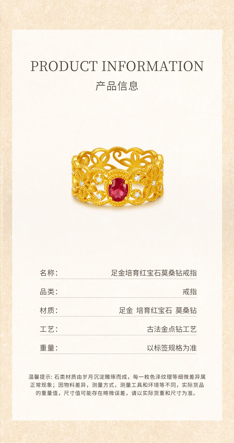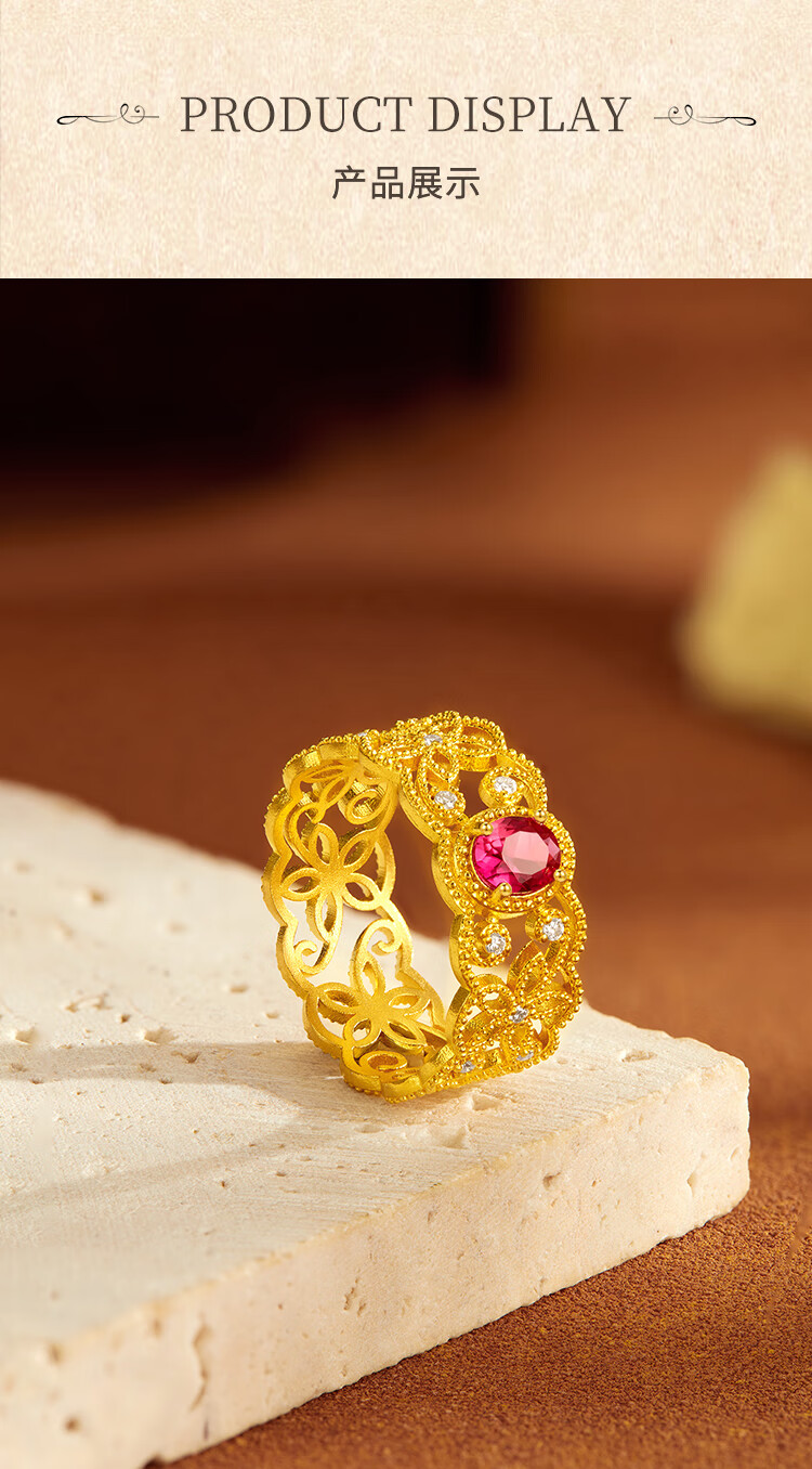 Chiba Jewelry Gold Pure Gold Cultured Ruby and Moissanite Ring Elegant Retro Hand Jewelry Girl Birthday Gift for Girlfriend Pure Gold Ring/Support More Refund or Less Replenishment 4.31g No. 12