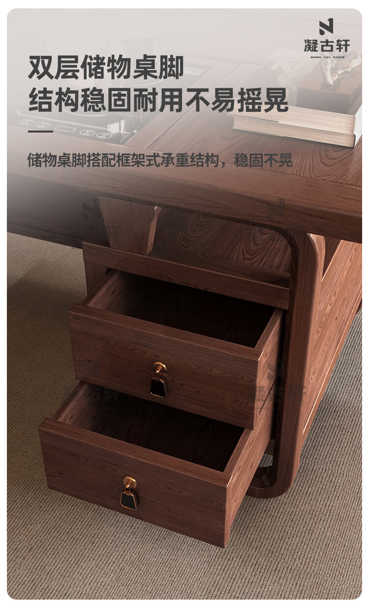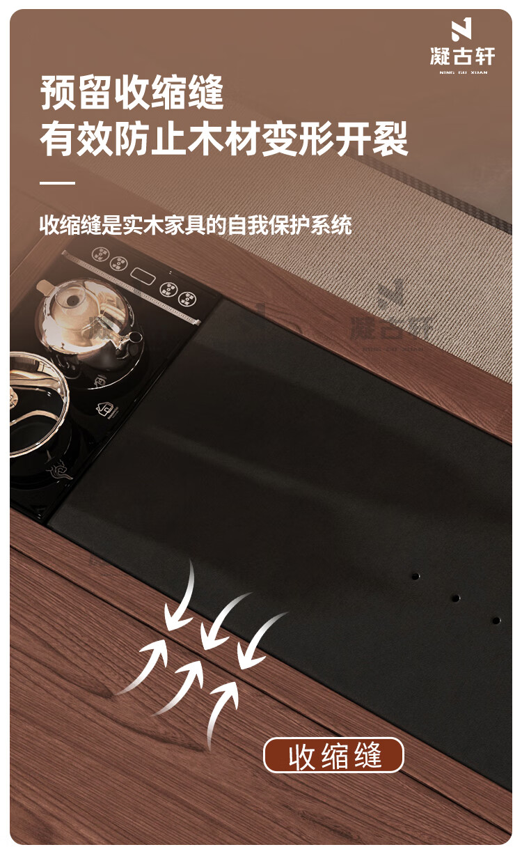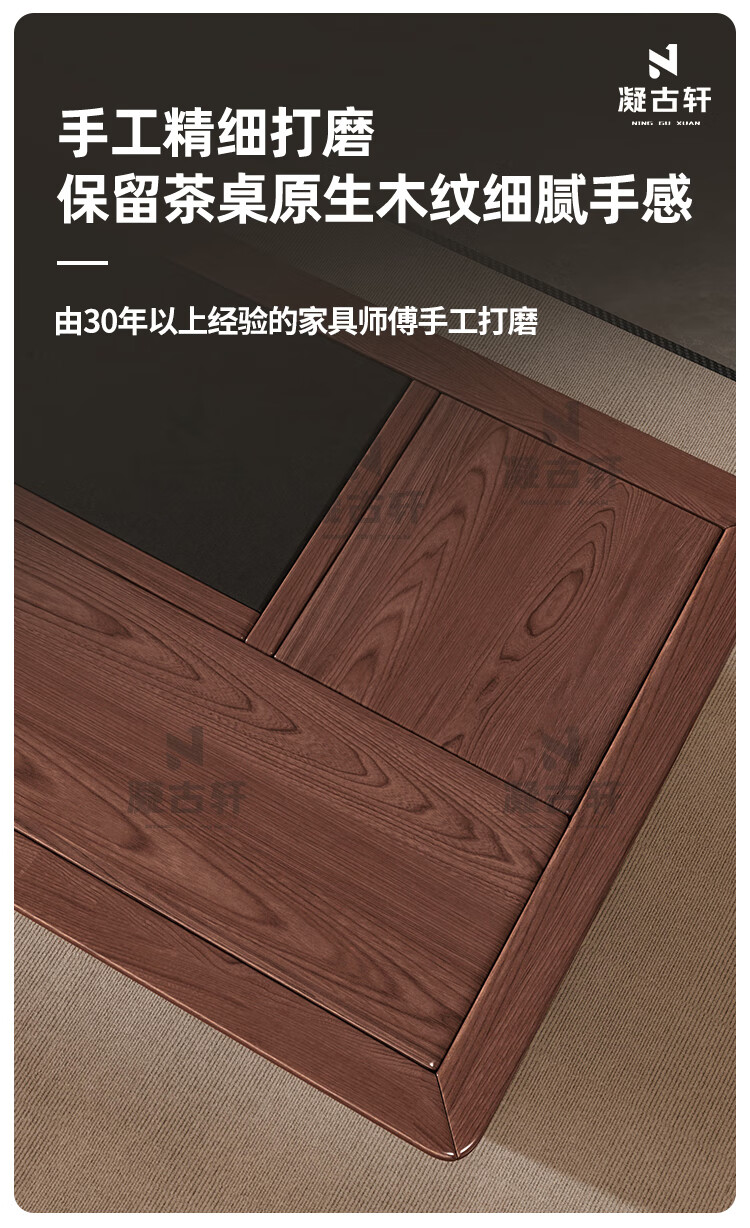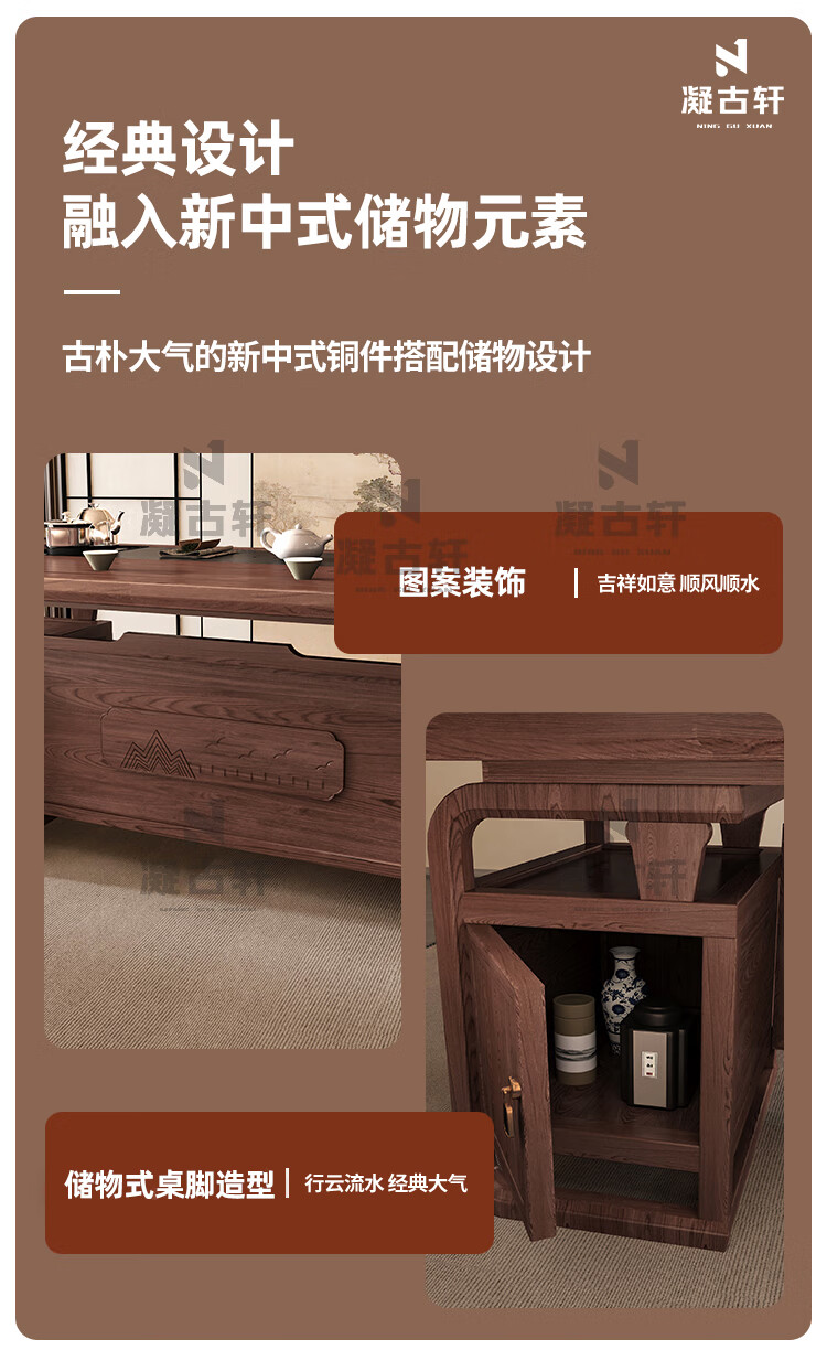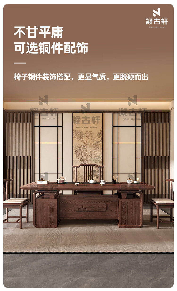 Ningguxuan ebony wood tea table and chair combination solid wood tea table large board living room with kettle integrated coffee table office complete set wet bubble table + 1 official hat chair + 4 arm chairs + stone tea tray 1.8m empty valley orchid carved dark pattern atmospheric storage feet