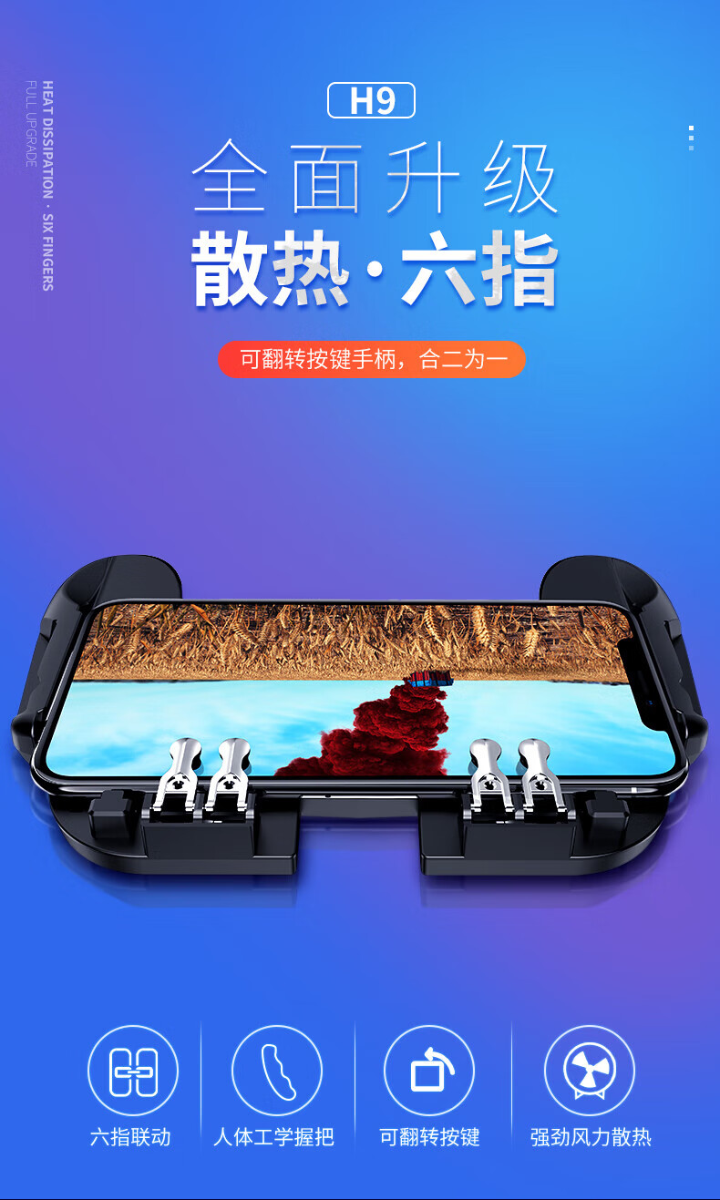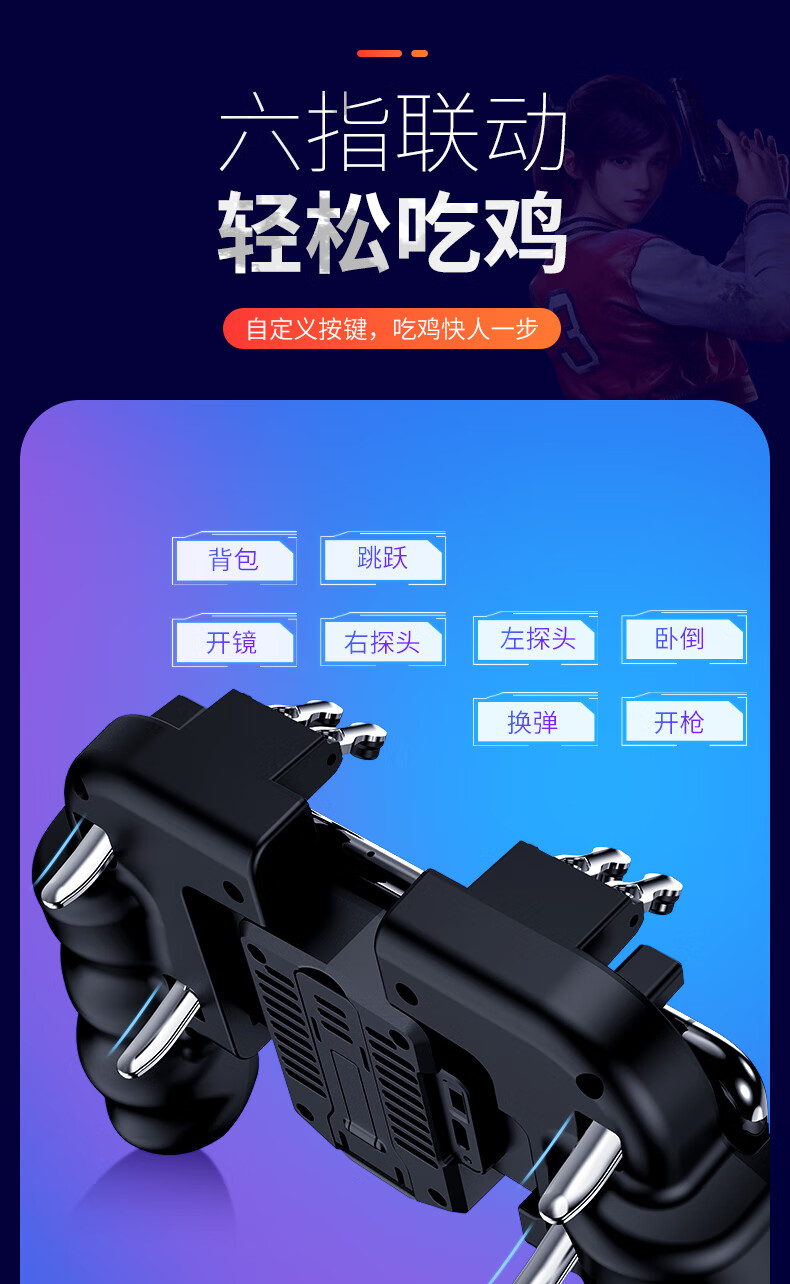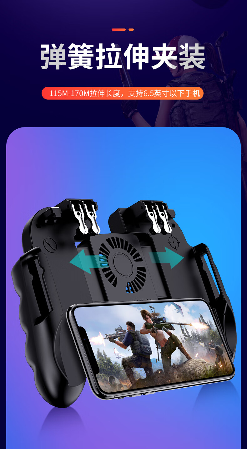 Wei Ci chicken-eating artifact game controller fan cooling integrated Peace Elite Delta mobile game peripheral auxiliary pressure gun mobile phone dedicated physical plug-in connector six-finger button six-finger handle cooling type fan plug-in model