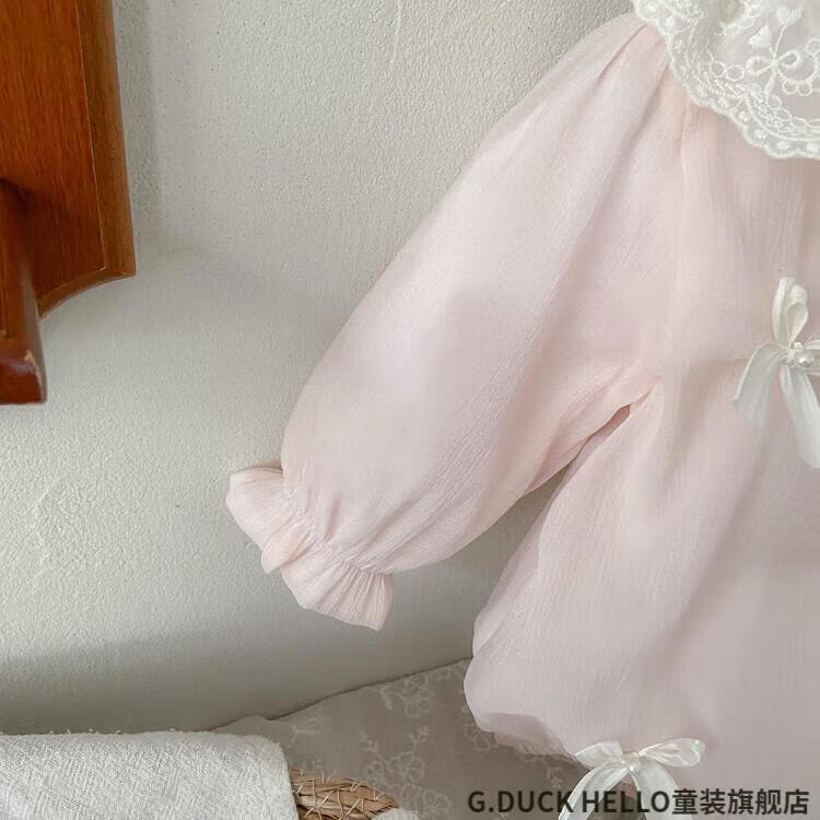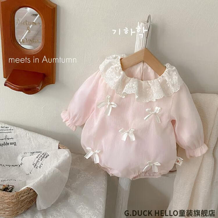 G.duck little yellow duck bag baby clothes spring and autumn 0-6 months newborn jumpsuit female baby one-year-old dress pink 73cm 73 size 3-7 months recommended for babies 6-8 kg